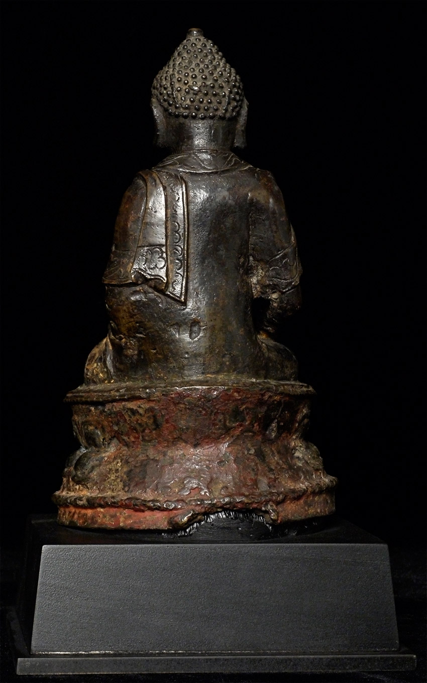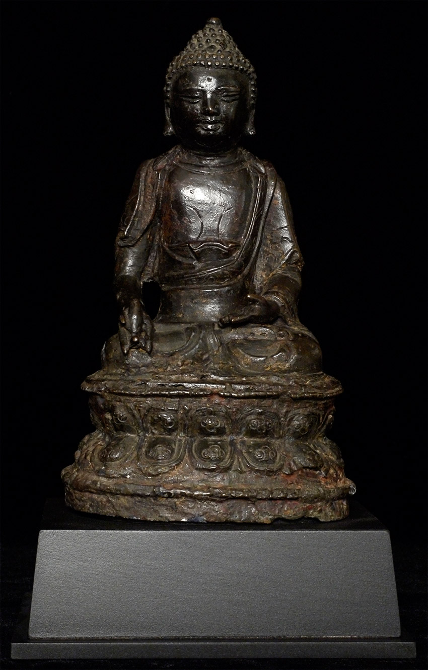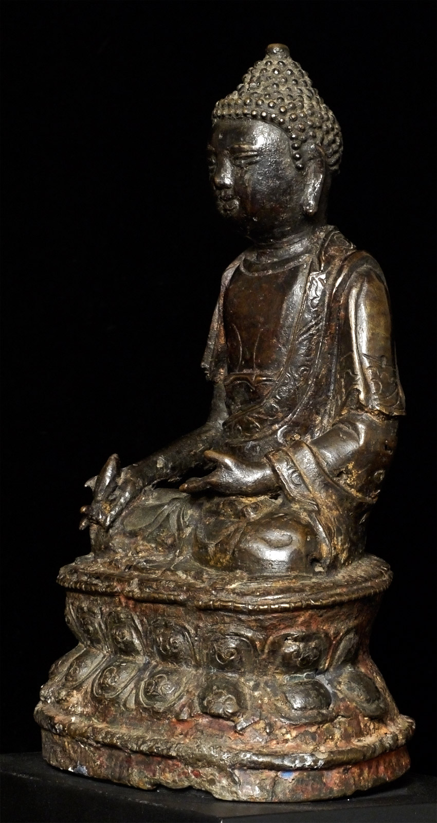 Good Chinese Ming Bronze Buddha. Nice example of its type, with a particularly nice face. Stands 8 inches tall, 9.5 inches on custom stand