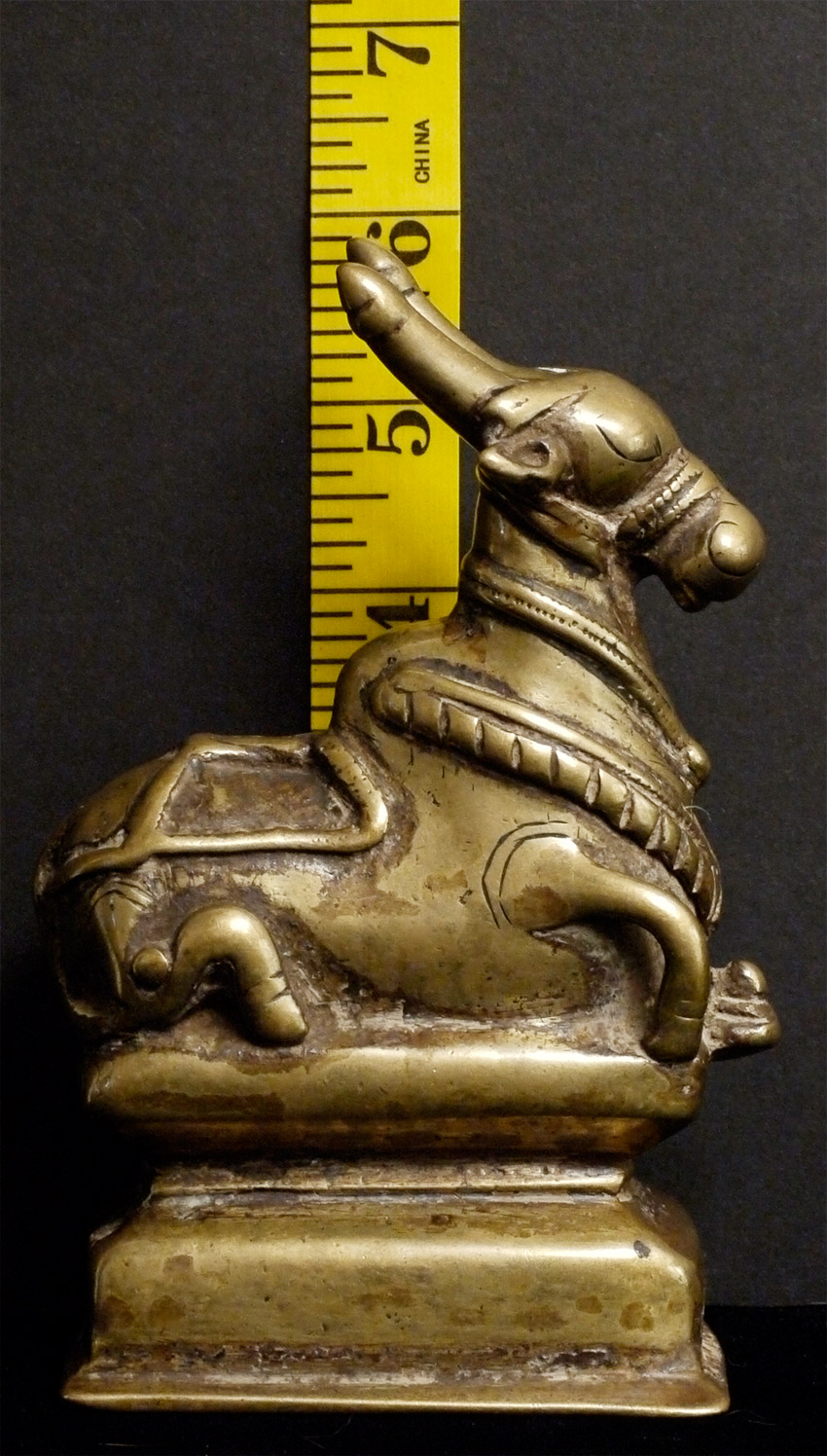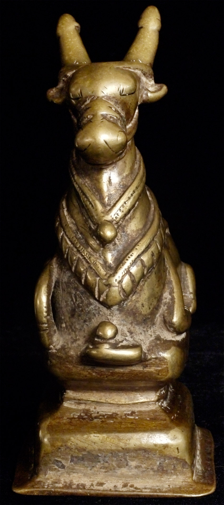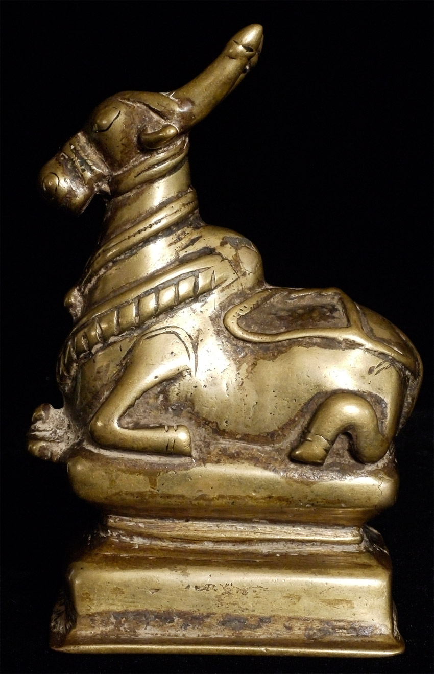 Delightful, first rate antique bronze Nandi Bull from India. He has as much "personality and an "animated" quality as any I've ever seen- anywhere. Measures 6 inches tall, 4 inches long. Looks to have very good age.