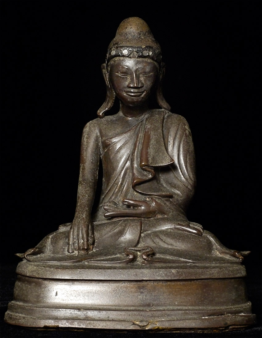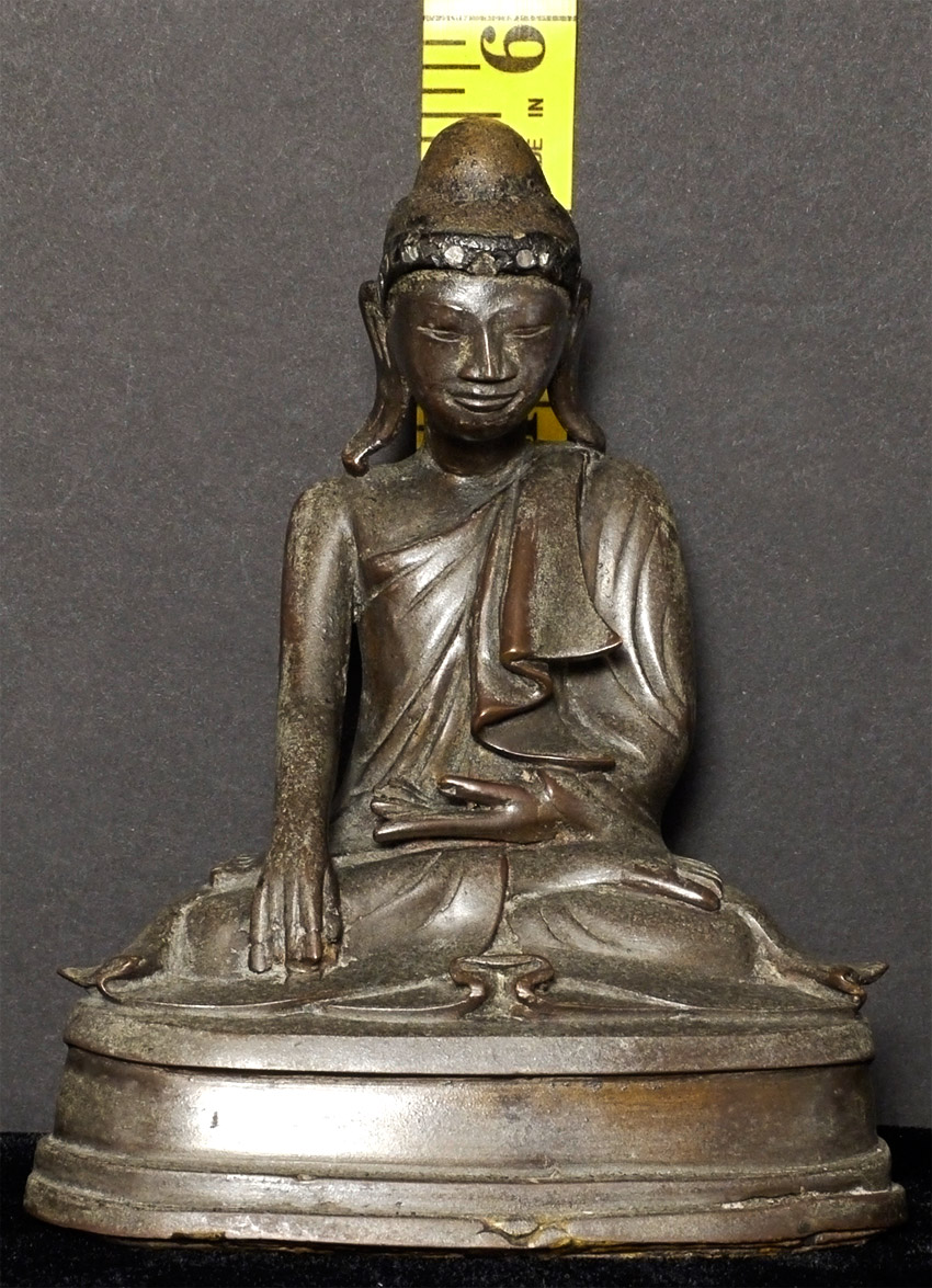 19thC Mandalay style Burmese Buddha. Nice example of its type. From the first half of the 19th. Sits 5.5 inches tall. Domestic shipping is included on this item, and international shipping is $50, including packing and insurance.
