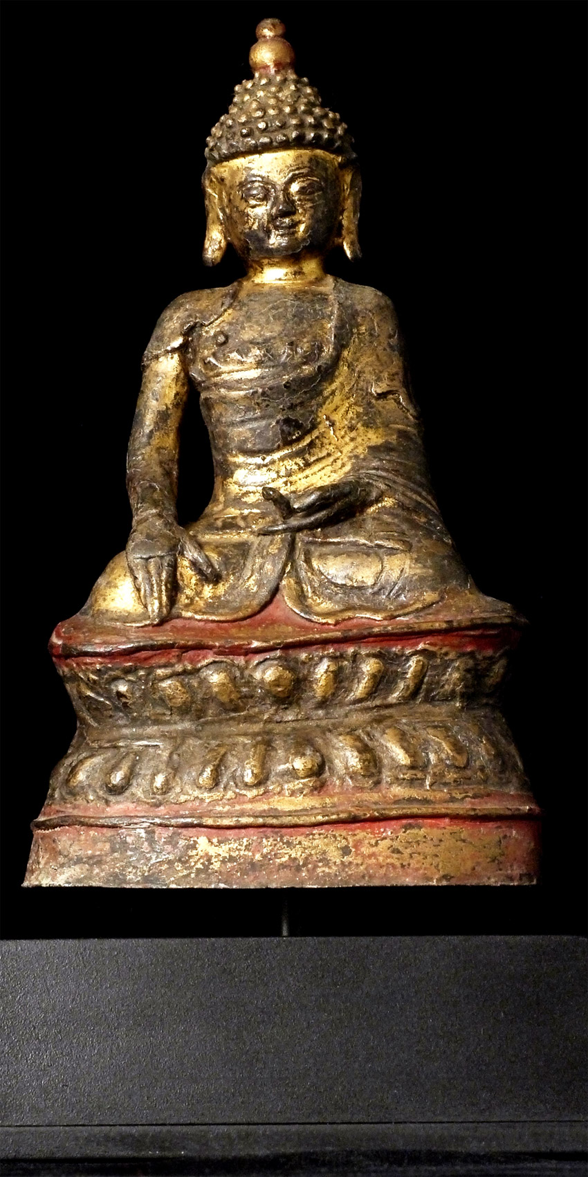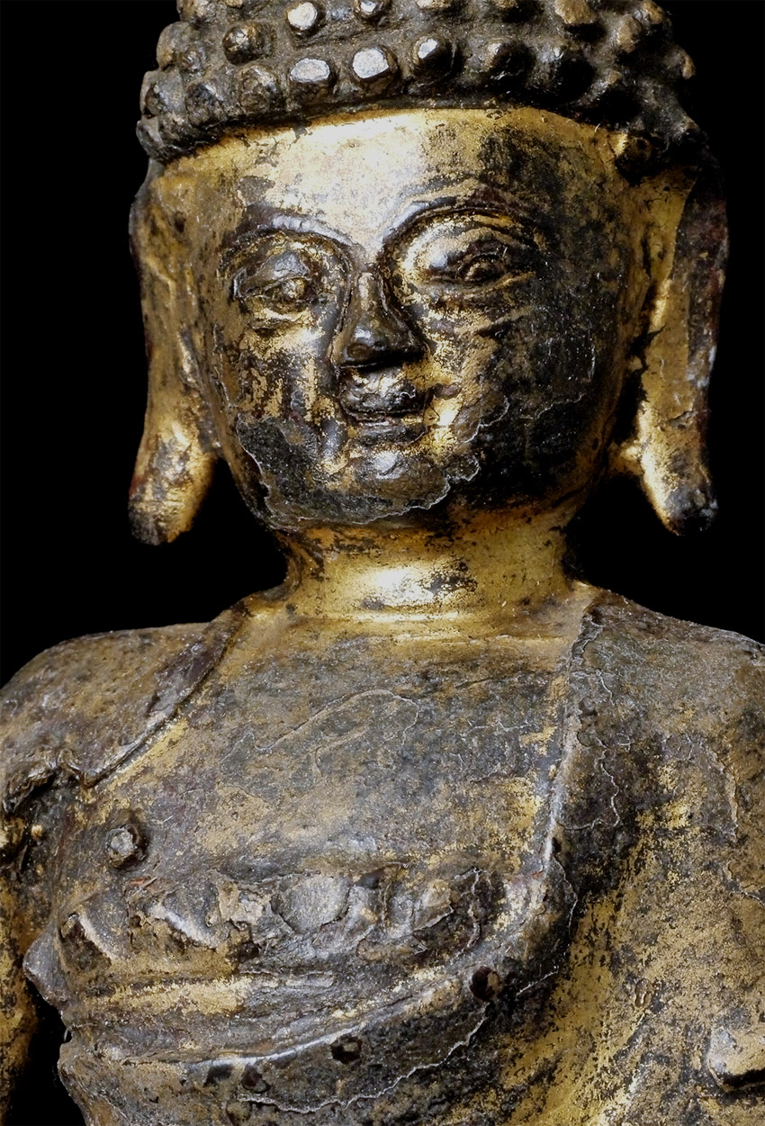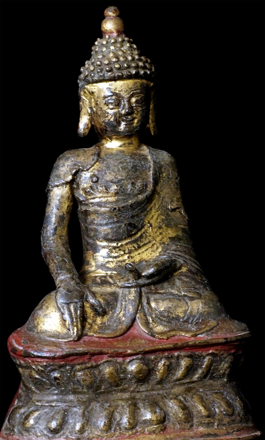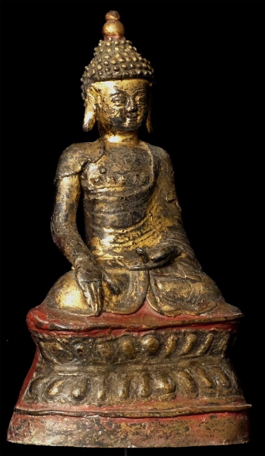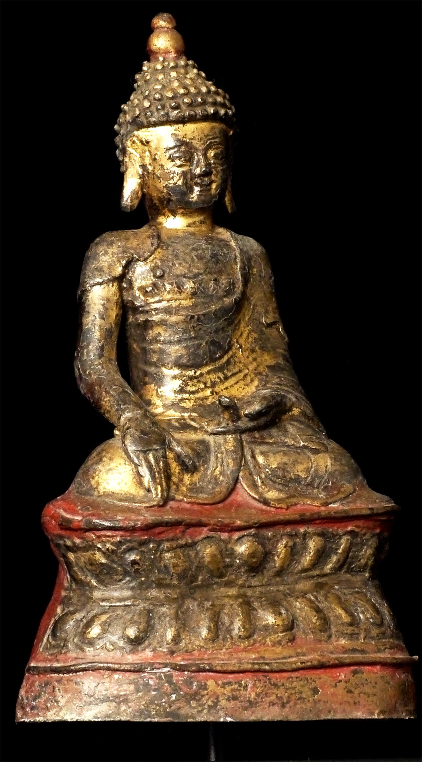 Ming Dynasty Chinese Buddha looks to be from Southern China with a strong influence from Southeast Asia. Dimensions: 7 1/2", 9 1/2 including custom base.