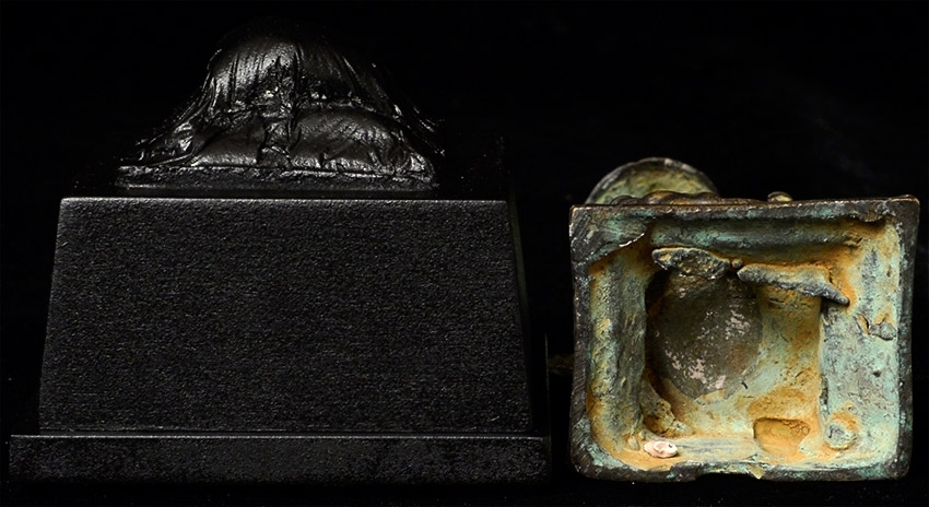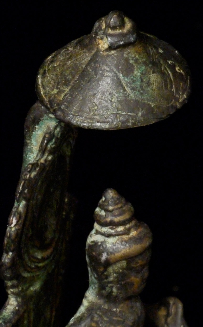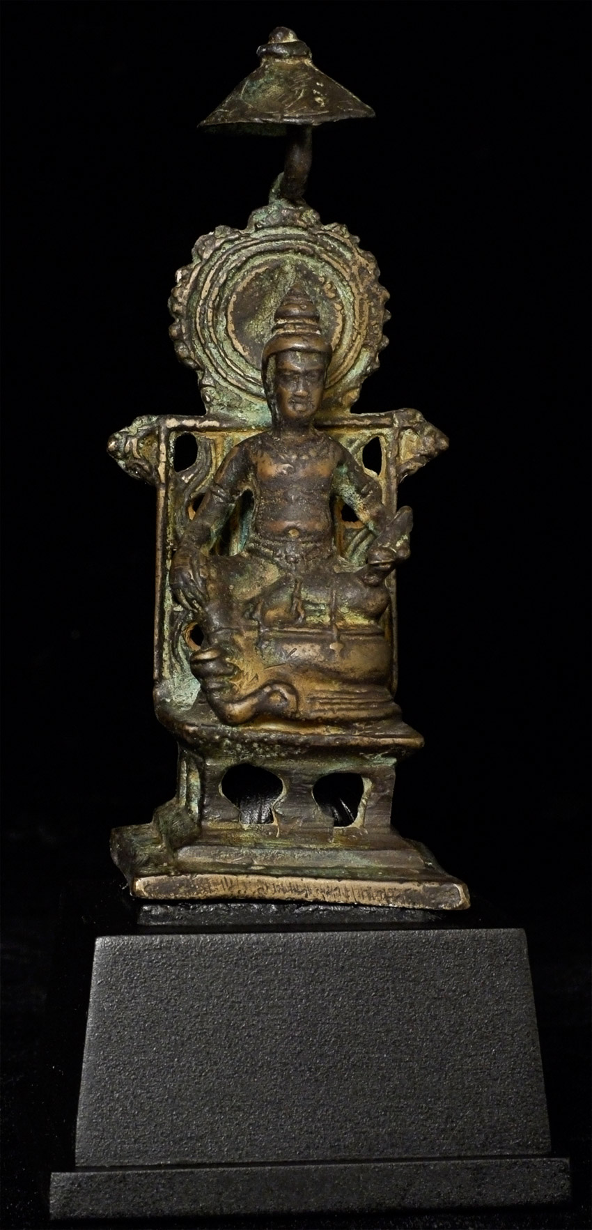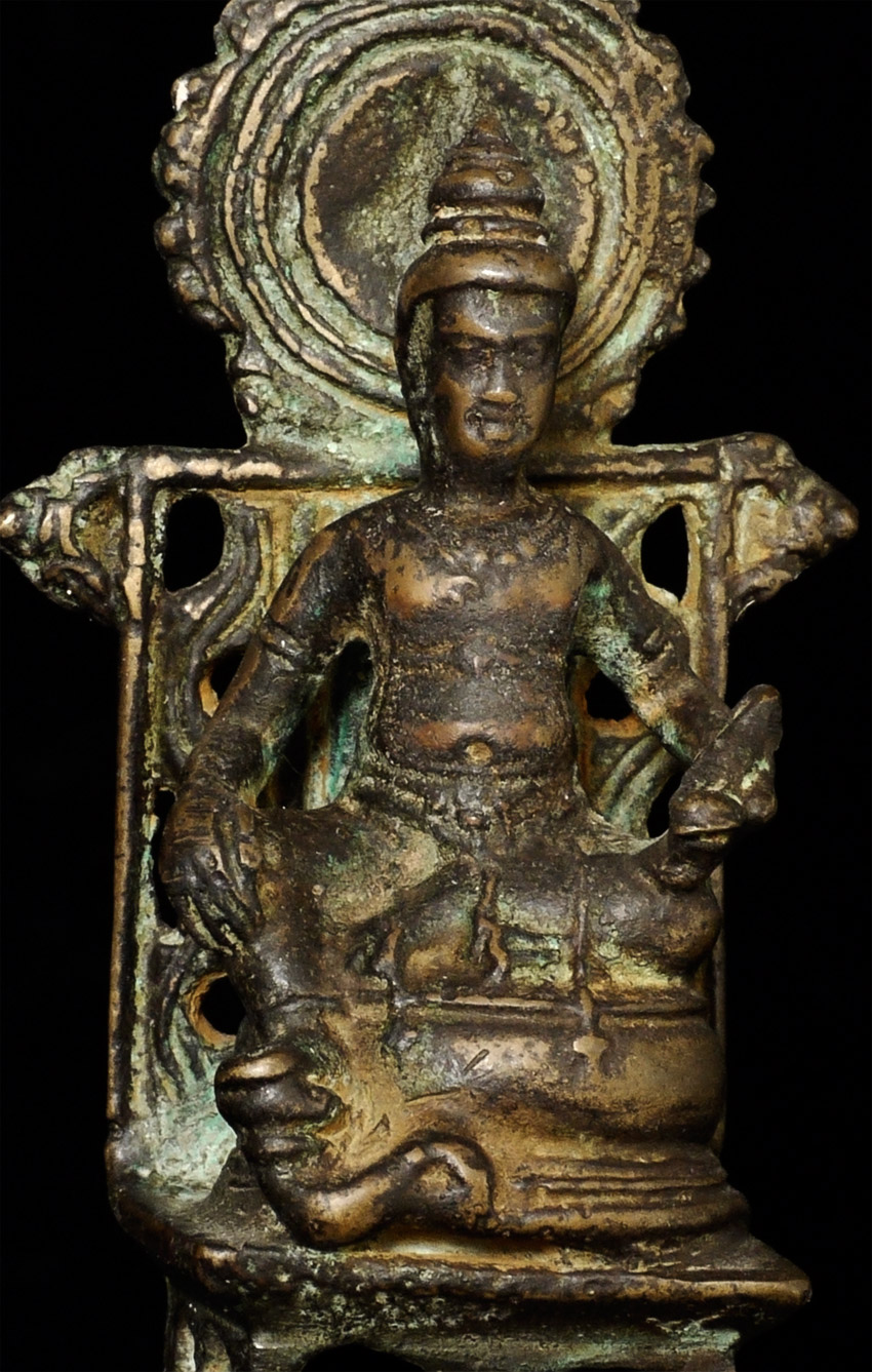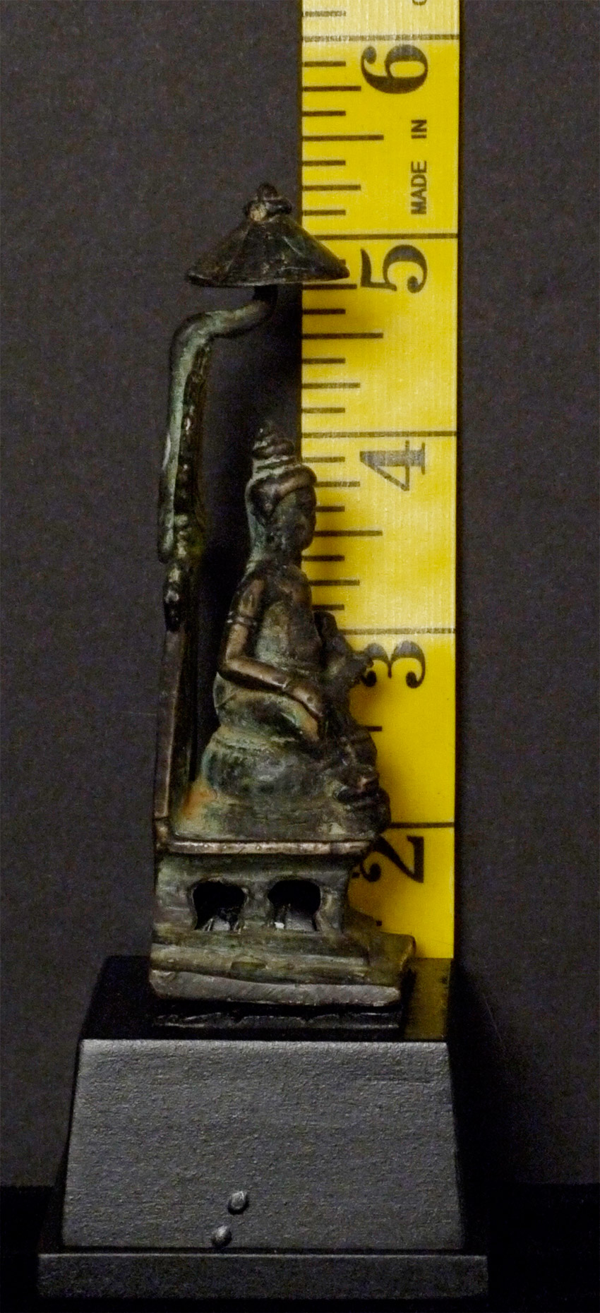 Antique Indonesian Bodhisattva of wealth and good fortune. It is in a very early style and appears to be of good age. Possibly period (500+ years old). It sits 4" tall, 1.5" x 1.25" deep, and wide. Domestic shipping is included on this item, and international shipping is $50, including packing and insurance.