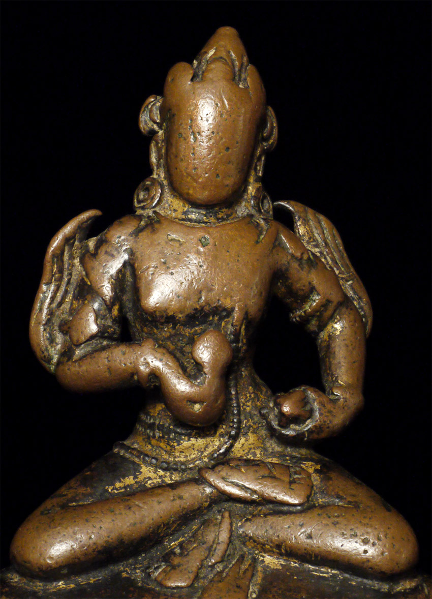 Very special early Himalayan Bodhisattva. Extensive ritual wear makes it even more powerful and alive. Size is 3.75 inches tall, 3 1/8 inches wide, 1 5/8 inches deep. 5.25 inches tall on custom base. Probably in the range of 1000 years old. Likely from Nepal, possibly Tibet. Traces of original gilding. Custom base makes it sit more upright. Rare and profound piece with great presence. Another from my original personal collection (and have owned for 25 years). I am offering for a limited time. I am posting many of my most cherished and valuable pieces as I near retirement. They are not inexpensive, but they are each special, very uncommon, authentic pieces, the equivalent of which you are unlikely to find again.