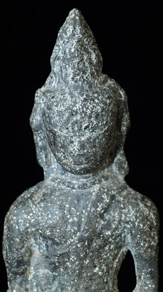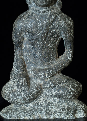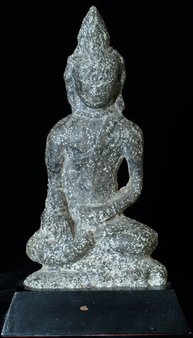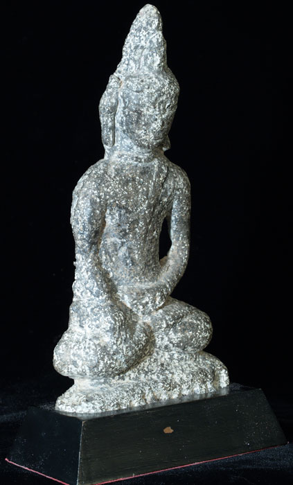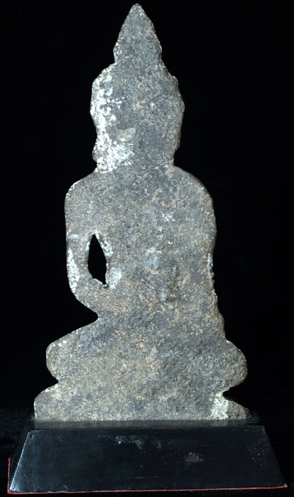 Highly uncommon Post-Pagan, or Mon 14thC bronze or lead/bronze Buddha. Sits 7 inches tall not including the base, and(although somewhat flat) amazingly heavy. Worn by time, but still powerful and beautiful. I’ve only ever seen two pieces like this, and I bought them both.