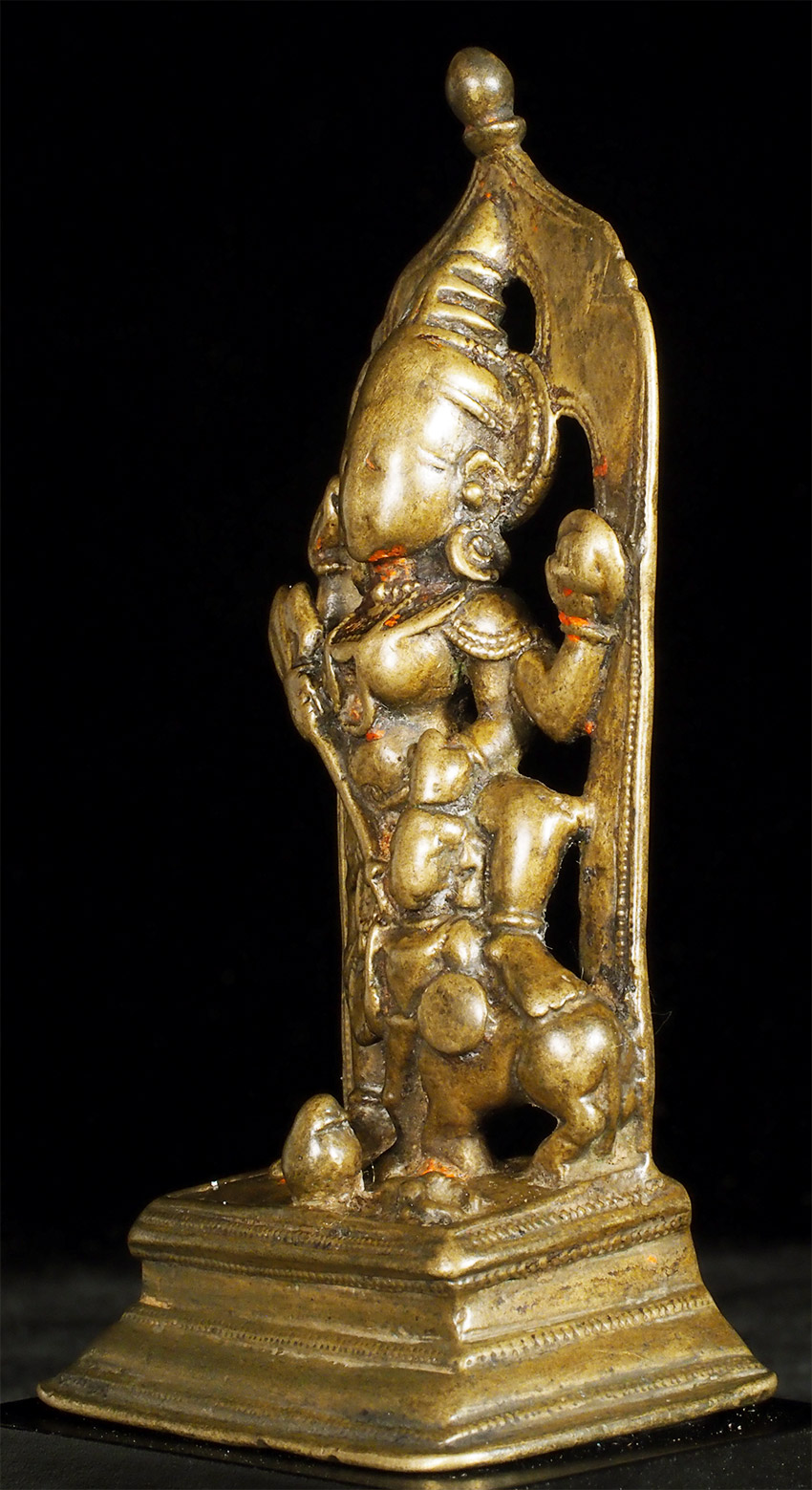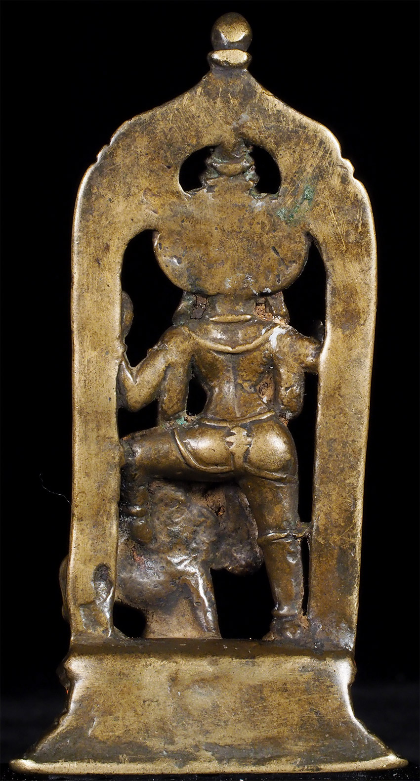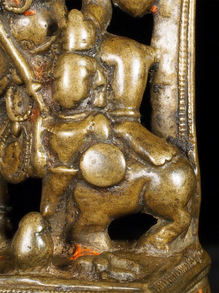 10thC /Durga slaying the Buffalo Demon. Rare survivor. Big head- heavy wear to face, but sensitive modeling and expressiveness shine through brightly. 5 inches tall, 6.5 on the custom base.