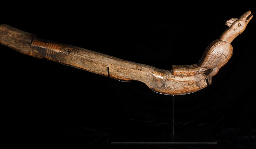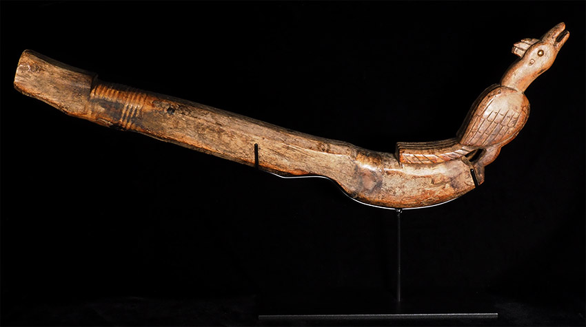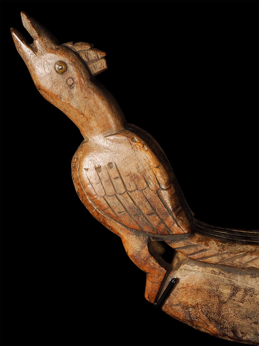 Antique Thai or Burmese Oxcart handle carved as Bird. On high-quality custom stand. 25 years ago these were readily available in the marketplace. Today the few that are for sale are either low quality and worn, cut off of the handle, and quite expensive. I've owned this one and the other listed since the 1990's and just found them, and just had the stands made (stands were over $200 each!). These were exceptional examples even 25 years ago.