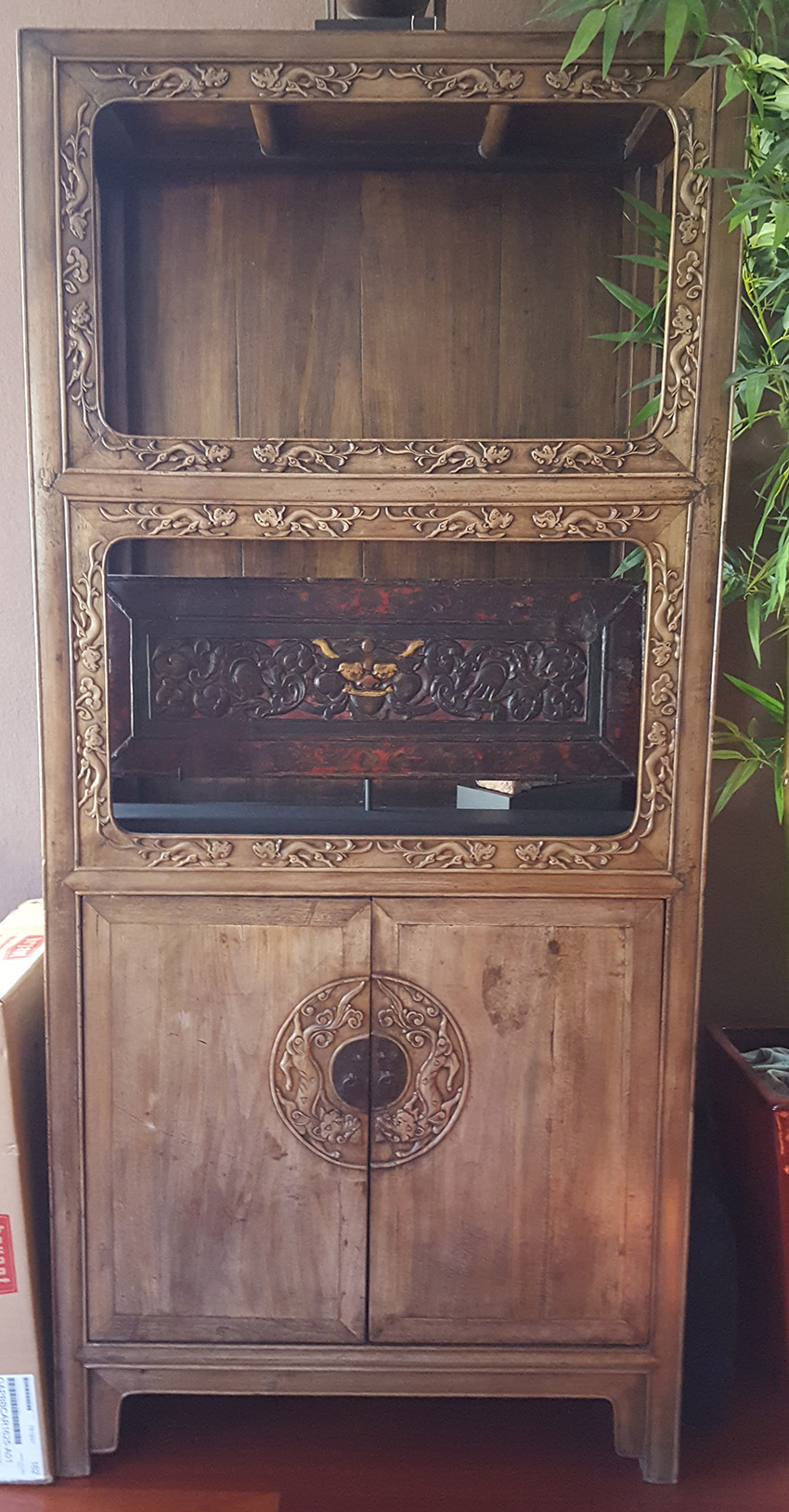 Antique Chinese Display Cabinet made of Walnut. Very good age. Sold to me as 17/18thC though I am unsure how to date. Can take more photos of someone interested. Will be expensive to ship