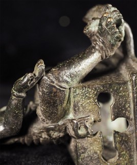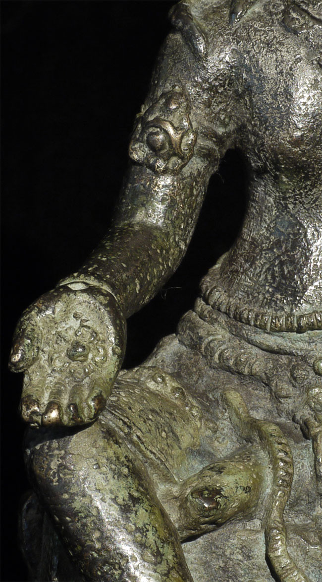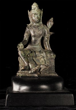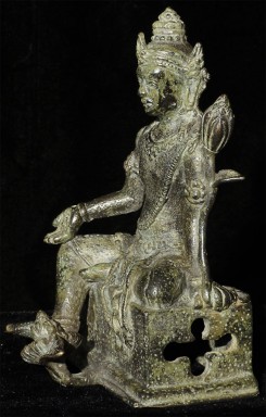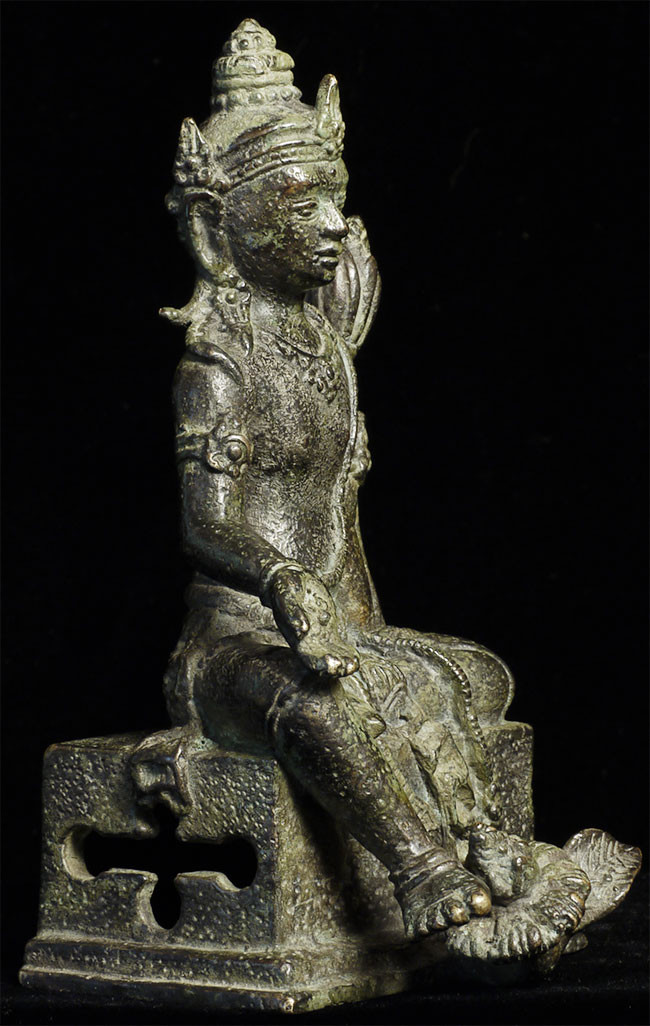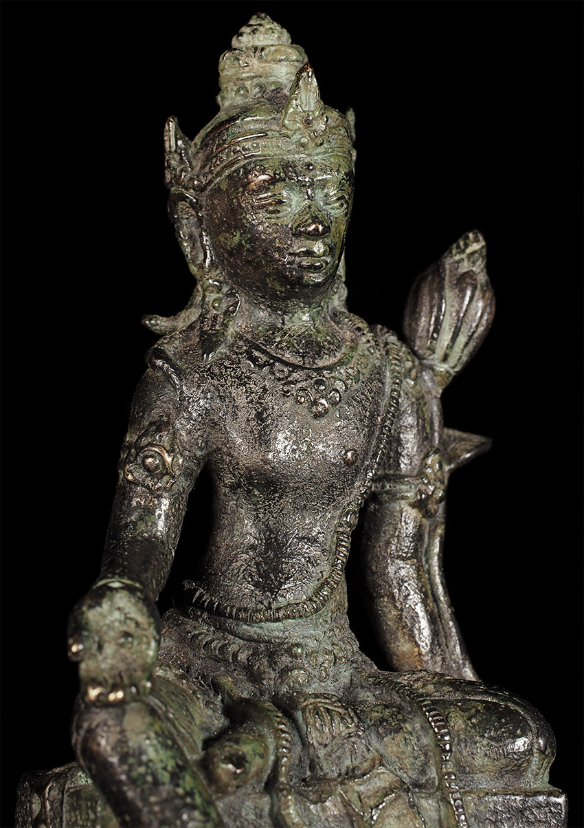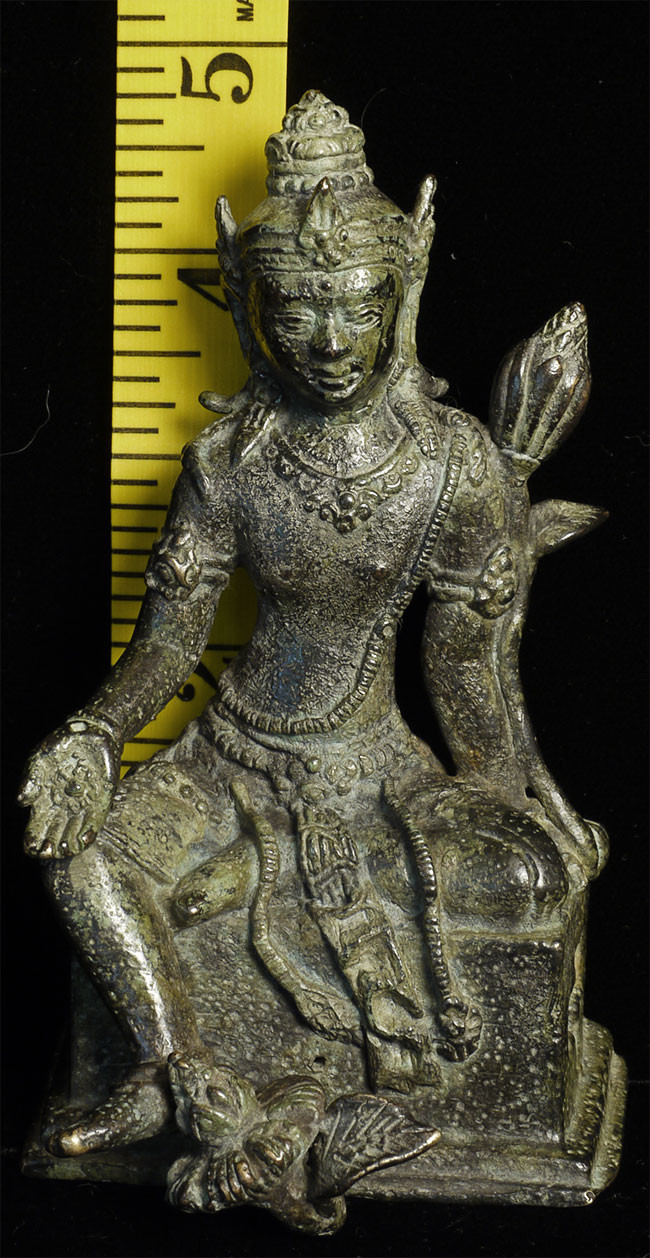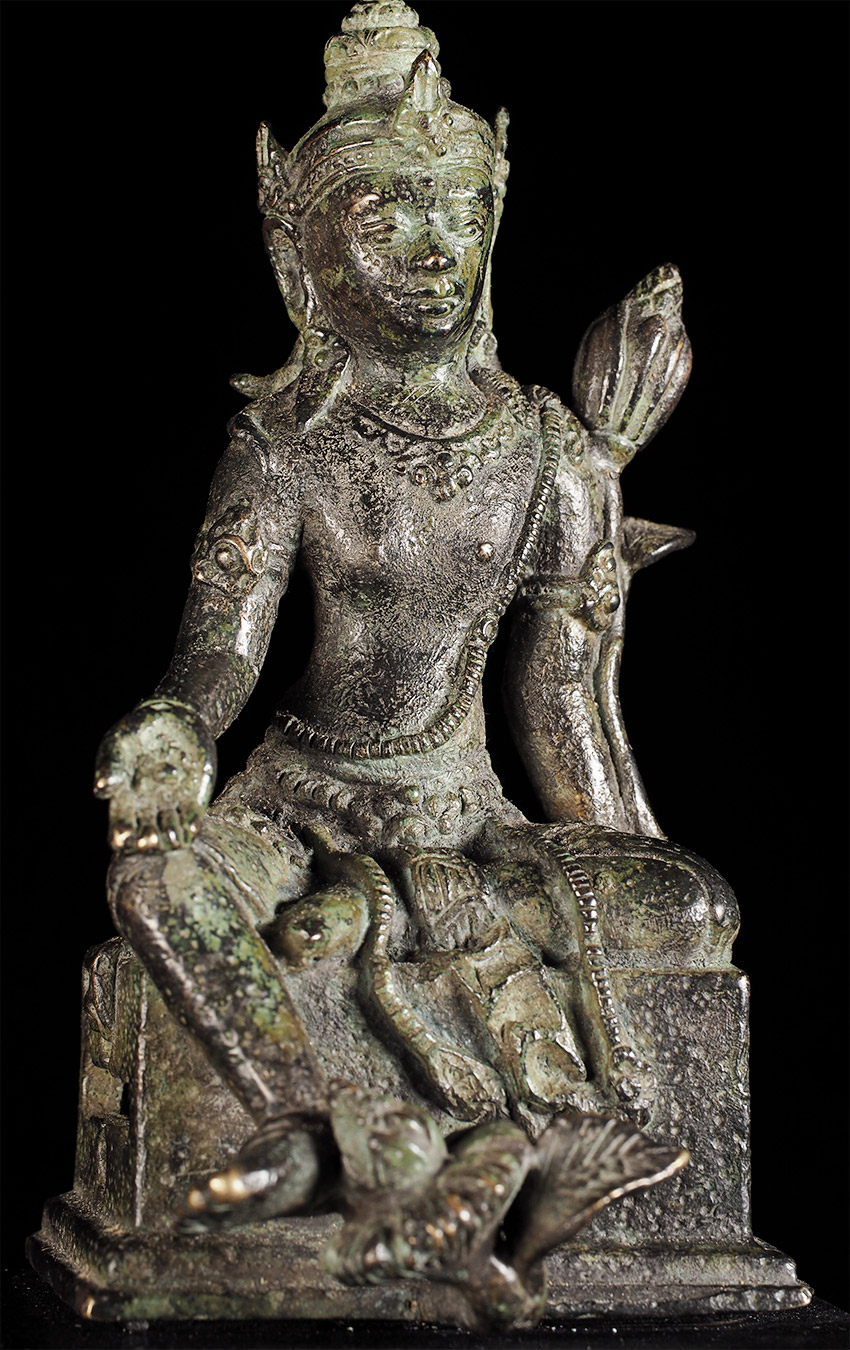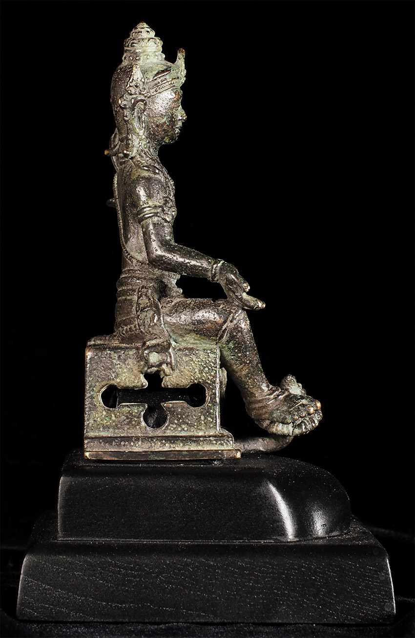 An early Indonesian period piece (Padmapani?)of exceptional condition and quality. This piece measures 4 7/8" tall and 6.75" with its custom base. Very fine details- note the special way this piece was executed- it is perhaps the best Indonesian piece I have offered.