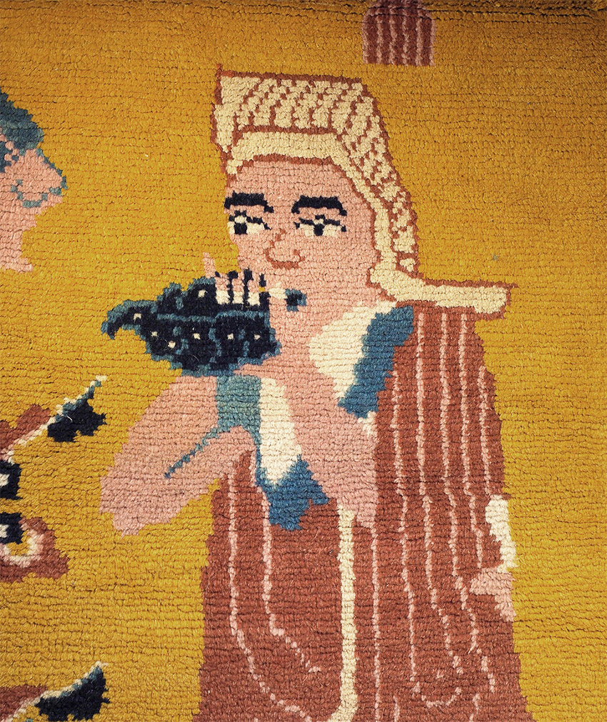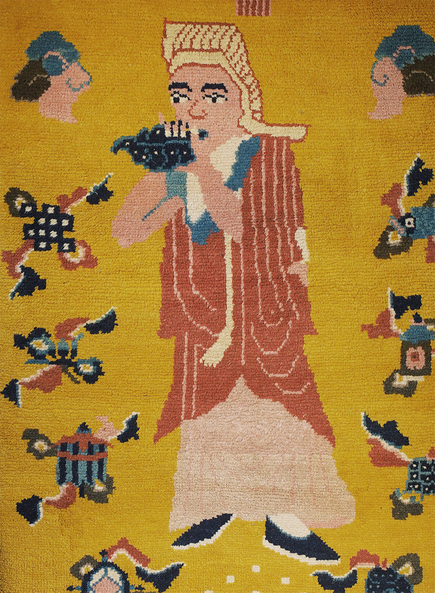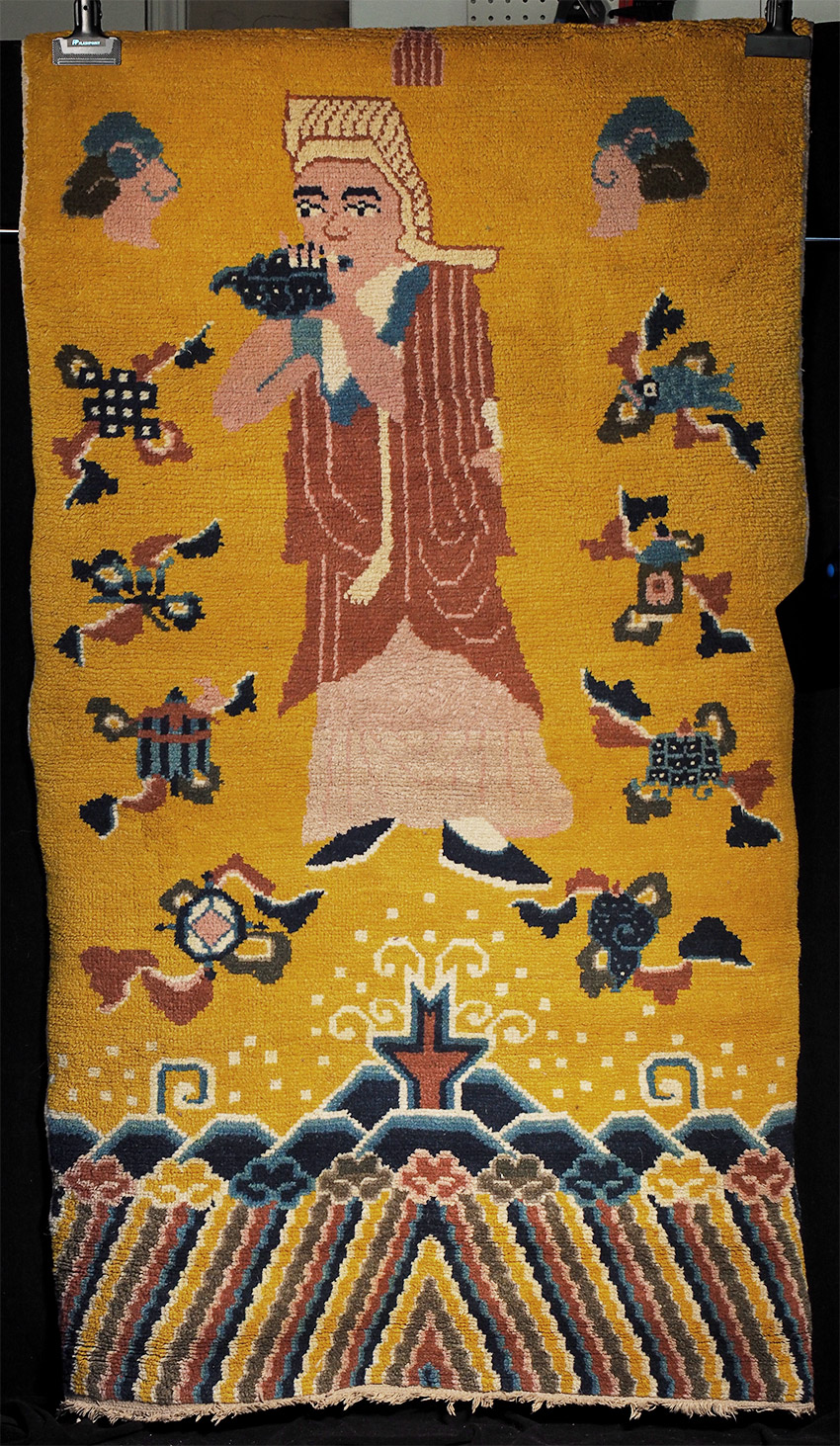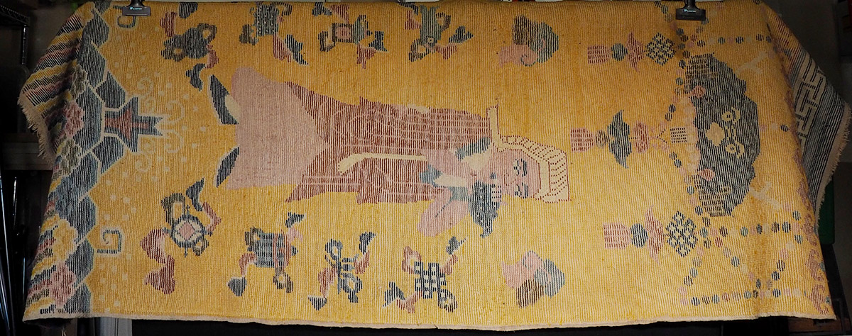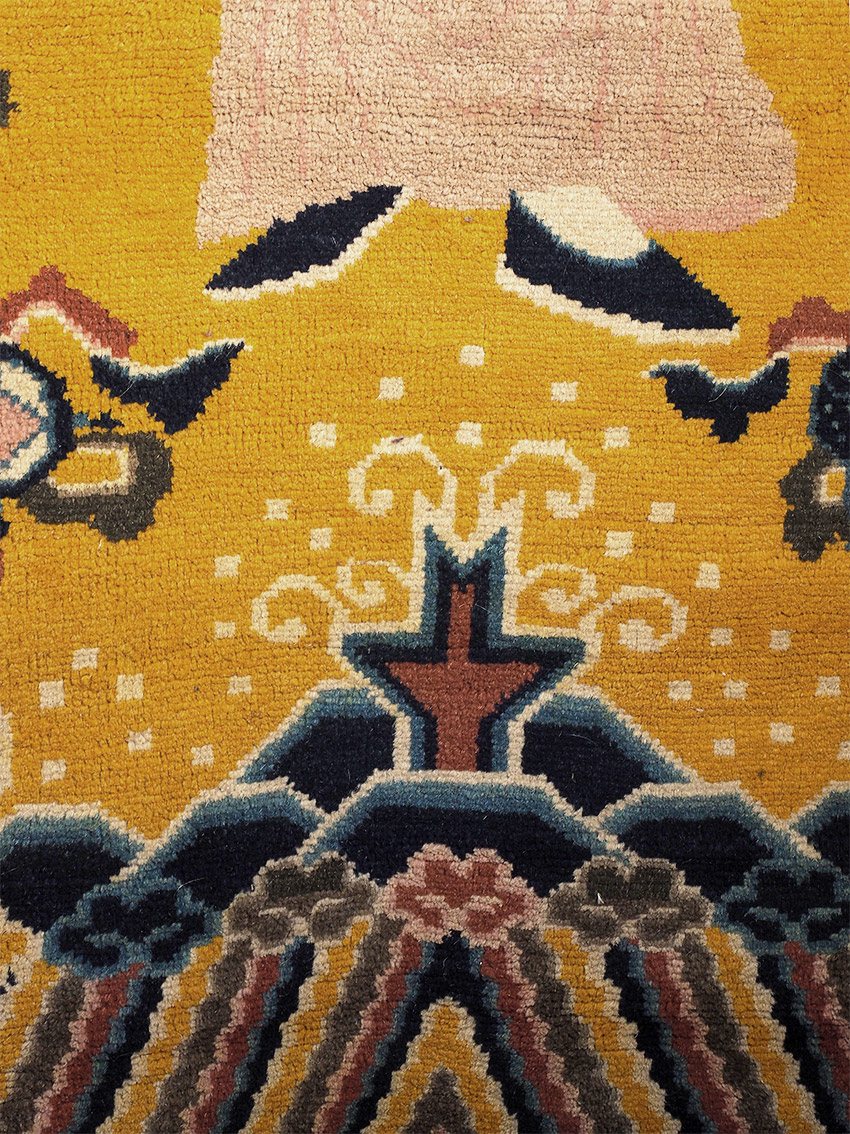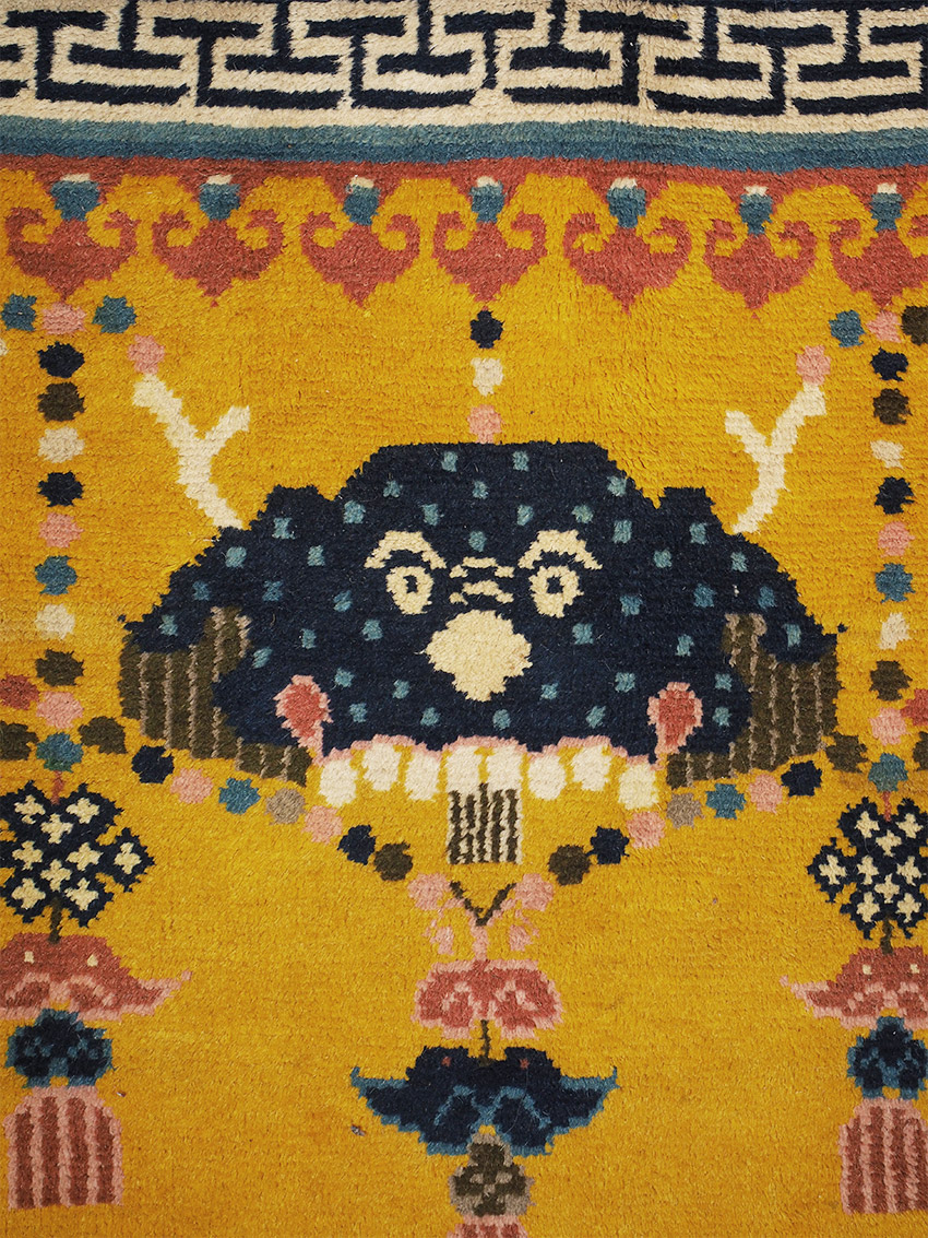 This vintage/antique Tibetan pillar rug measures 87" x 37". Great folk style.