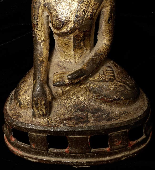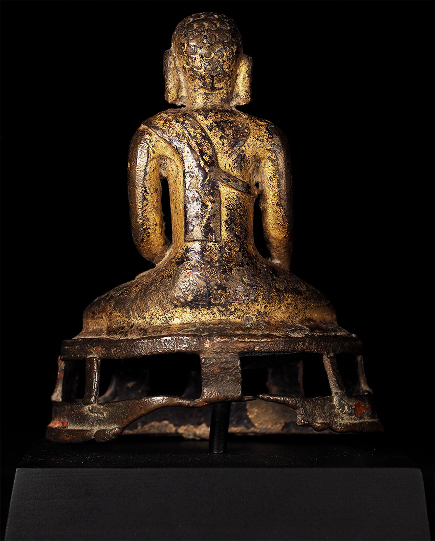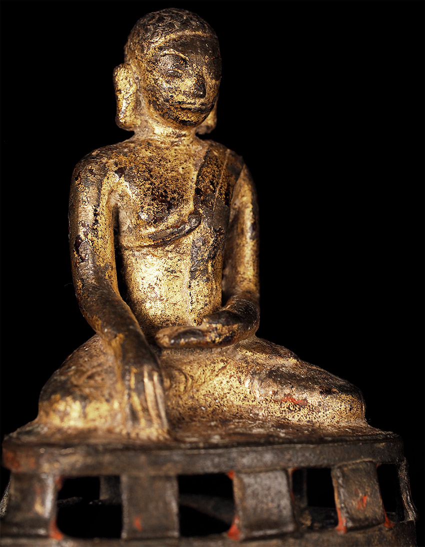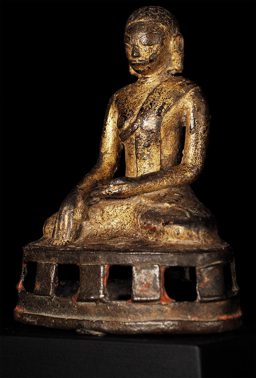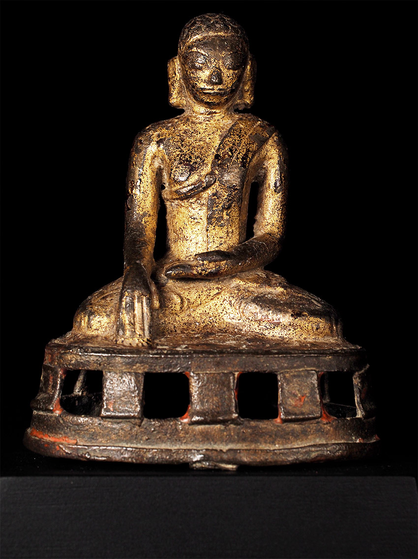Very early bronze Burmese Monk- probably approaching 800 years old, and possibly earlier. Rare. Wonderfully expressive face. This piece measures 4.75" tall, bottom measures 3.5" x 2.5". Sits 5.75" on its new custom base. Extremely rare type that is hard to find even in books or museums, especially in this quality (go look!). I've owned 25 years and yet to find another like it.