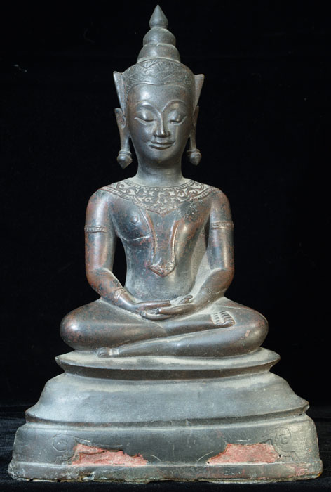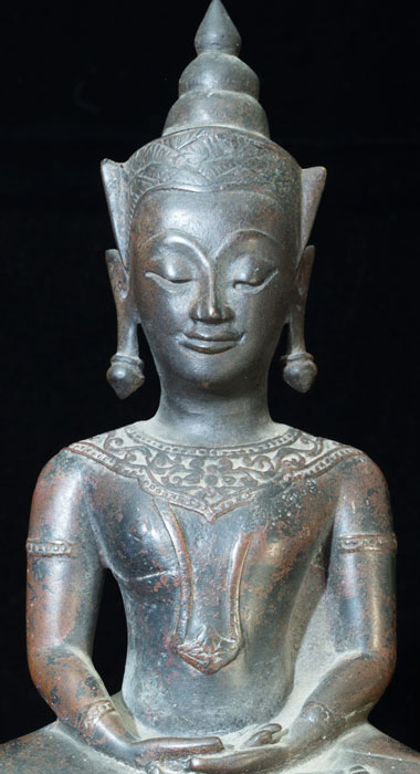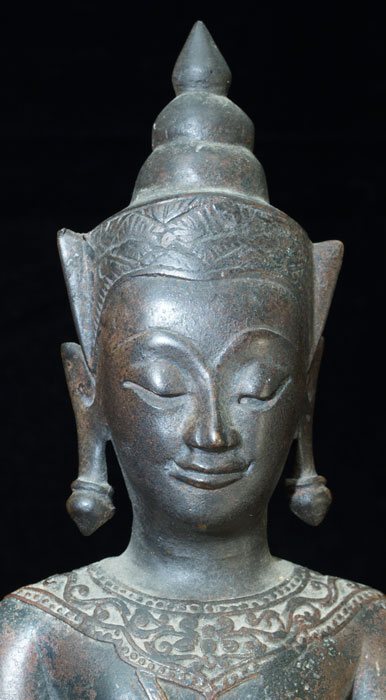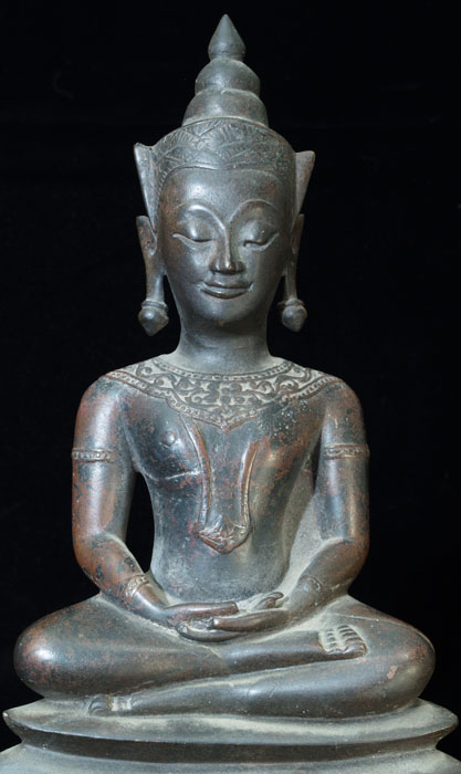 Fine Ayuthaya Royal Bronze Buddha- best of its kind- superb face, untouched patina, excellent size. I've never had a better one of this type in 20 years. Note the fine detail on the ornamentation, and also on the base. This Buddha is 11.25 inches tall. Be careful- there are many copies of this type out there- this is the real thing- authentic, fine examples of this size are extremely rare.