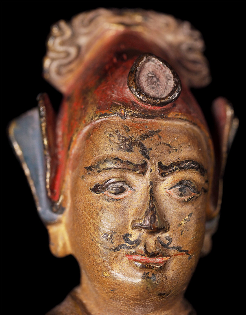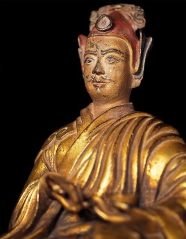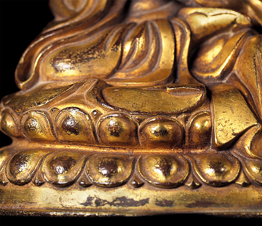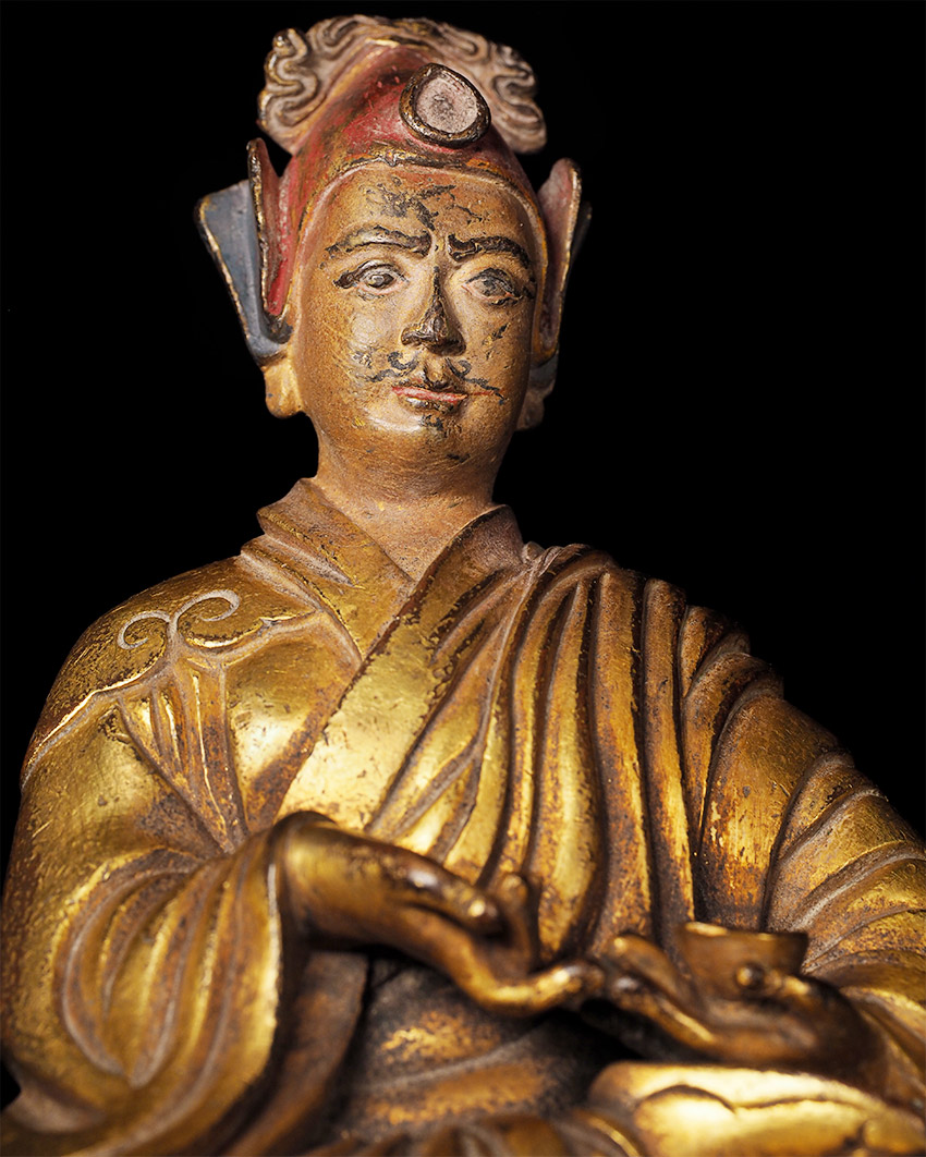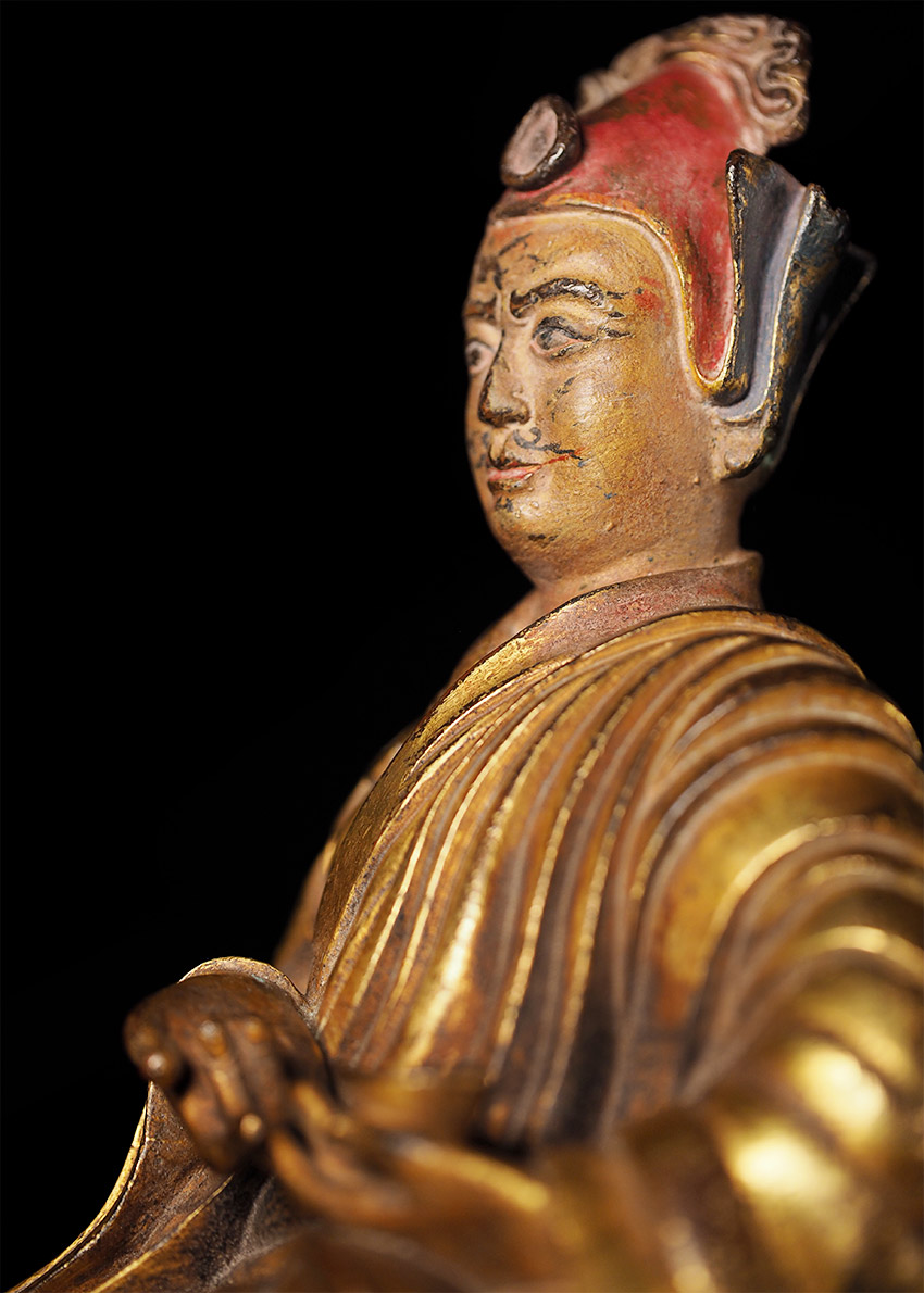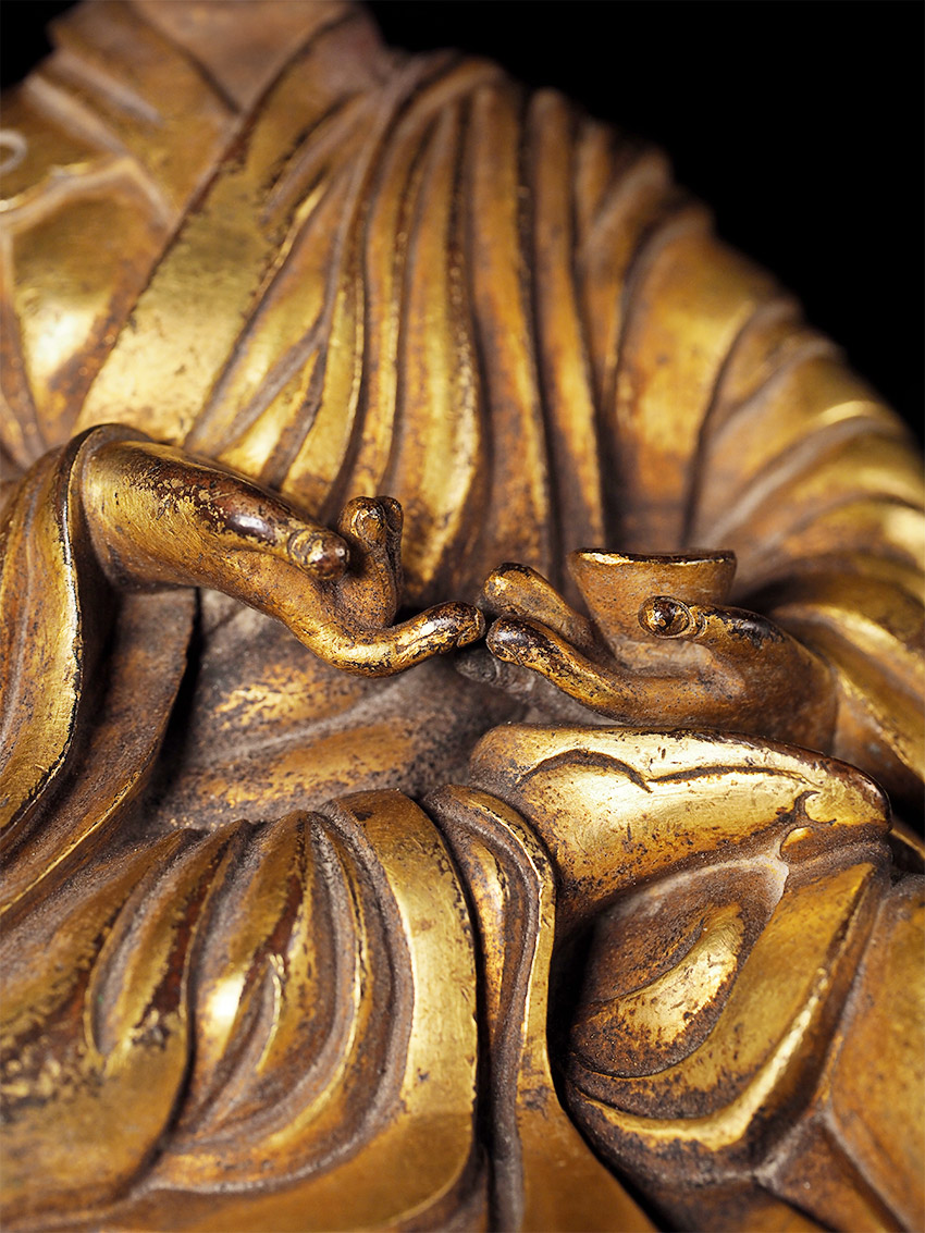Materpiece Tibetan Bronze Portrait Sculpture. Look at the photos to see the incredible finesse in the robes- the sculpting and casting iis amazing. Note the amzing way the lotus base is "soft"-almost like a cushion. Looks to have good age- unsure how to date-likely several hundred years old. Measures 7" tall.