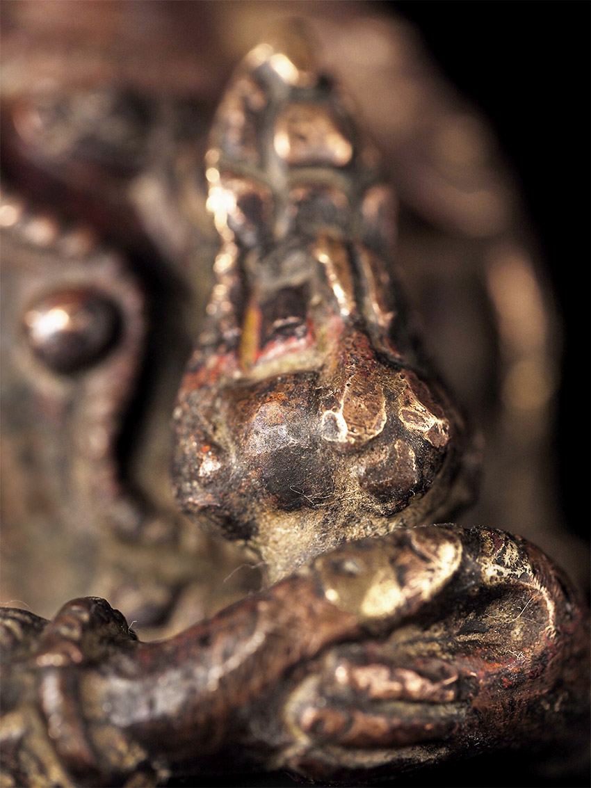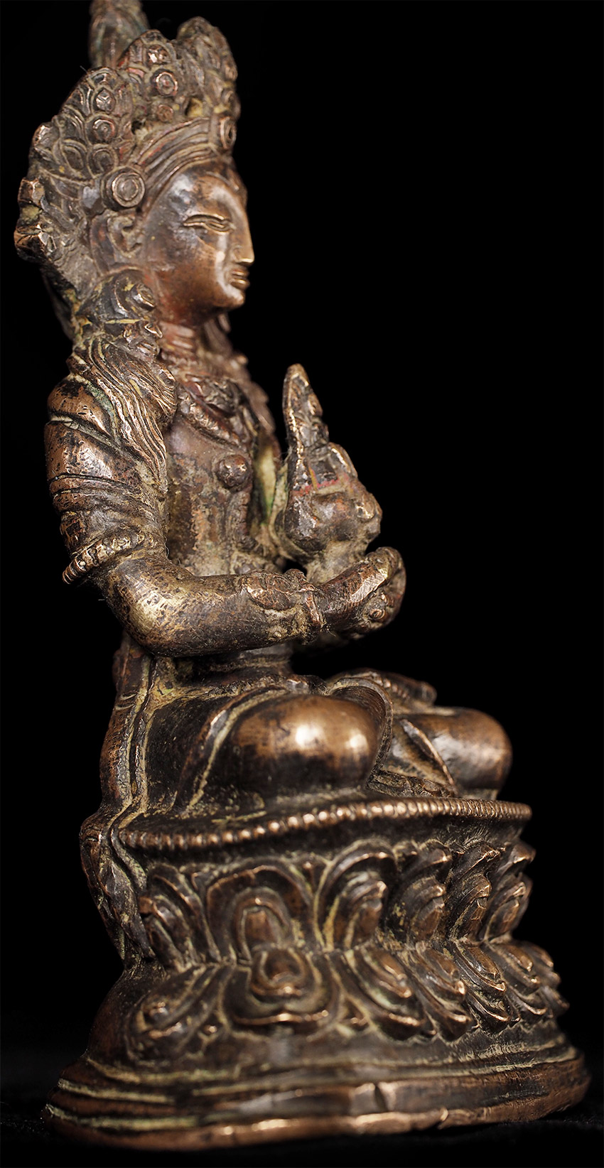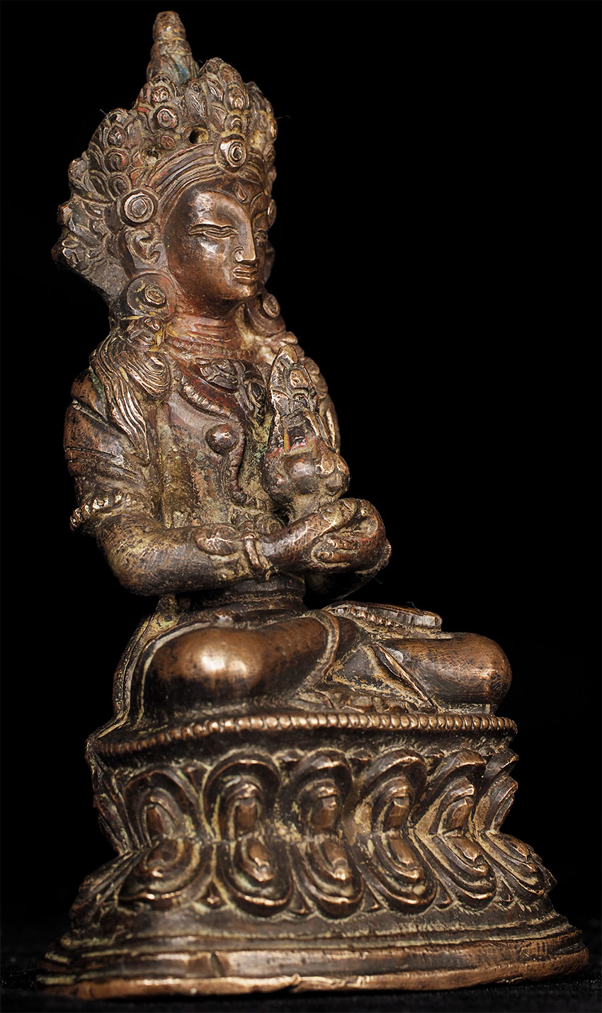18/19thC West Tibet Bronze Buddha- Great classic face, well cast. Remains of gilding. From a high end New York City collection. Radiates equanimity, and has the feel that truly successful classic pieces manage to convey. This piece measures 5.5" tall. Domestic shipping is included, and international shipping is $50, including packing and insurance to anywhere in the world.