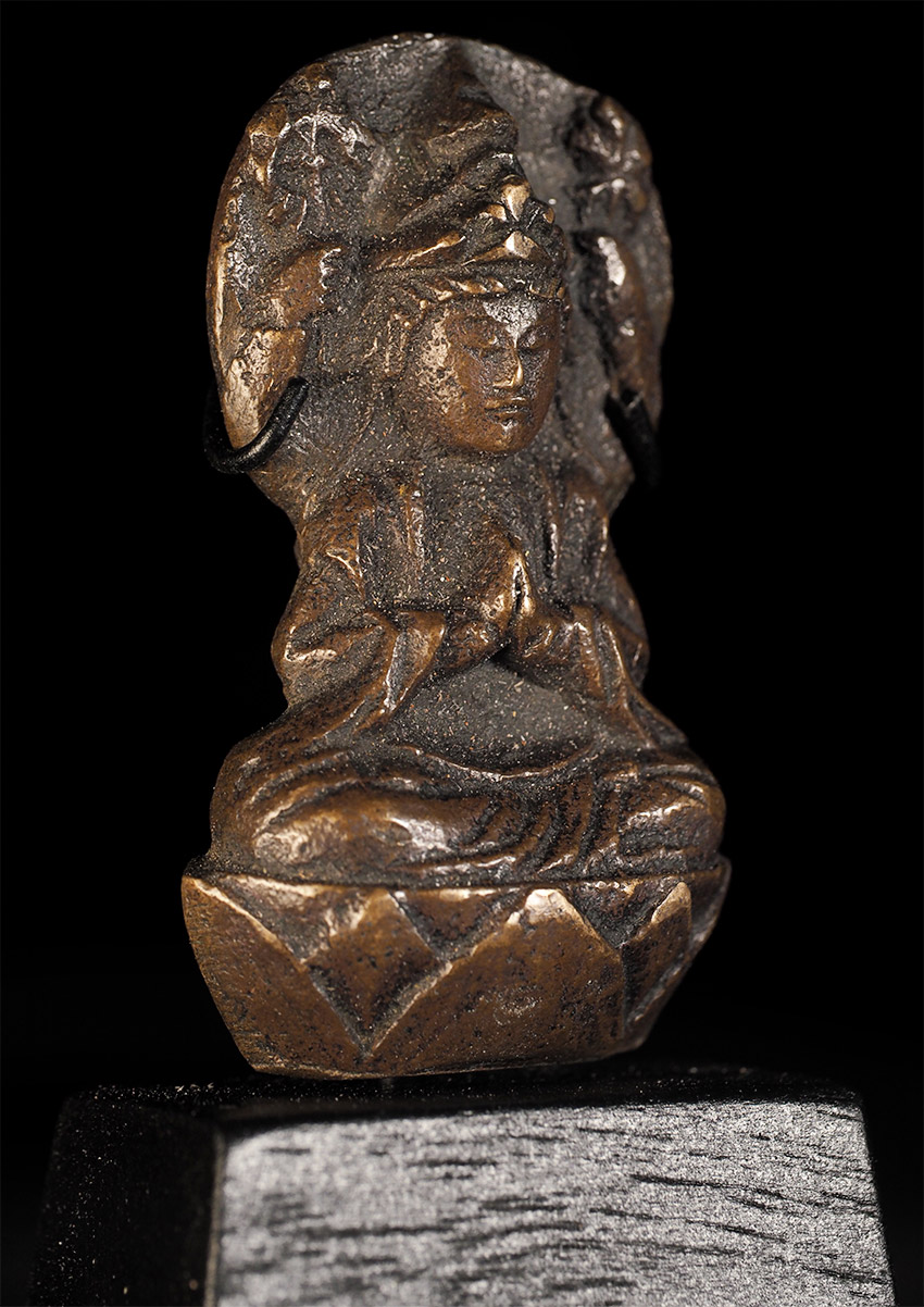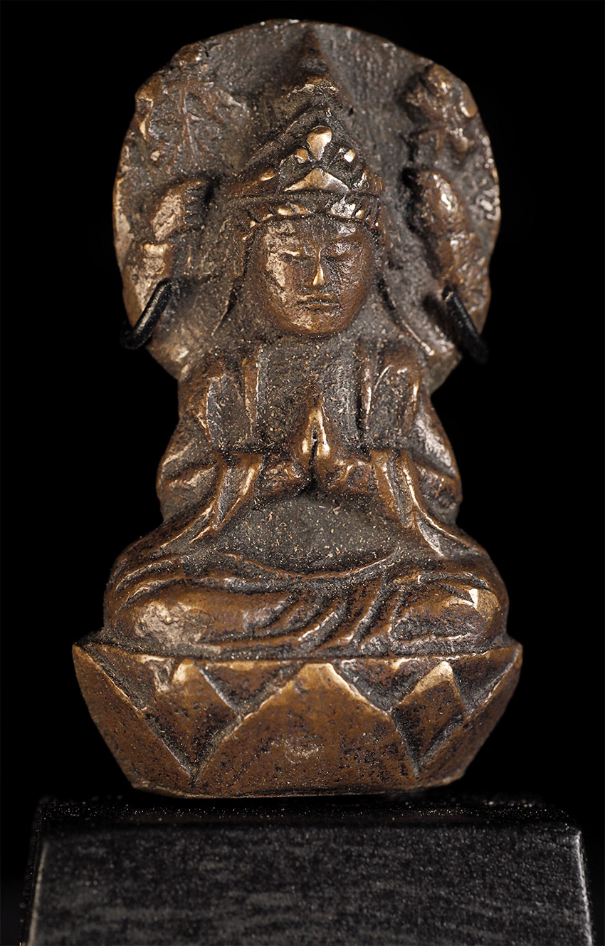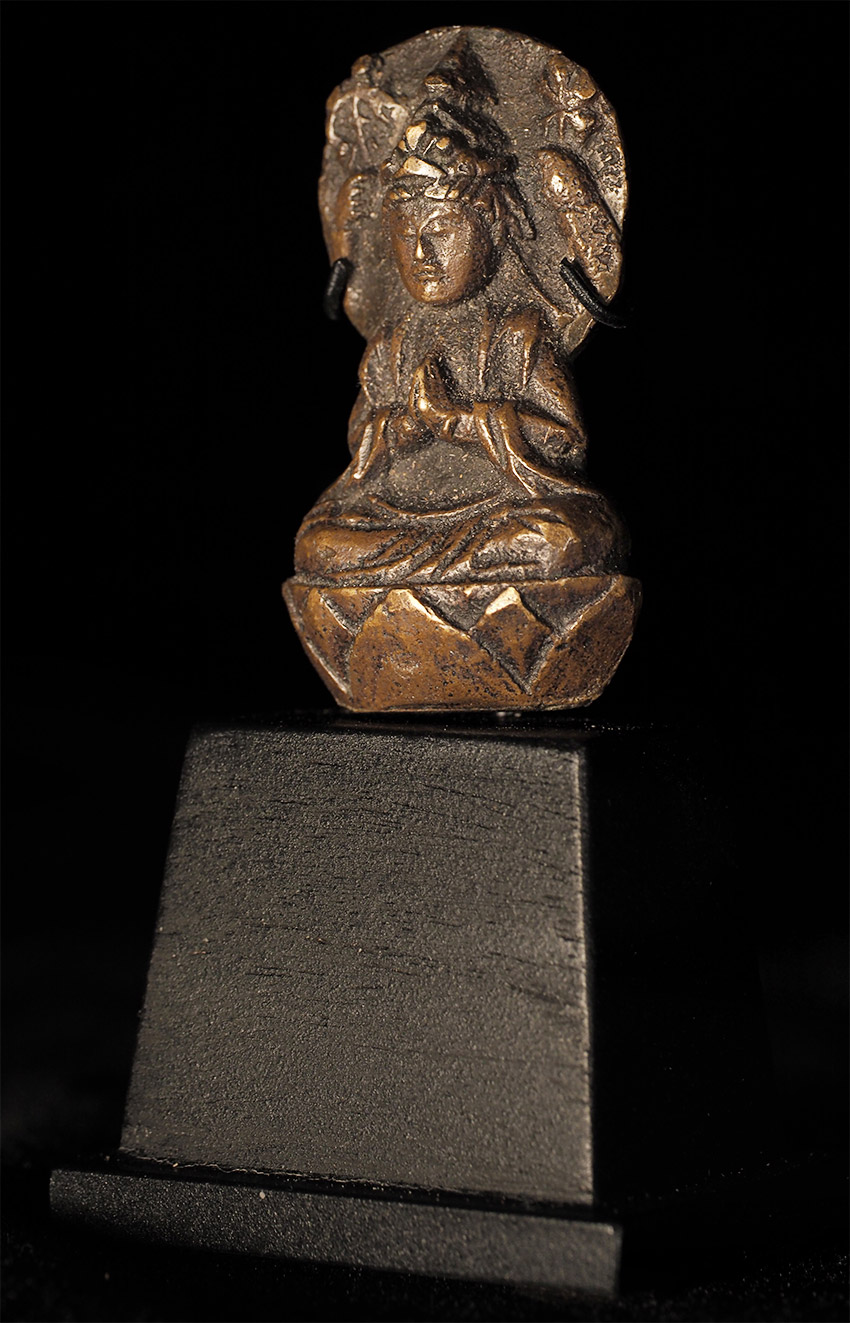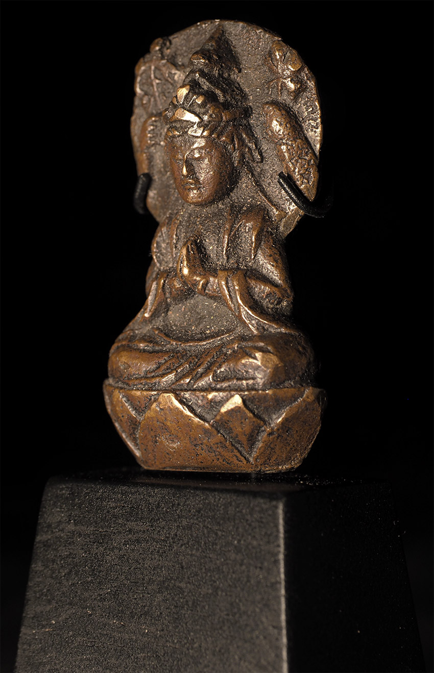 Delightful Edo Era Bodhisattva-Rare type. . This piece measures 1.75" tall, 1" wide, .75" deep, and 3 1/16" tall on its custom base. Domestic shipping is included, and international shipping is $50, including packing and insurance to anywhere in the world.