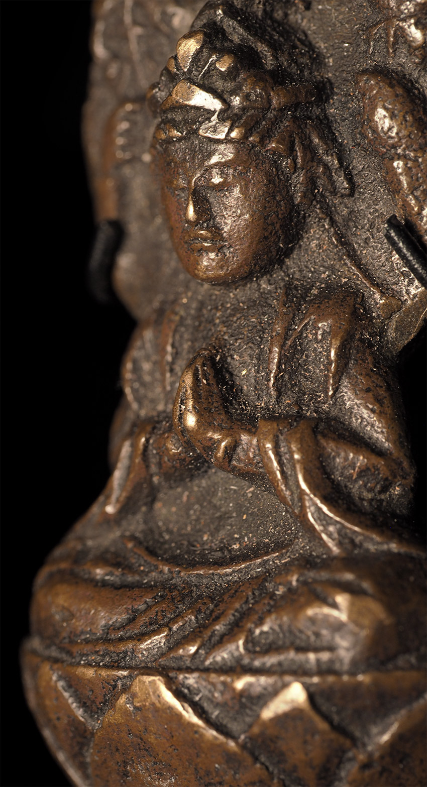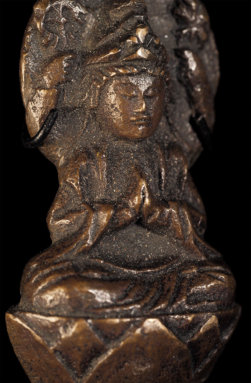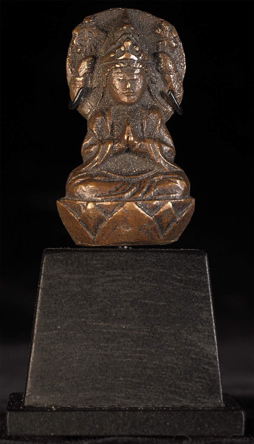 Delightful Edo Era Bodhisattva-Rare type. . This piece measures 1.75" tall, 1" wide, .75" deep, and 3 1/16" tall on its custom base. Domestic shipping is included, and international shipping is $50, including packing and insurance to anywhere in the world.