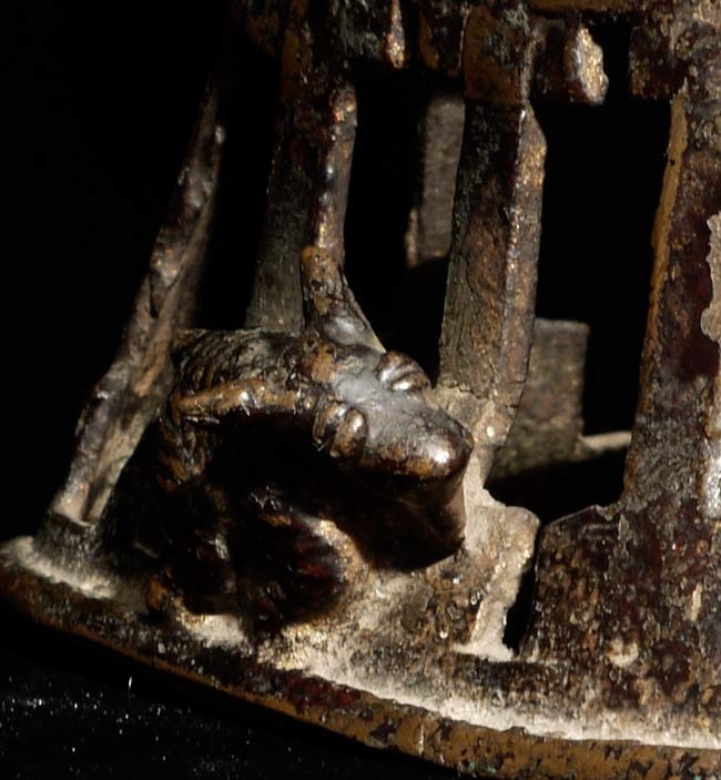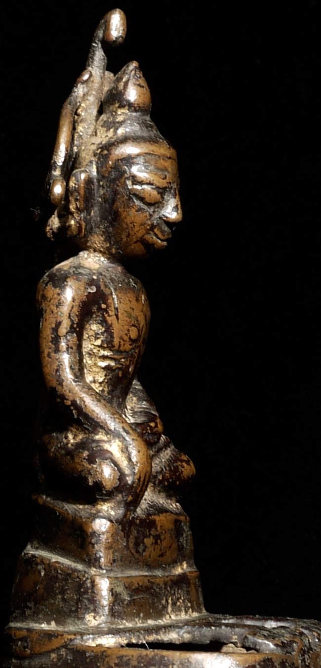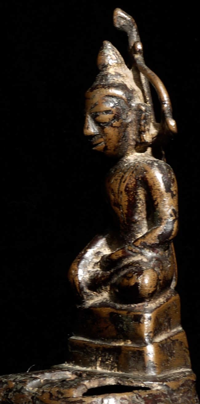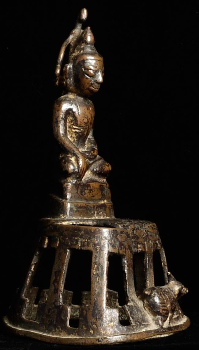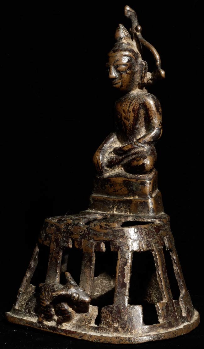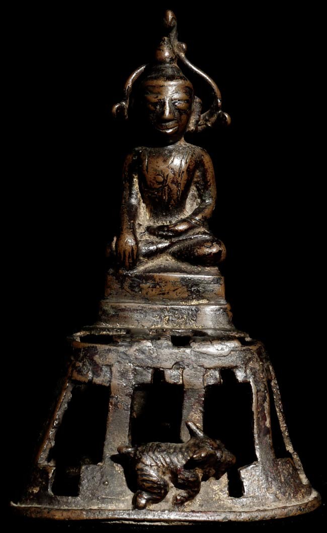 14th-16thC solid-cast Burmese Ava style Buddha under a stylized Bodhi tree. Very uncommon. In deep concentration. Mirror-like surface. Note the animal on the base. Measures 6" tall, bottom is 3.5" x 3.25". Domestic shipping is included, and international shipping is $50, including packing and insurance to anywhere in the world