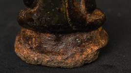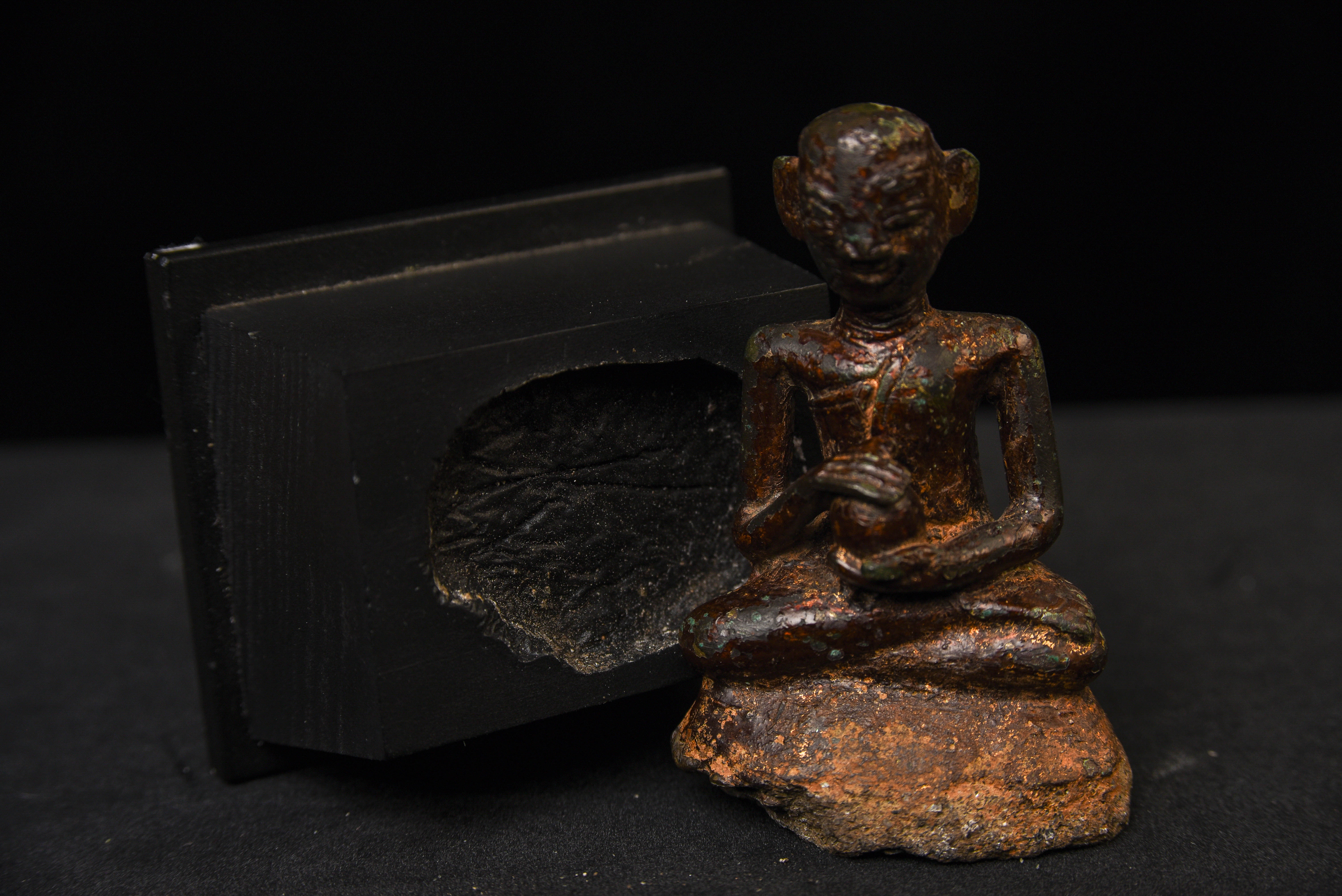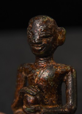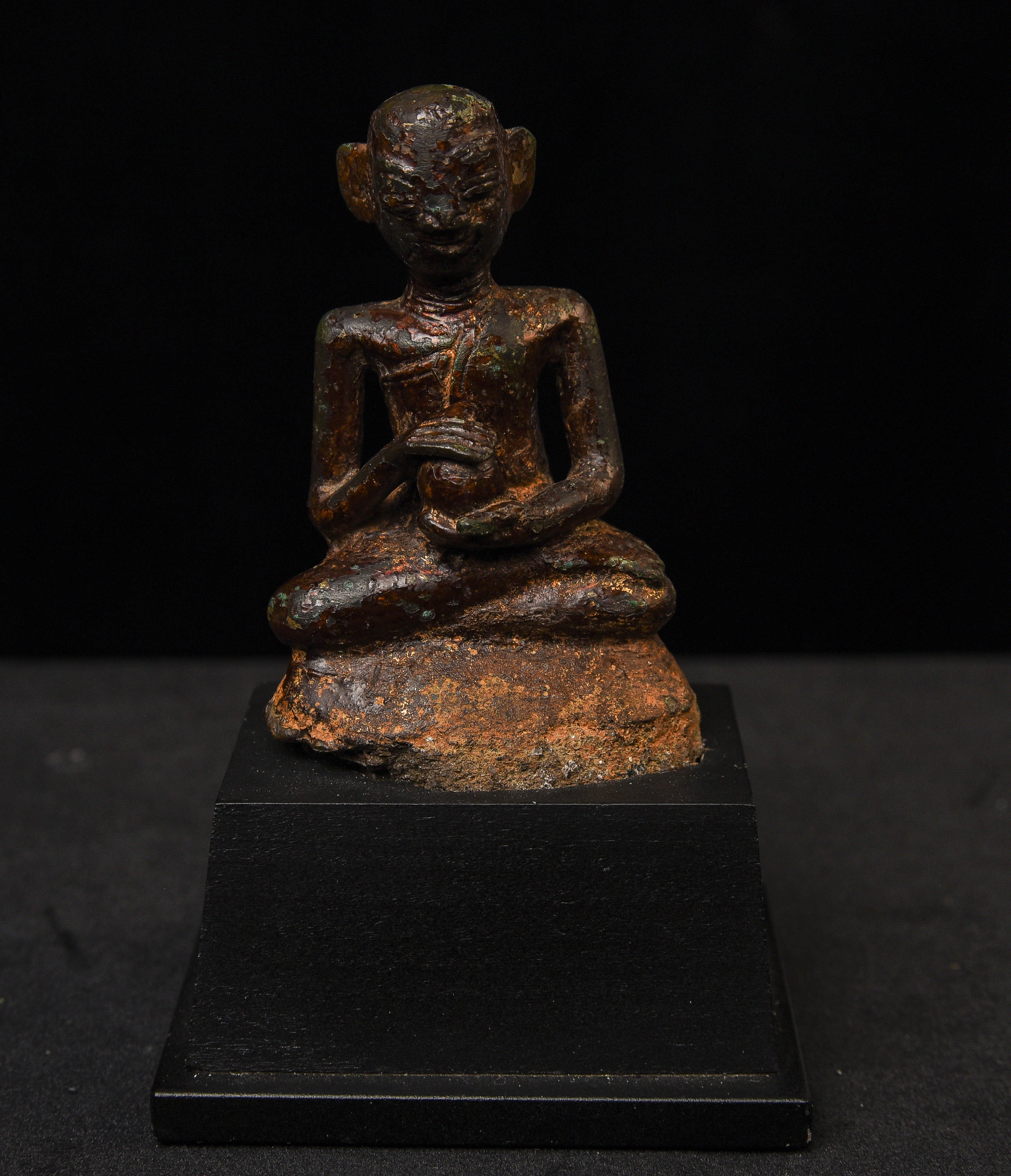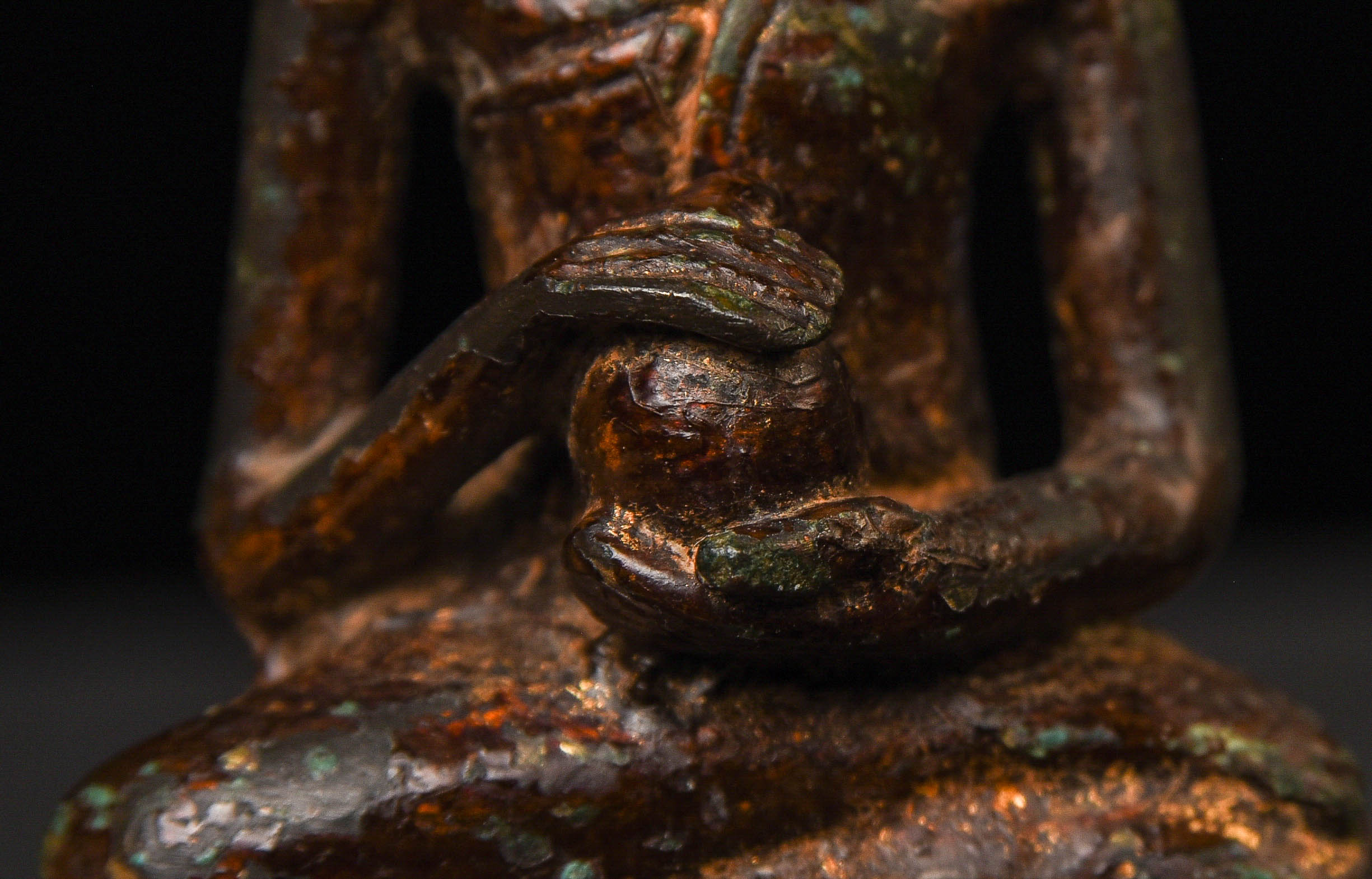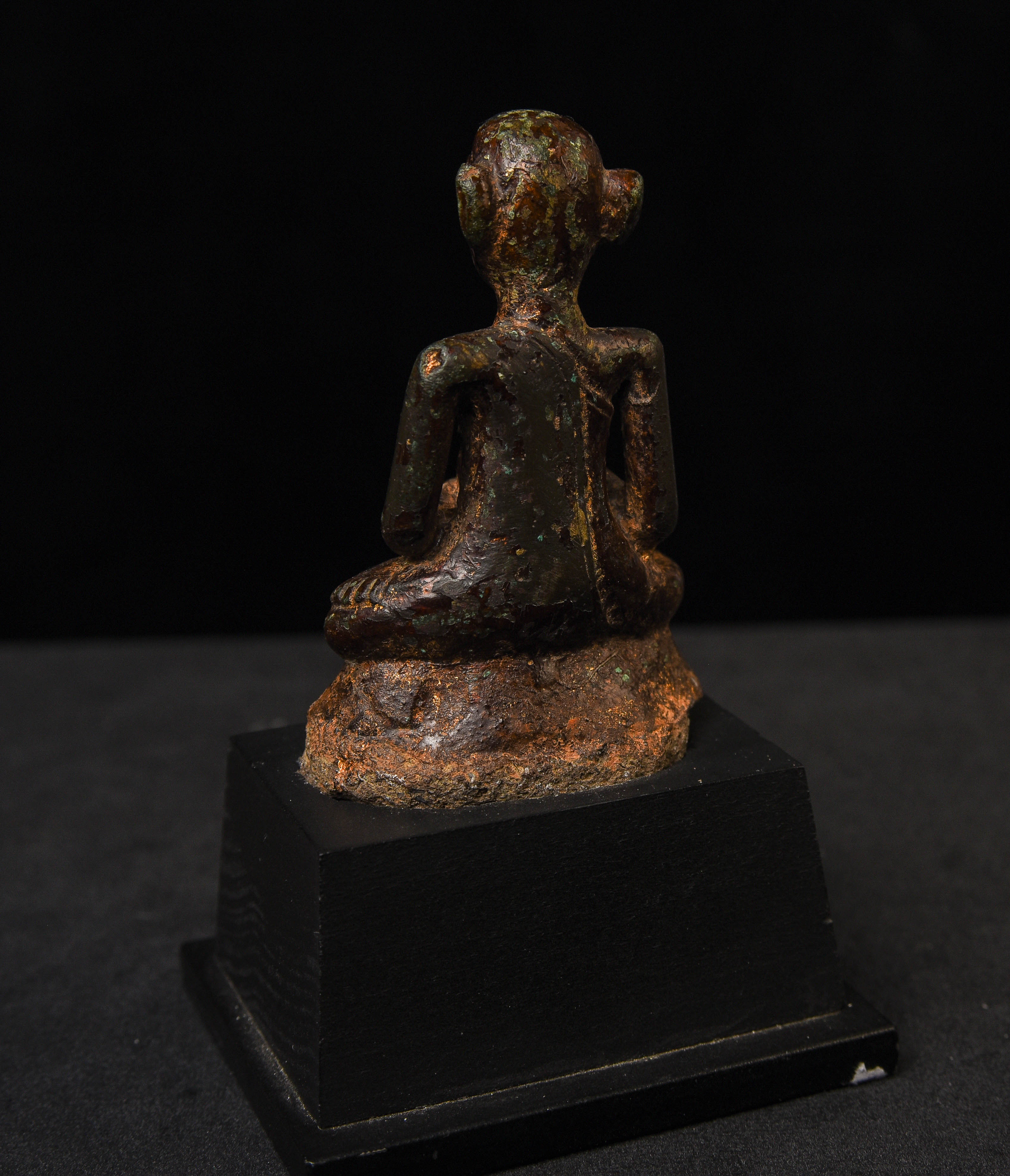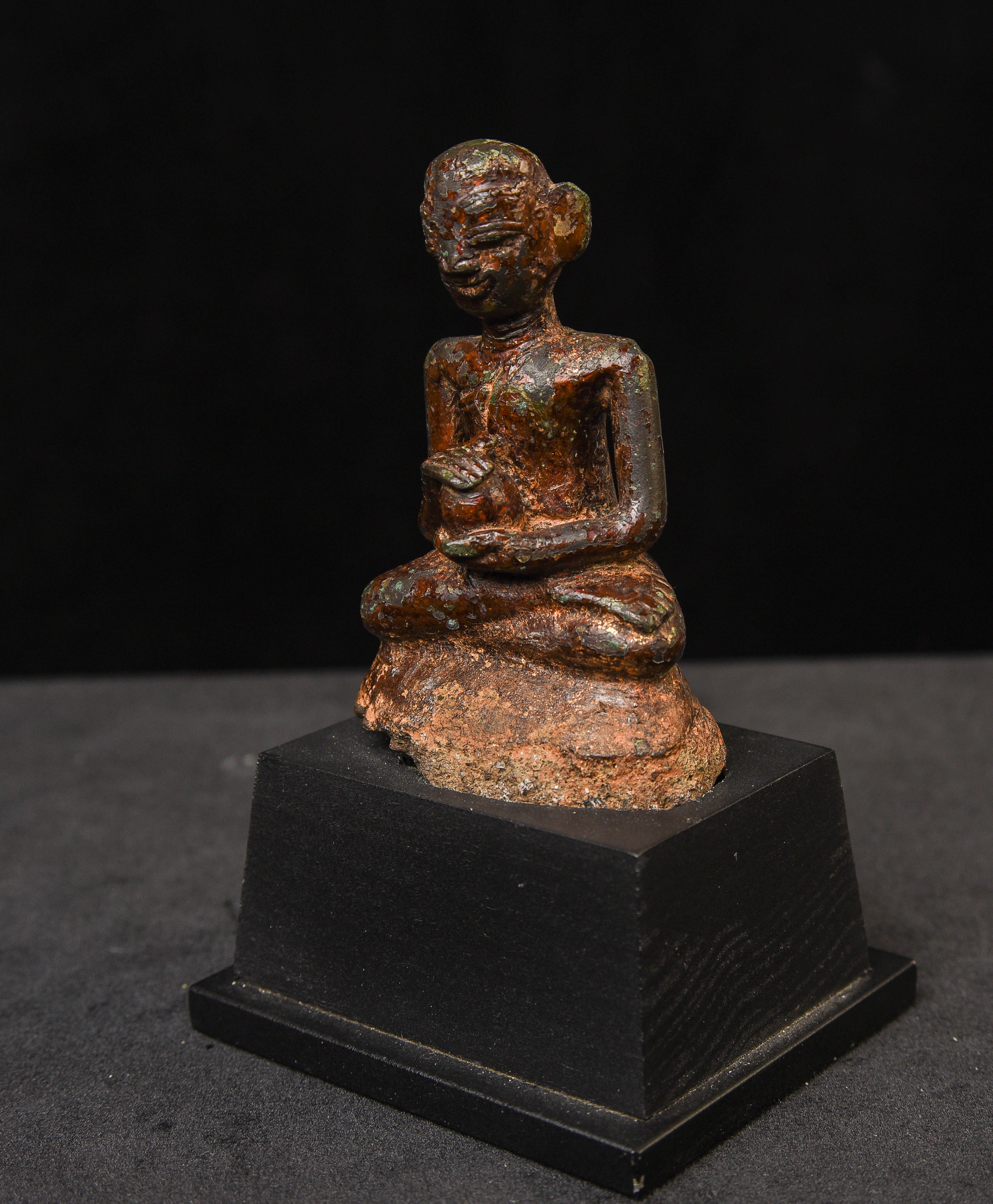 Very early Pyu Burmese Buddhist monk or pre-enlightened Buddha. Solid cast. Holding a ball in the same manner as the 7-9th century Pyu Buddha images, likely of that period or at most a little later. Sits happily at 3-1/8 inches tall, 4.5 inches on a custom stand. It's a rare early type - I've never seen another Monk like this (mostly Buddhas and an occasional Bodhisattva). It is a genuinely advanced collector/museum-level piece. Domestic shipping is included, and international shipping is $200 including packing and insurance to anywhere in the world.