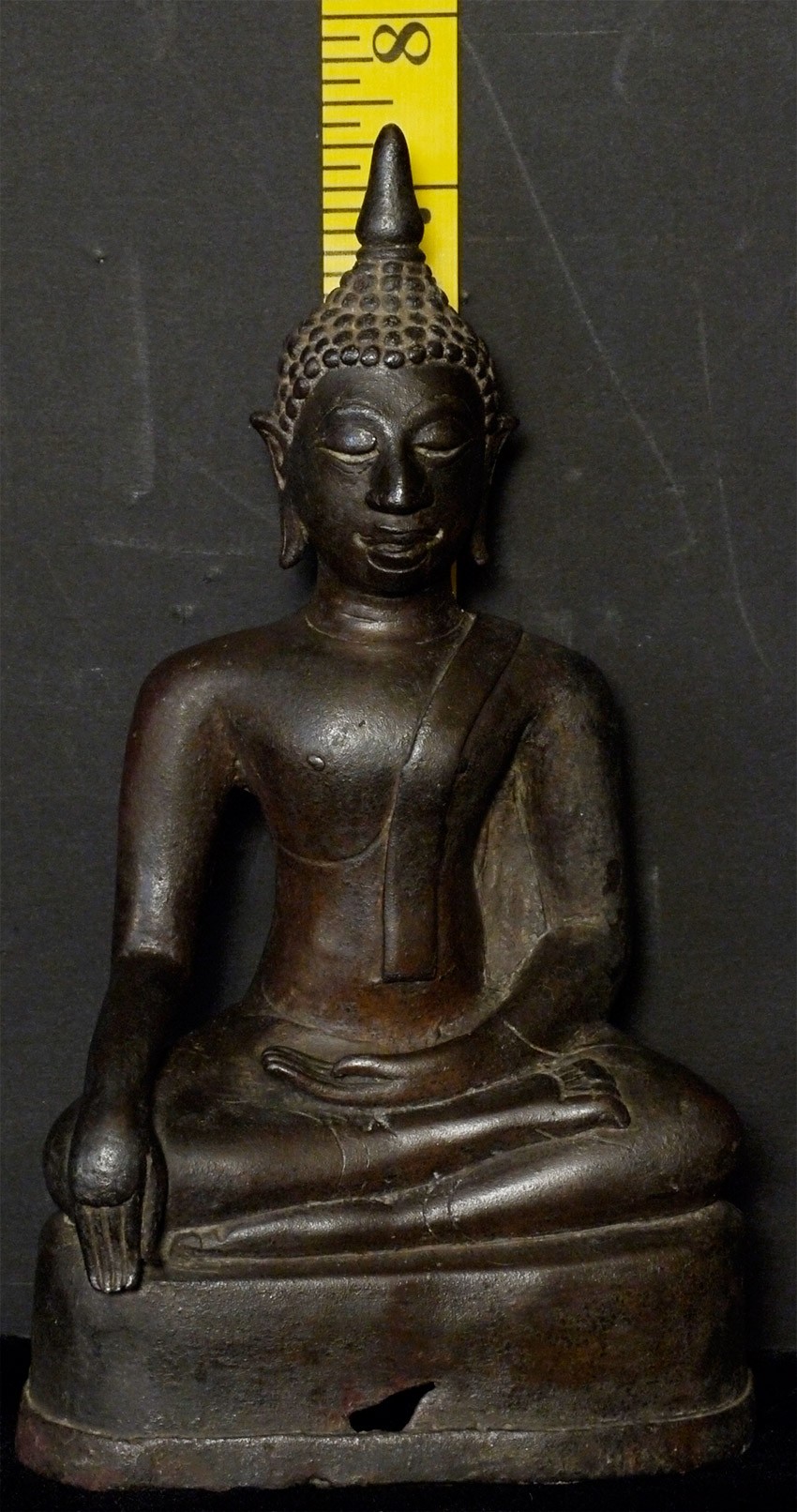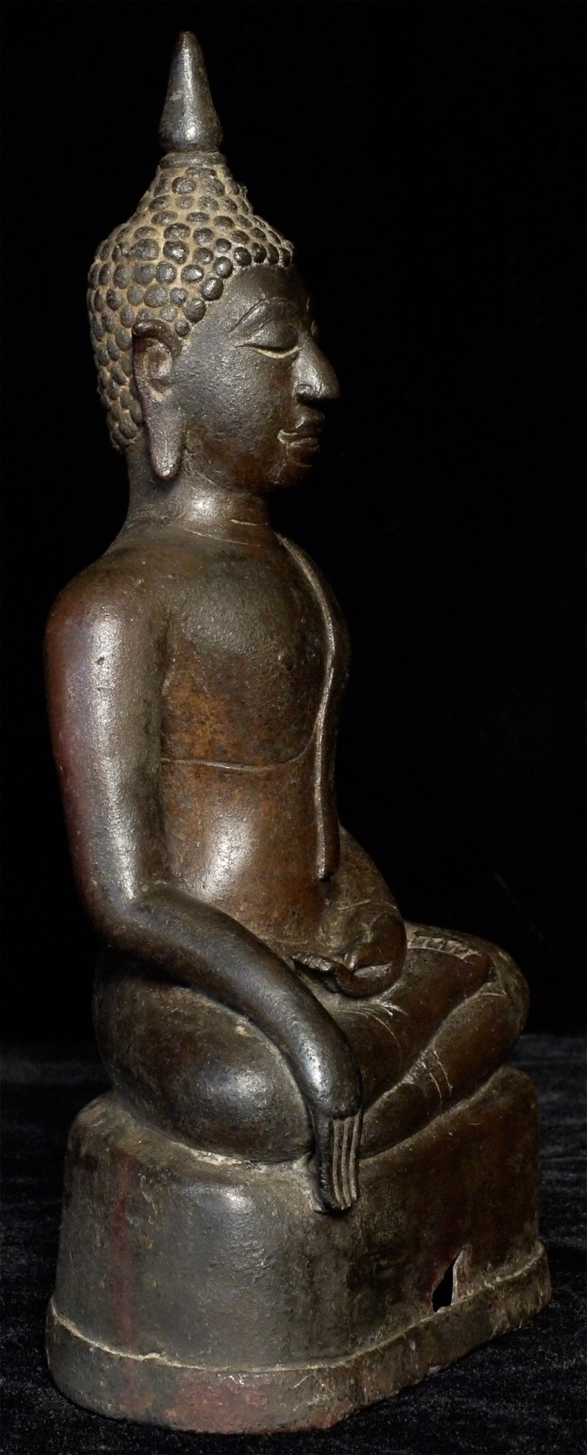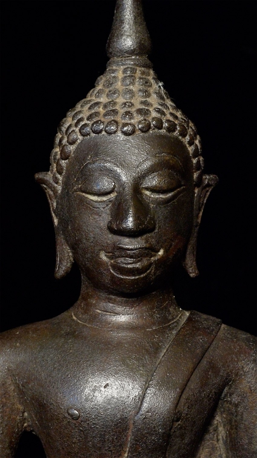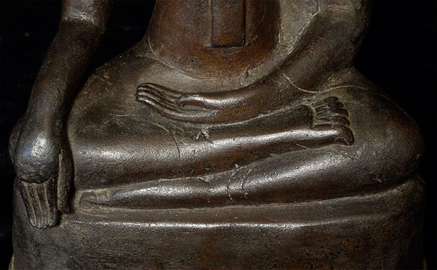 Very fine Northern Thai bronze Buddha from the 16th century. The expressiveness and quality of the casting and sculpting are exceptionally nice. Has a deep spiritual countenance. Best of his type. Measures 7.5" tall.