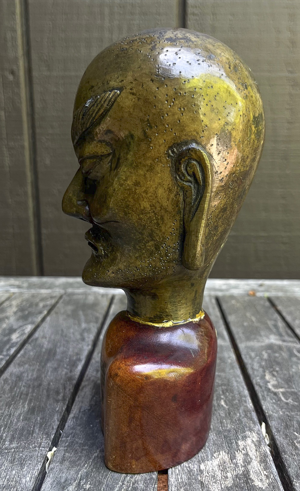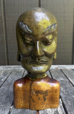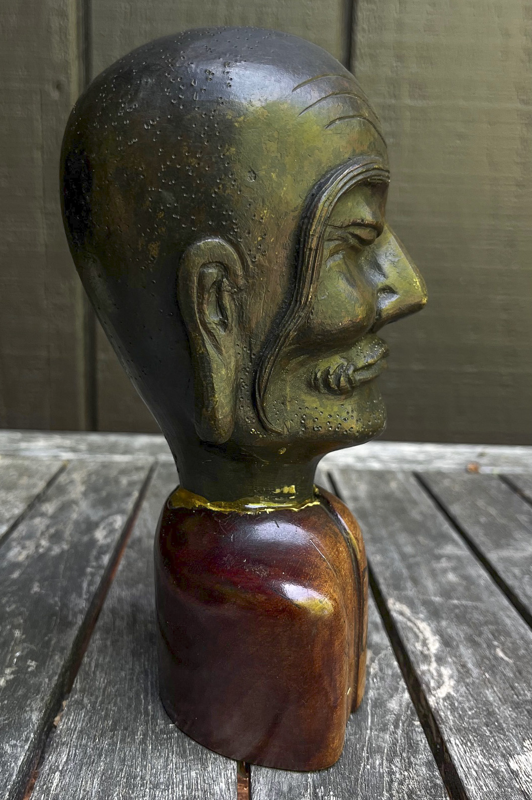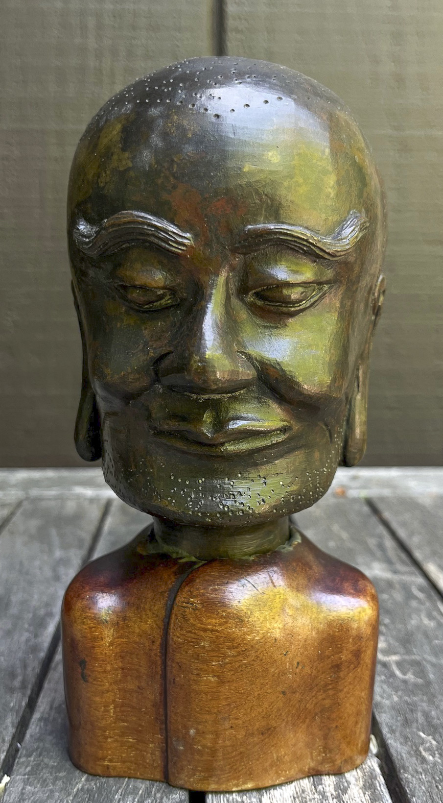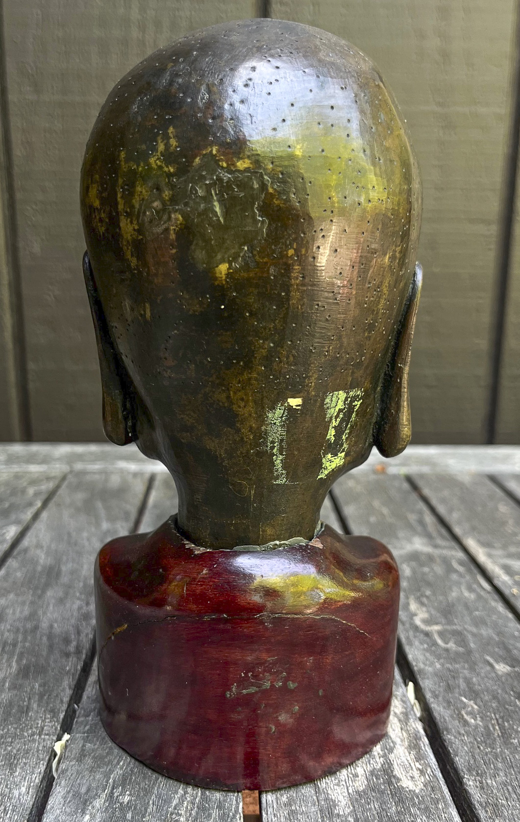 Set of Five 17th/18th Century (or Earlier) Bronze Lohan Heads. A rare and beautifully cast group of five Lohan (Arhat) heads, dating to the 17th–18th century or earlier. Each head measures approximately 7⅝ inches tall including the base, with the bronze portions themselves about 5 inches in height—an impressive and desirable size for works of this type.