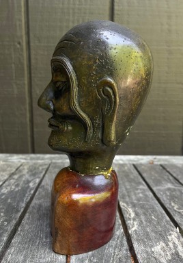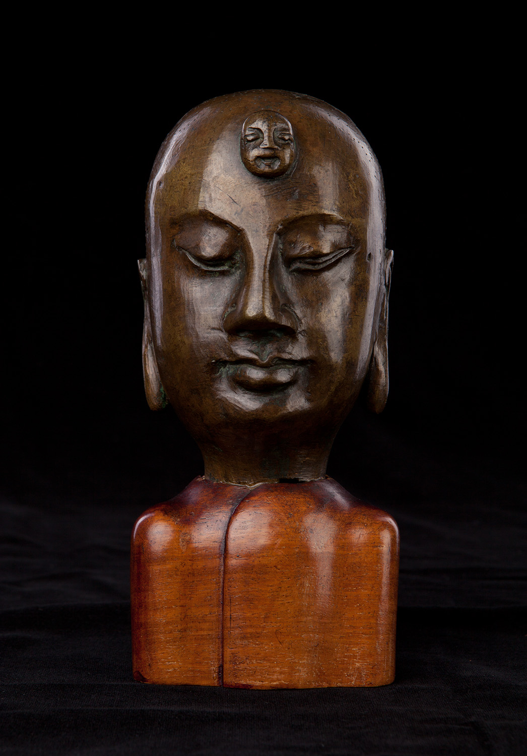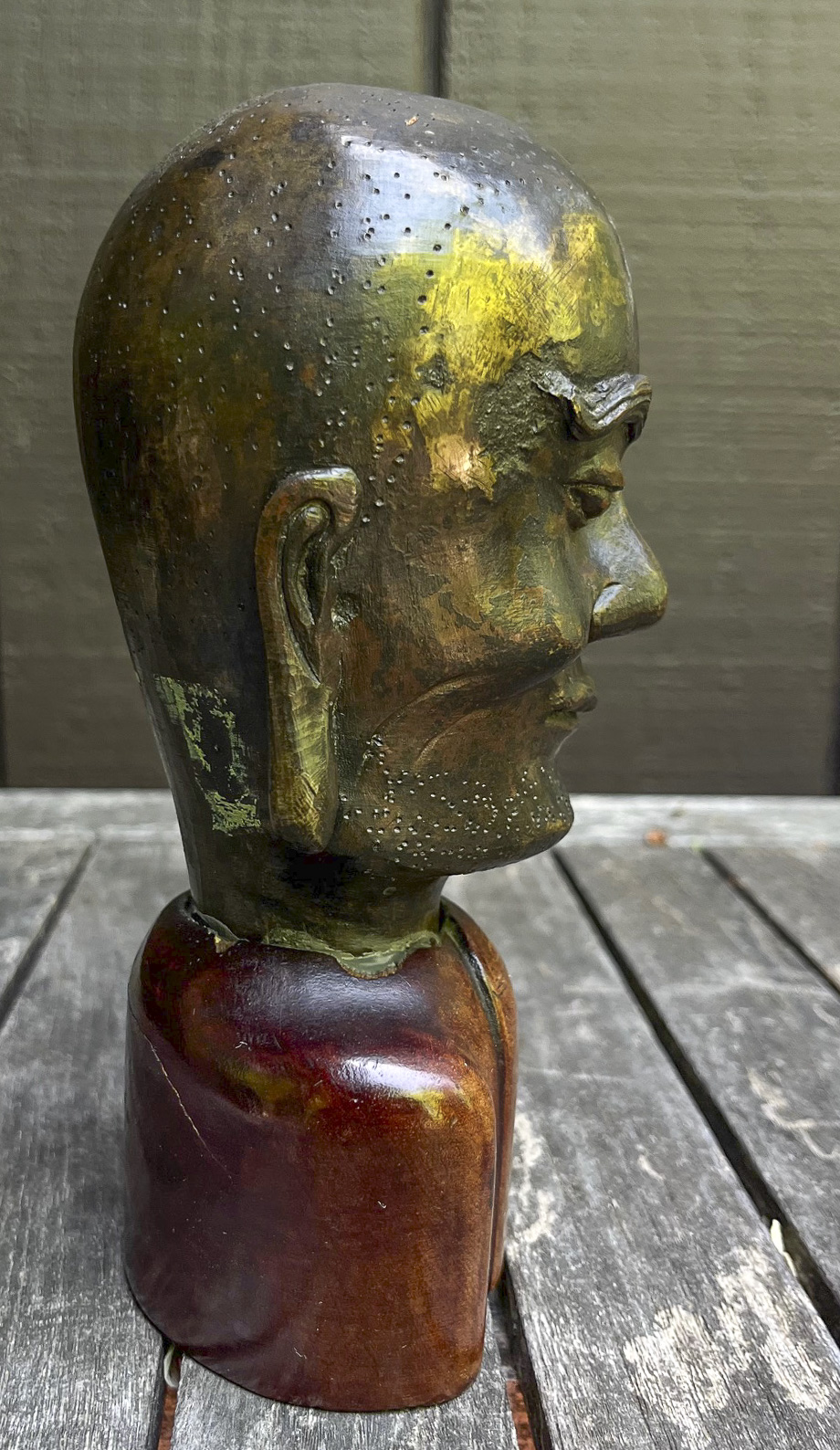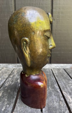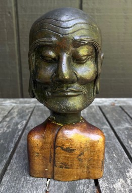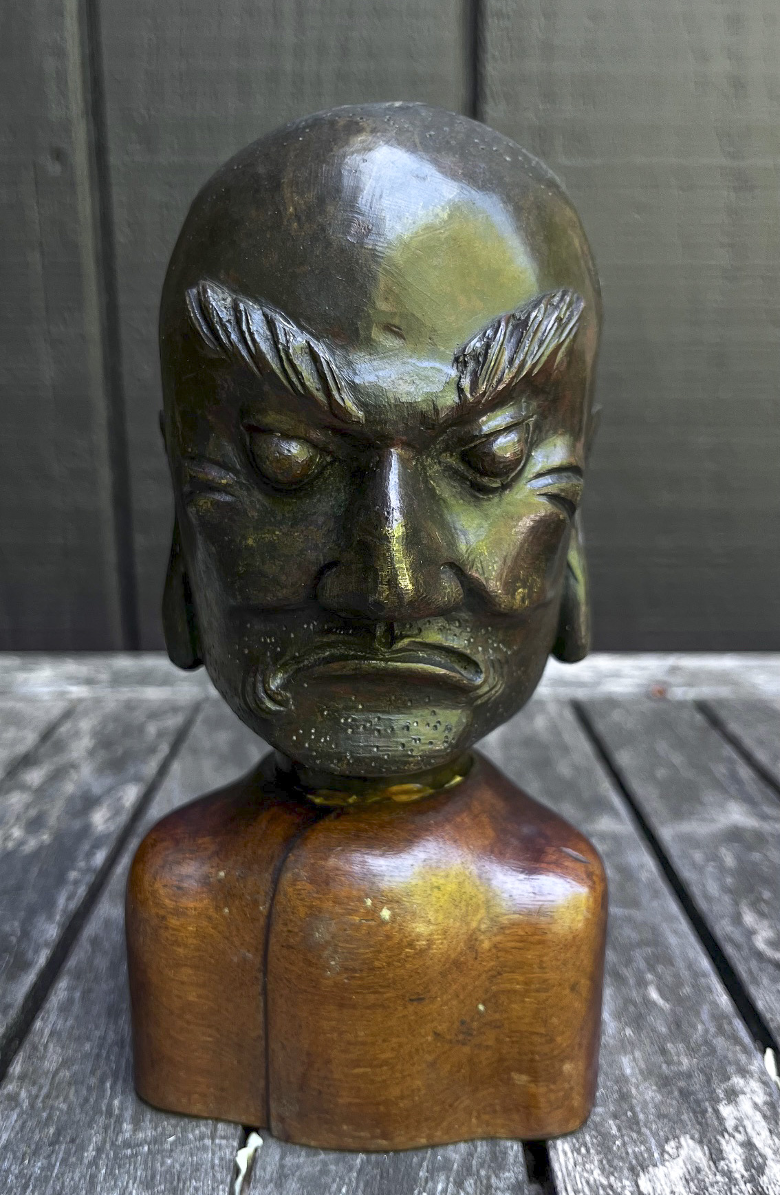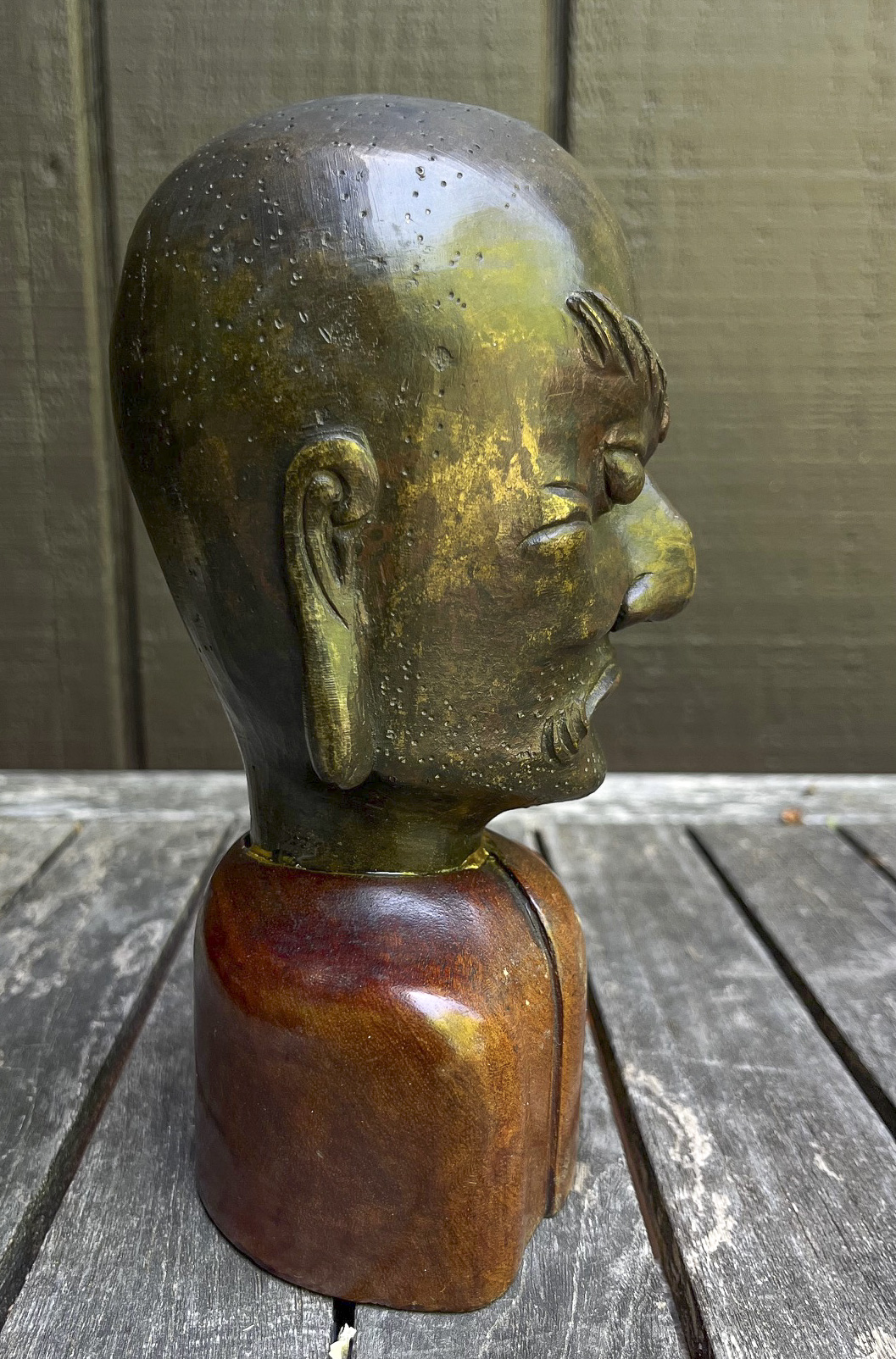 Set of Five 17th/18th Century (or Earlier) Bronze Lohan Heads. A rare and beautifully cast group of five Lohan (Arhat) heads, dating to the 17th–18th century or earlier. Each head measures approximately 7⅝ inches tall including the base, with the bronze portions themselves about 5 inches in height—an impressive and desirable size for works of this type.