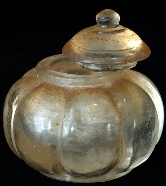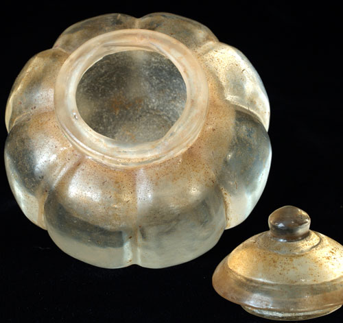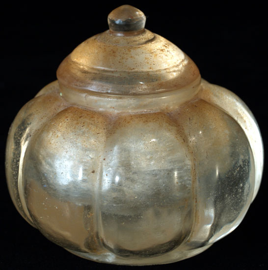 Crystal Reliquary from the Hot District south of Chiang Mai- a large and fine example excavated from a temple site before the building of a reservoir several decades ago. Two and three quarters inches in circumference. Few authentic pieces of this size and type seem to exist. Probably had relics inside. Has a superb original patina. The Chiang Mai Museum has a pumpkin a fraction this size.