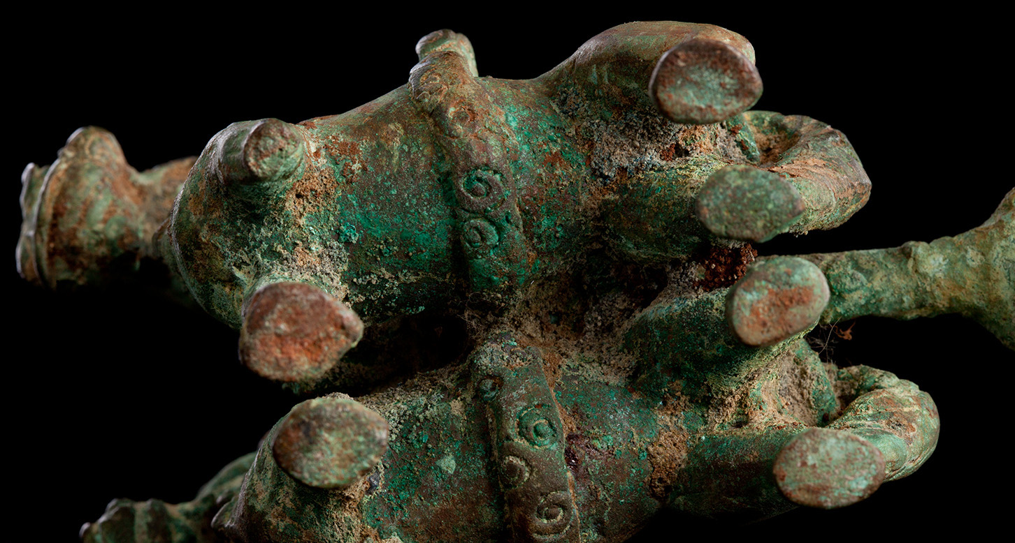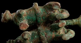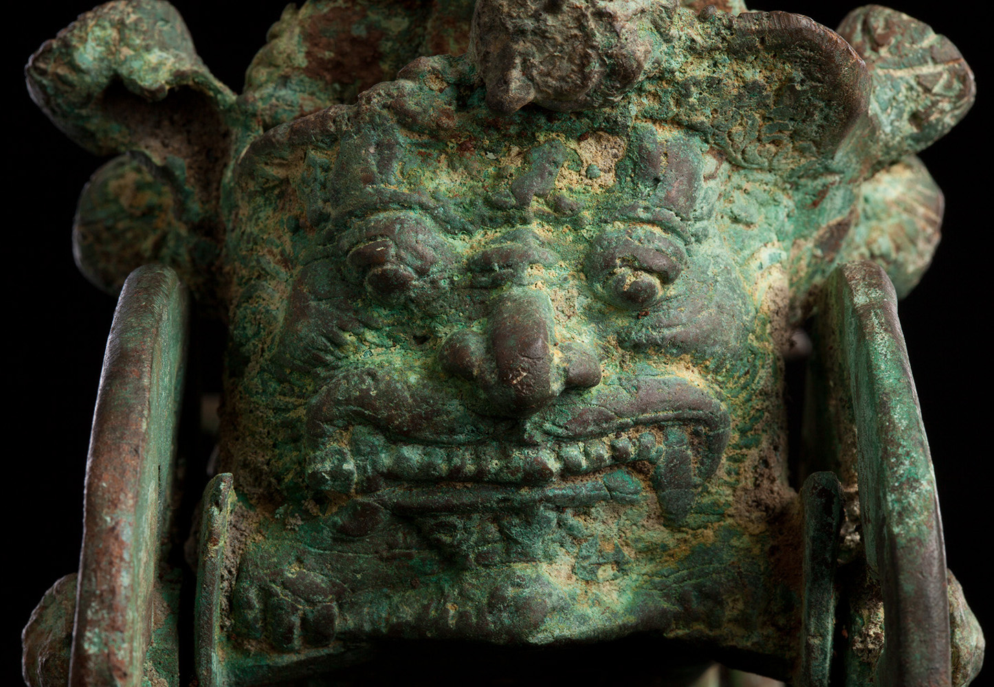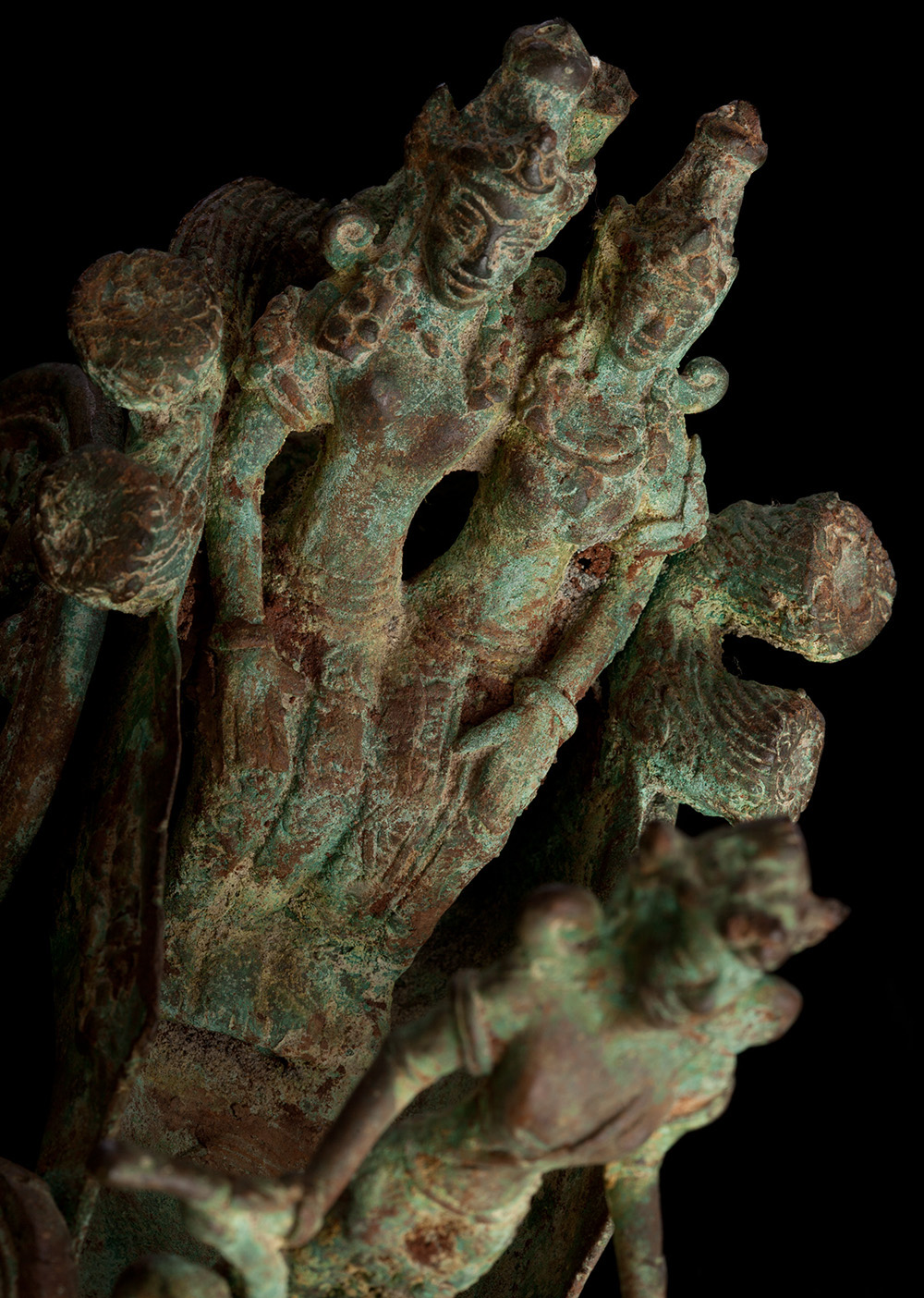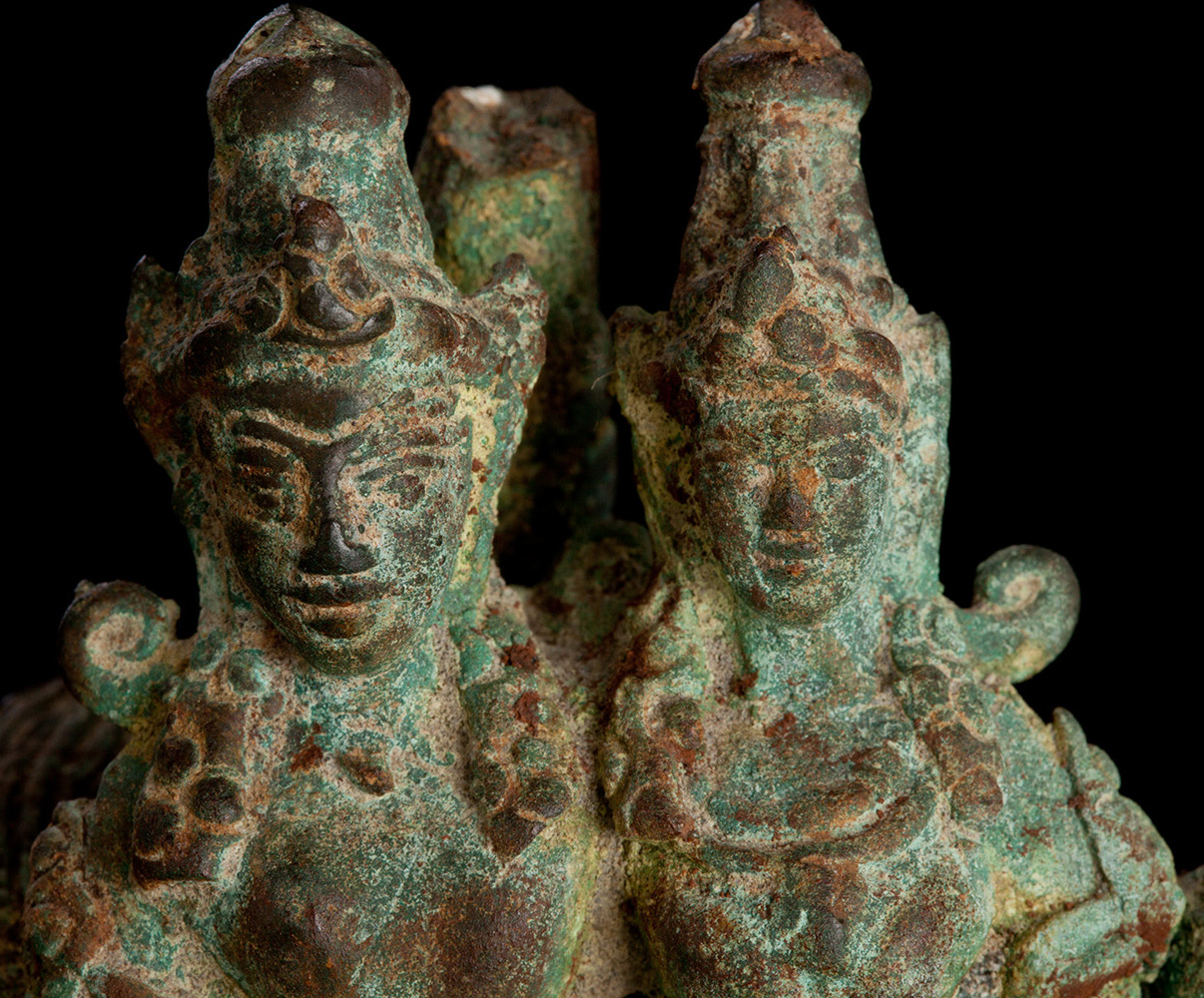 Rare 14/15thC Indonesian Hindu Bronze Group in Chariot Led By Horses. Loss to 2 horse feet. It is a very uncommon item. Many parts. Total length is approximately 11", width at widest point is 3.75", tallest point is 5.75. Very rare item, though I have seen other similar variations