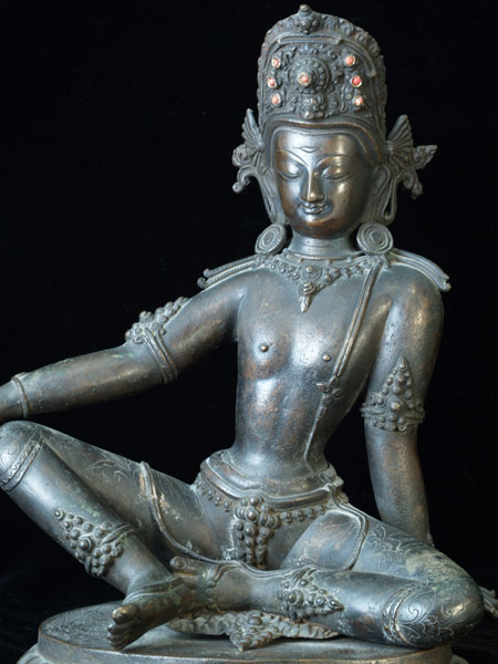 Exquisite, powerful bronze Indra. Collected 40 years ago by a wealthy American diplomat living in Asia. He indicates that it was not new when he obtained it. The figure and base are separate pieces. Lovely in every way. Very good size at close to 13 inches tall by 11 inches wide at the widest point, and weighs close to 8.5 pounds.
