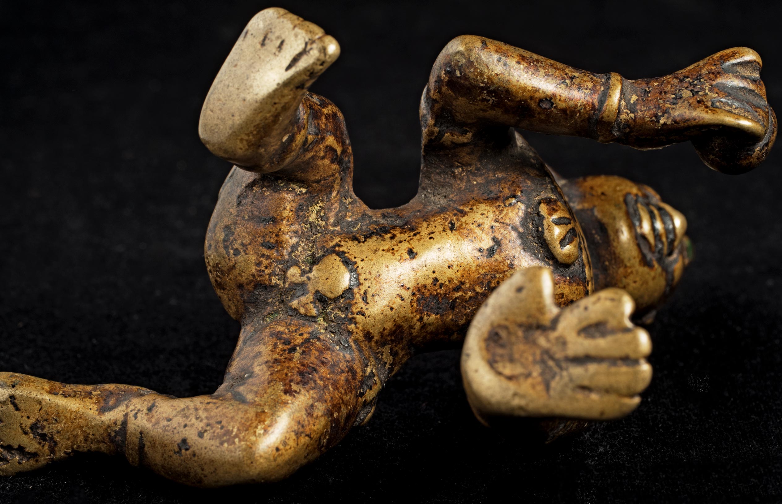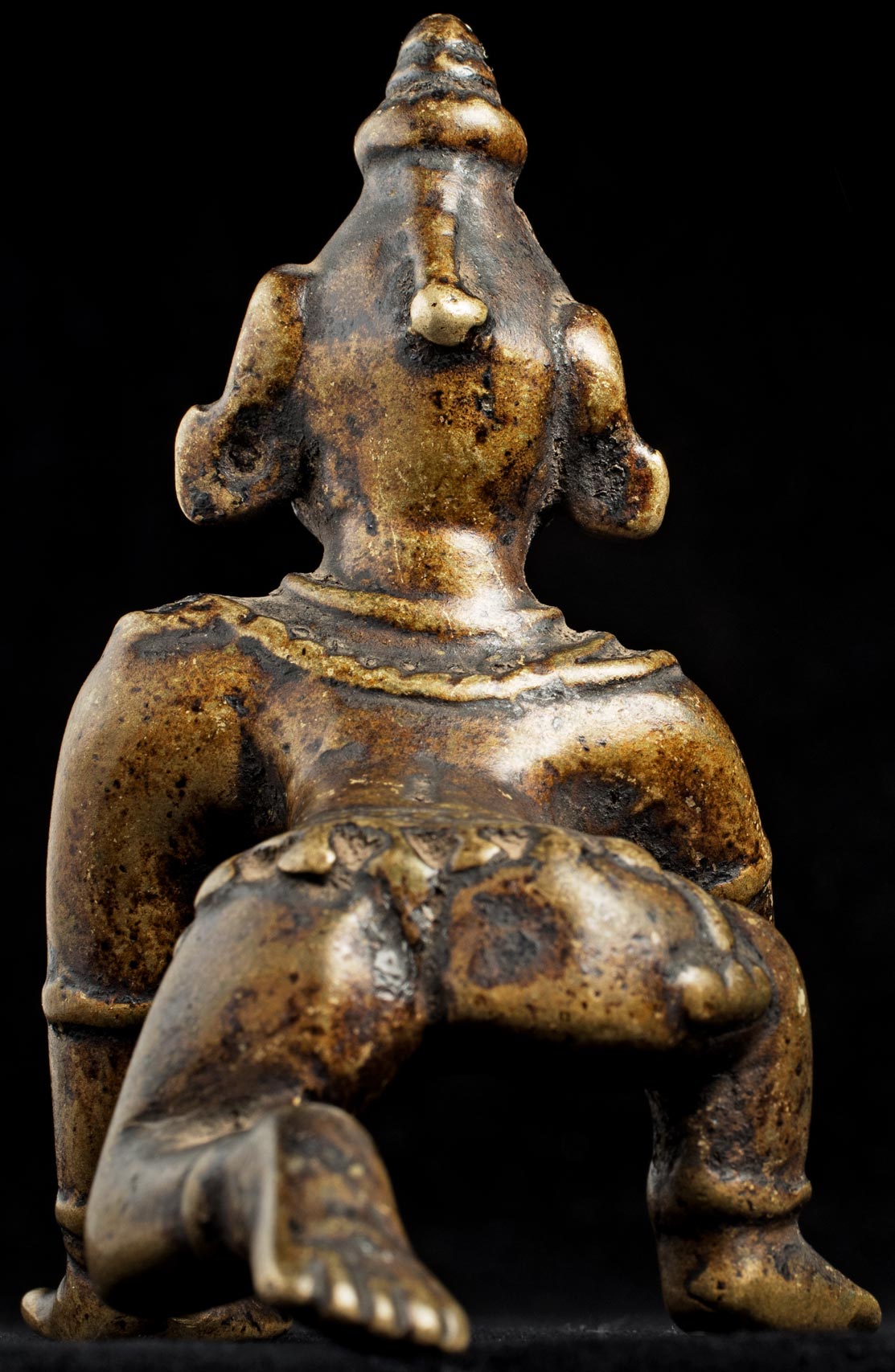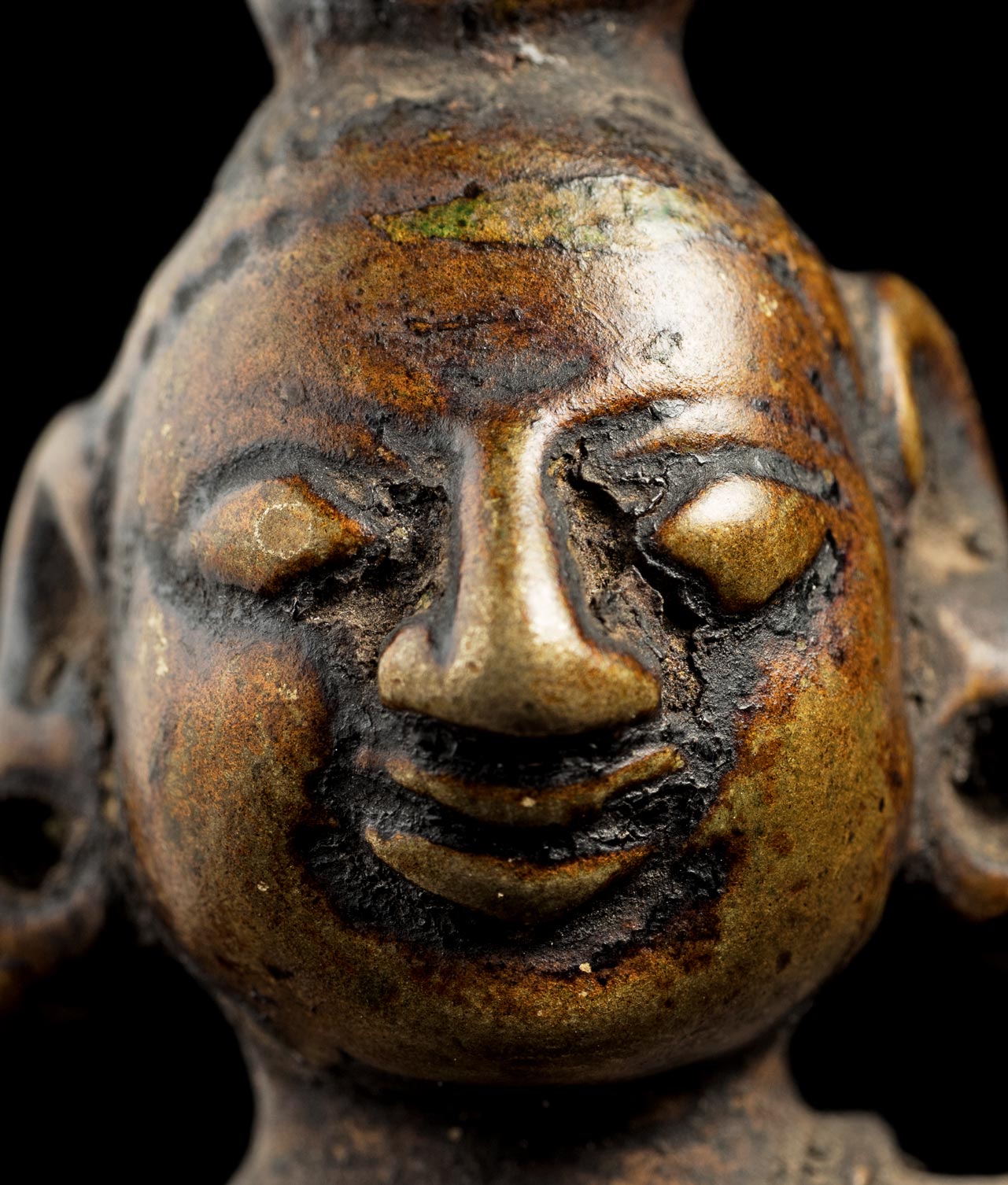Nice antique bronze baby Krishna with a very sweet face. . Wonderful folk art that makes people who see him smile. Nice Patina. This piece measures 4 inches long x 4 inches tall x 2 1/2 inches wide.