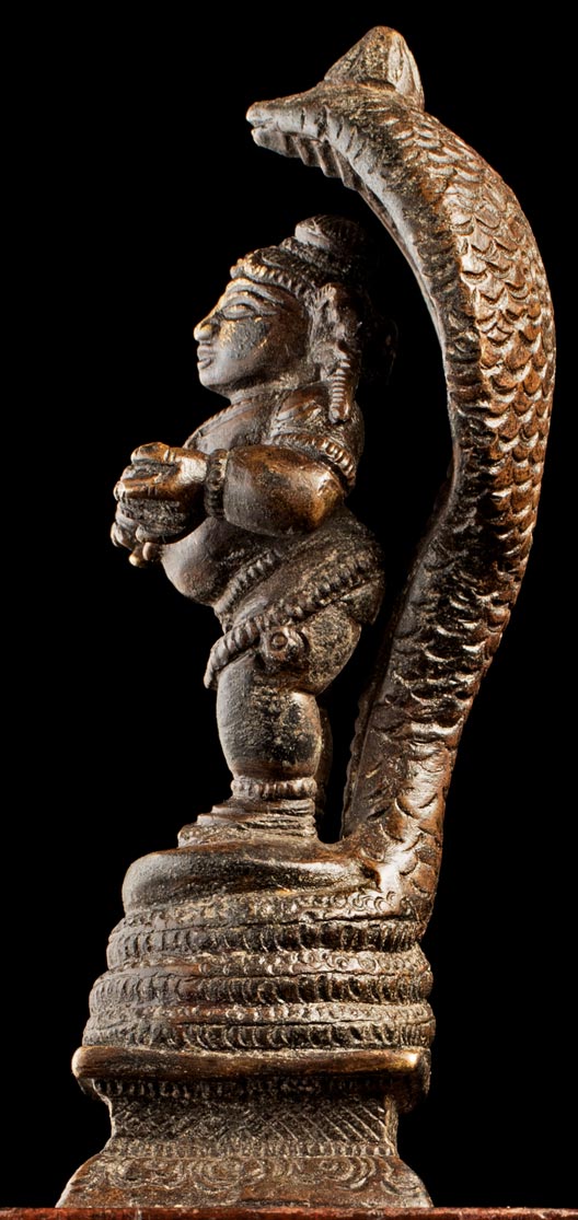 Good 19thC Indian bronze figure. Measures 4 1/2 inches tall x 1 3/4 inches at its widest point x 1 3/4 inches at its deepest point.