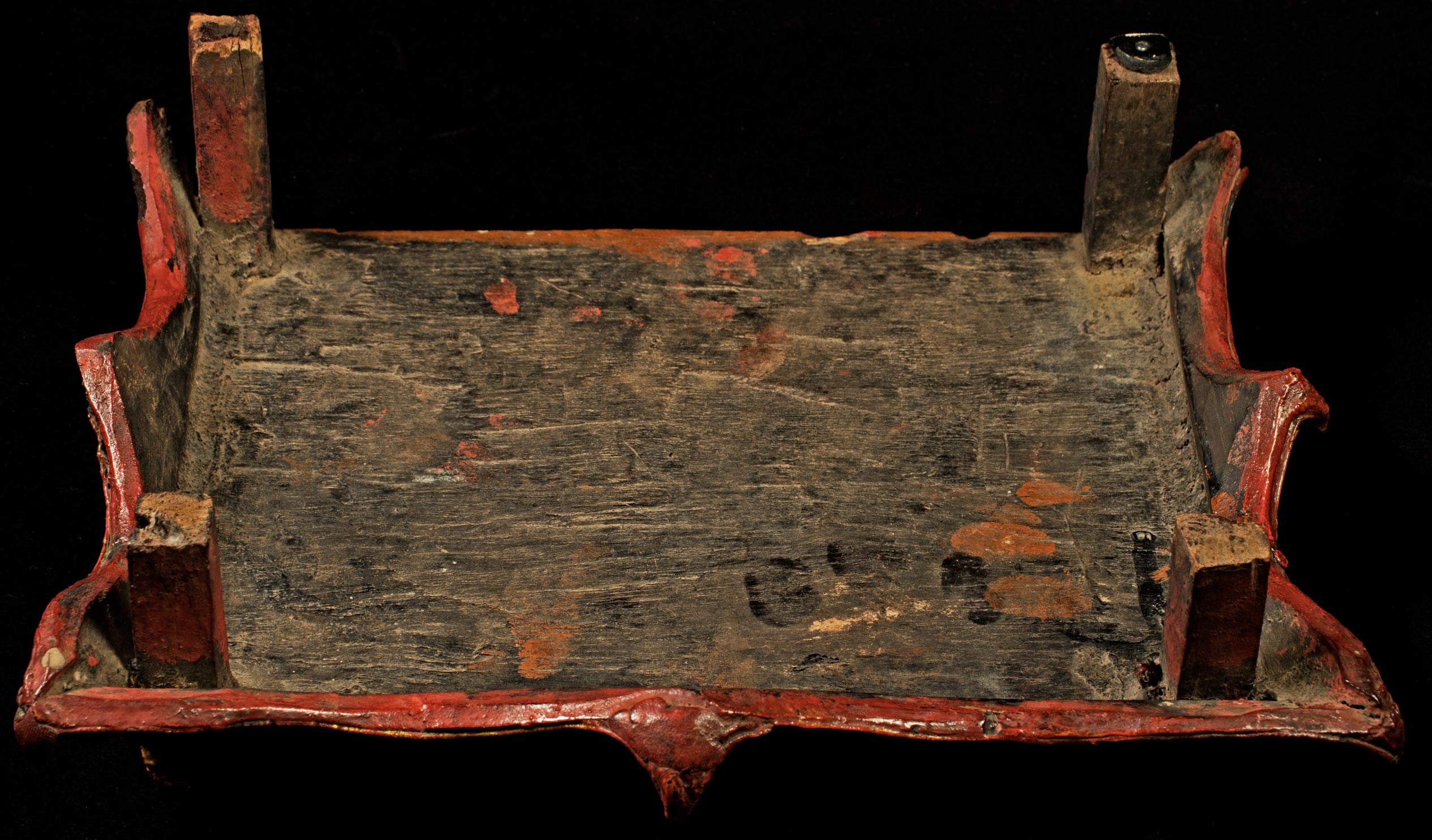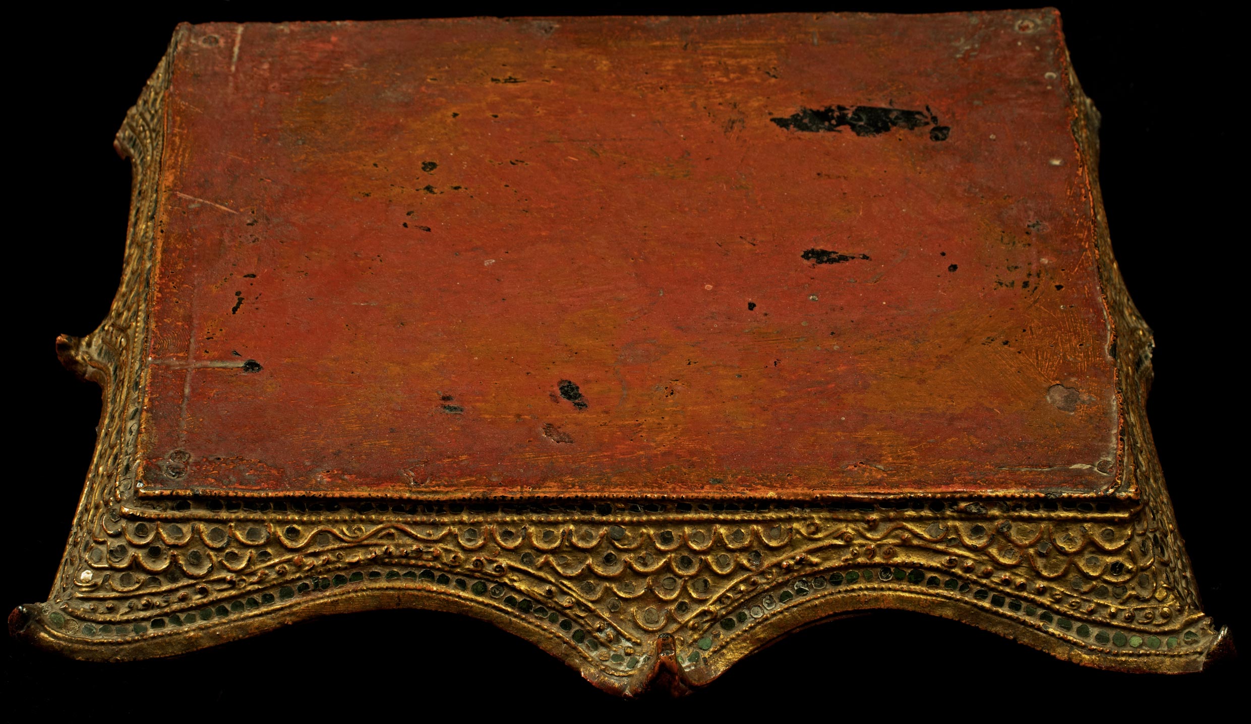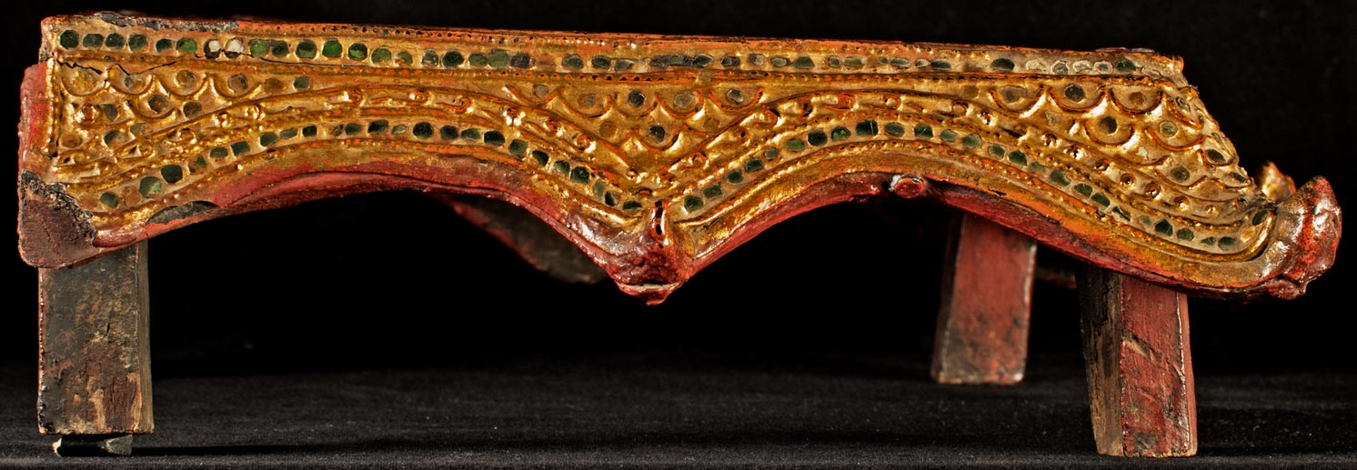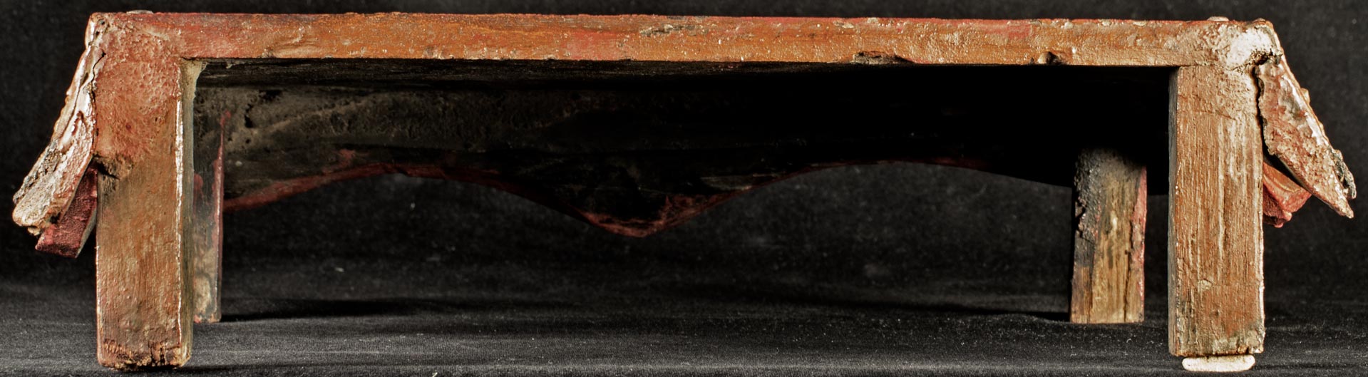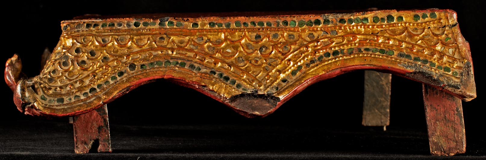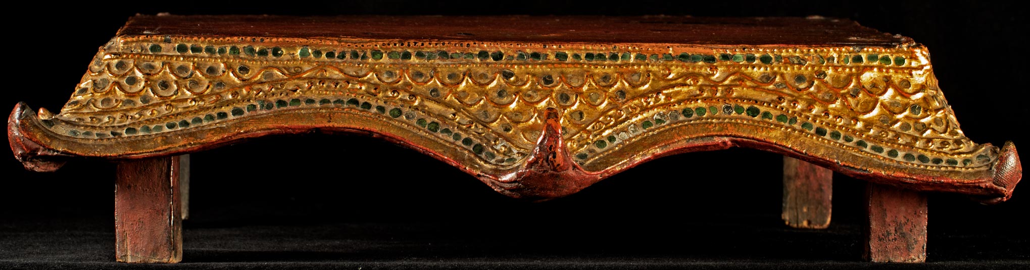 Beautiful 18/19thC Thai or Burmese lacquer and wood stand with added design elements. Some loss as seen in photos. Extremely beautiful example, with a very pleasing patina. It seems to make everything displayed on top of it even more beautiful. measures 12 inches wide x 10 inches deep x 3 inches tall.