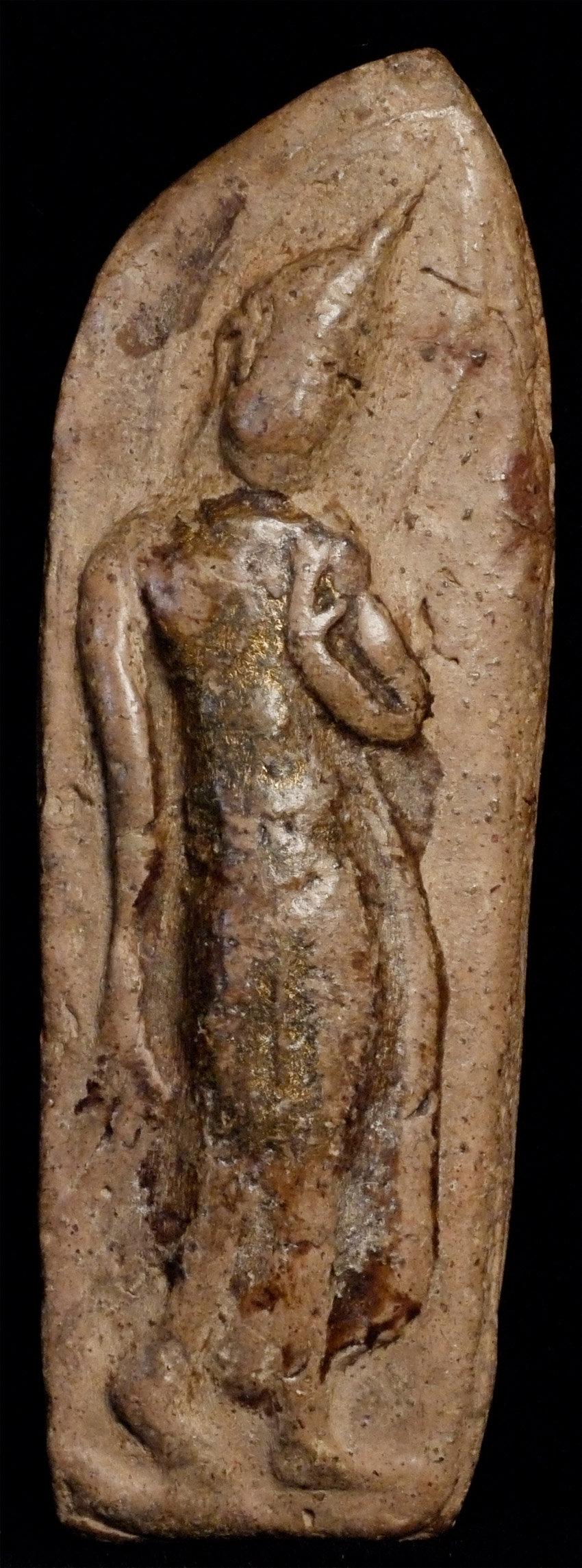 13/14thC Sukhothai Walking Buddha Amulet. Size is 3 3/8 inches tall. Condition as seen in photos. Powerful ritual object!