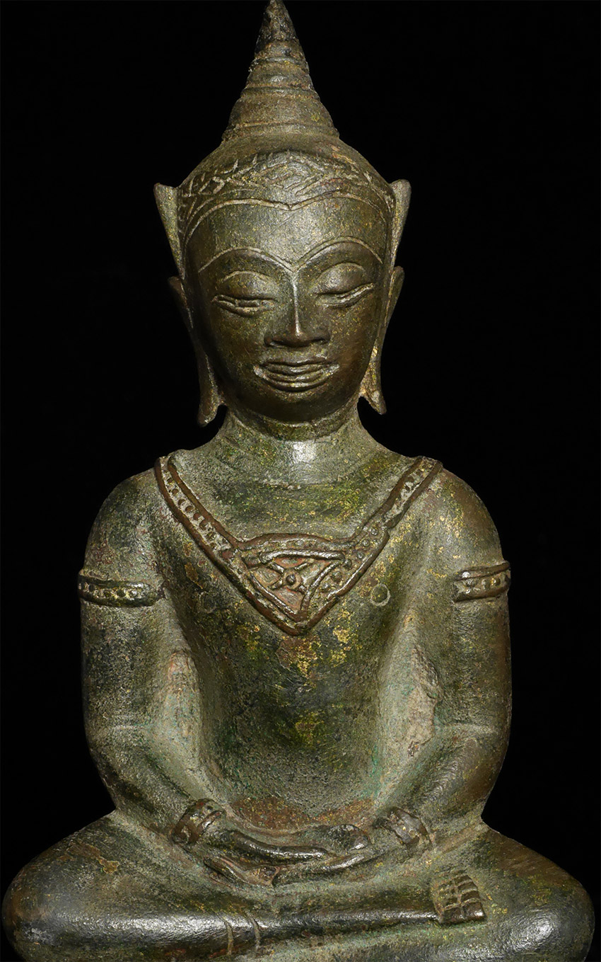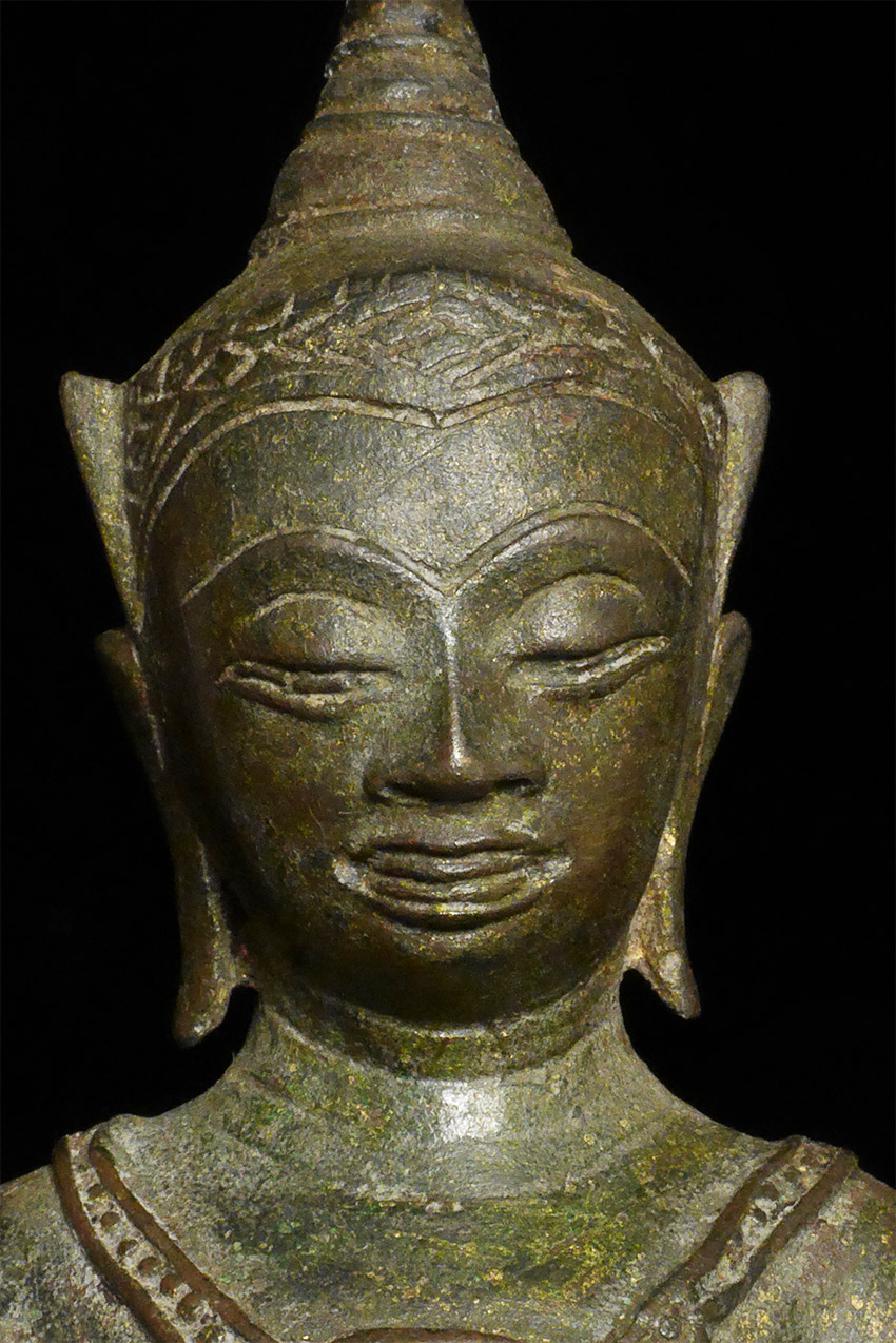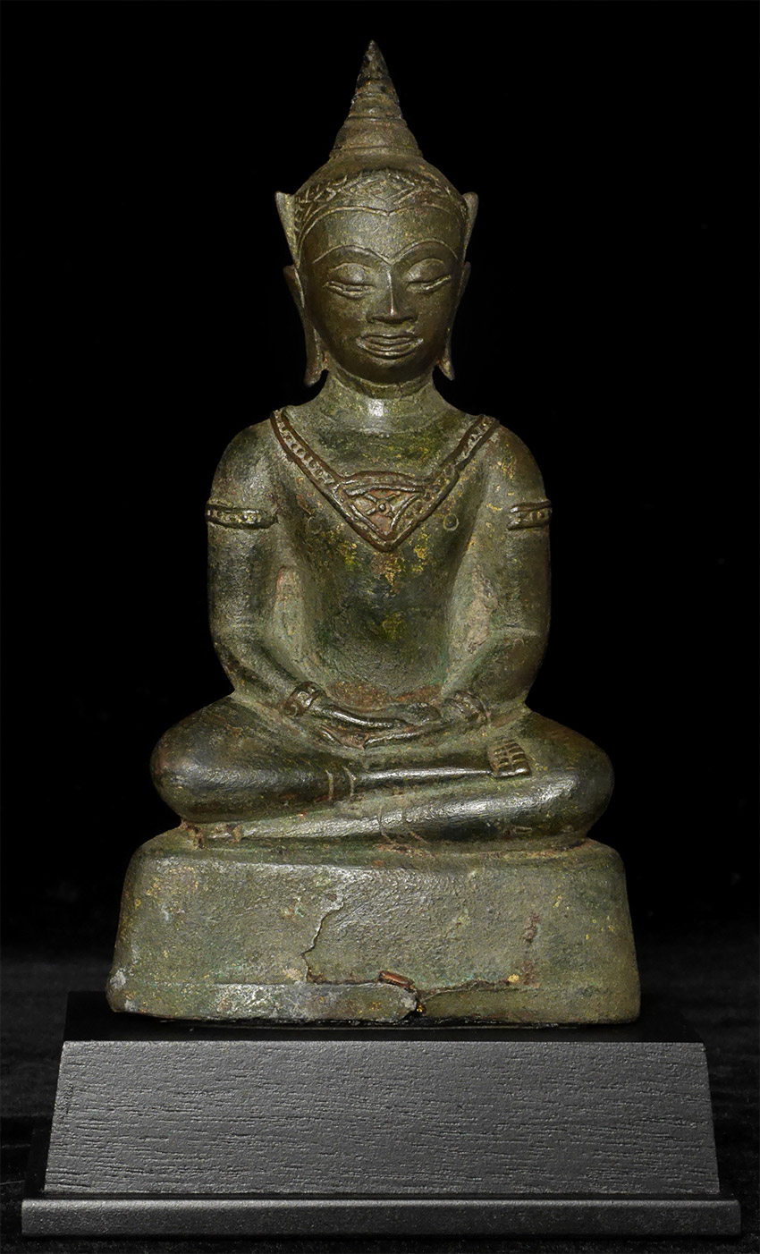 Classic 15/16thC Ayuthaya Buddha in Royal Attire. Beautiful face. Some casting flaws to the base. Sits 6.5 inches tall, 7.5 inches on its custom base. Domestic shipping is included, and international shipping is $50, including packing and insurance to anywhere in the world.