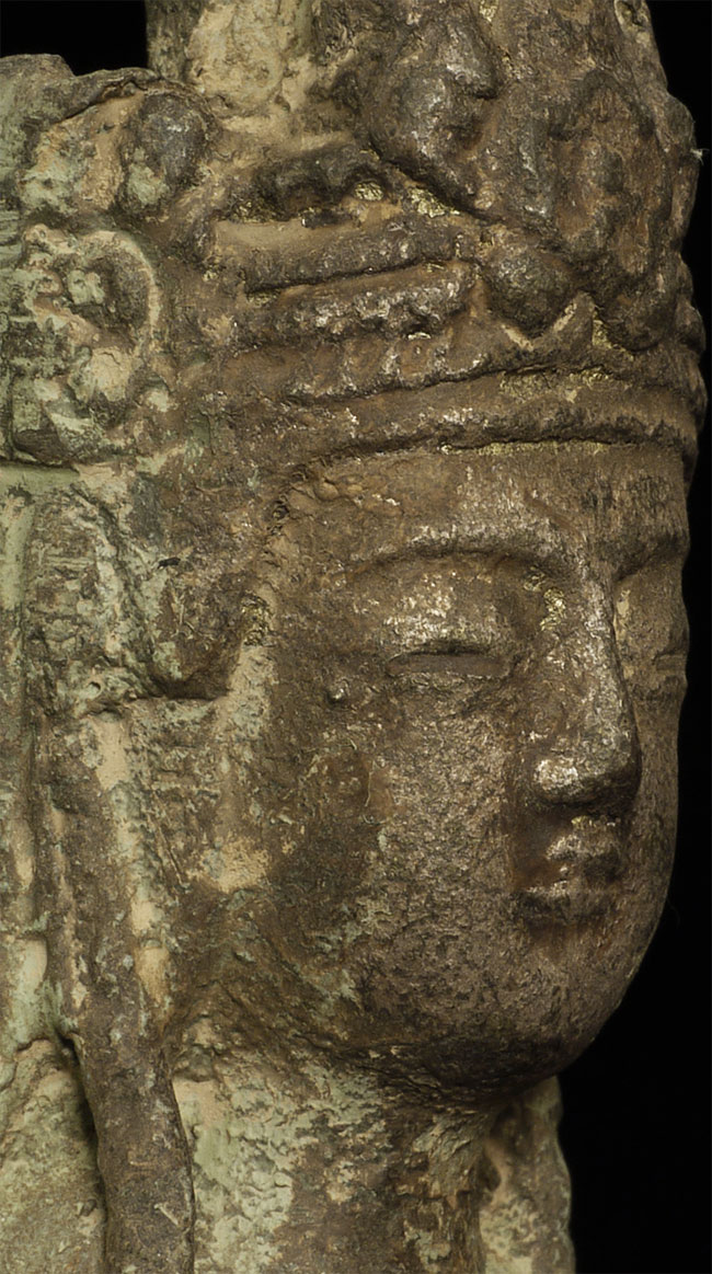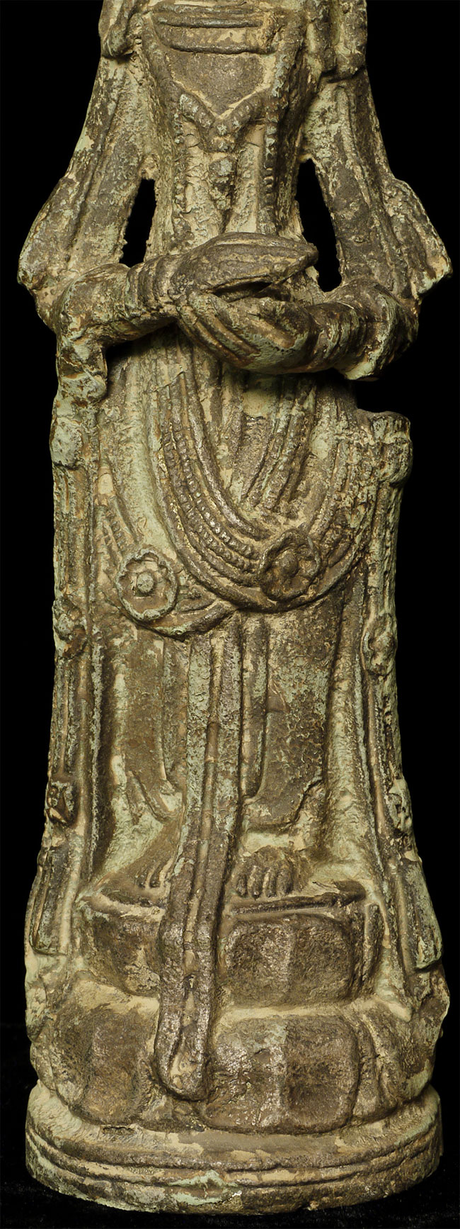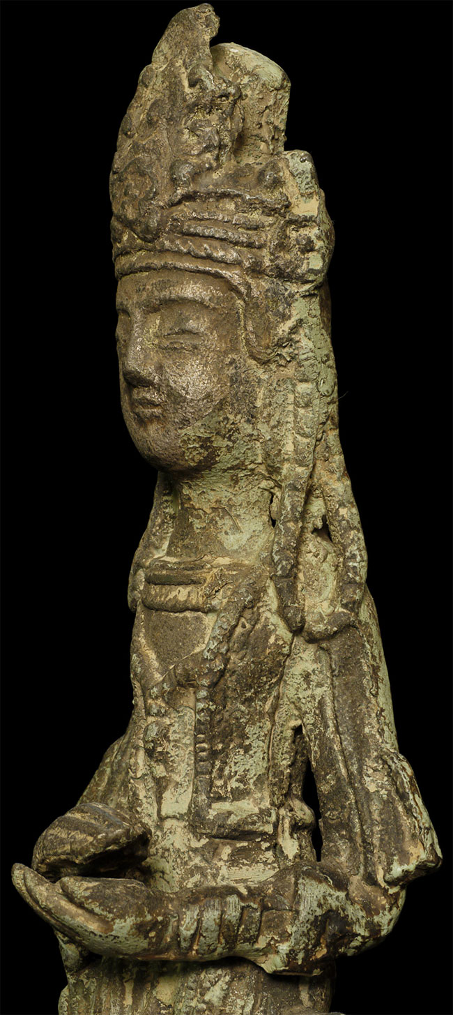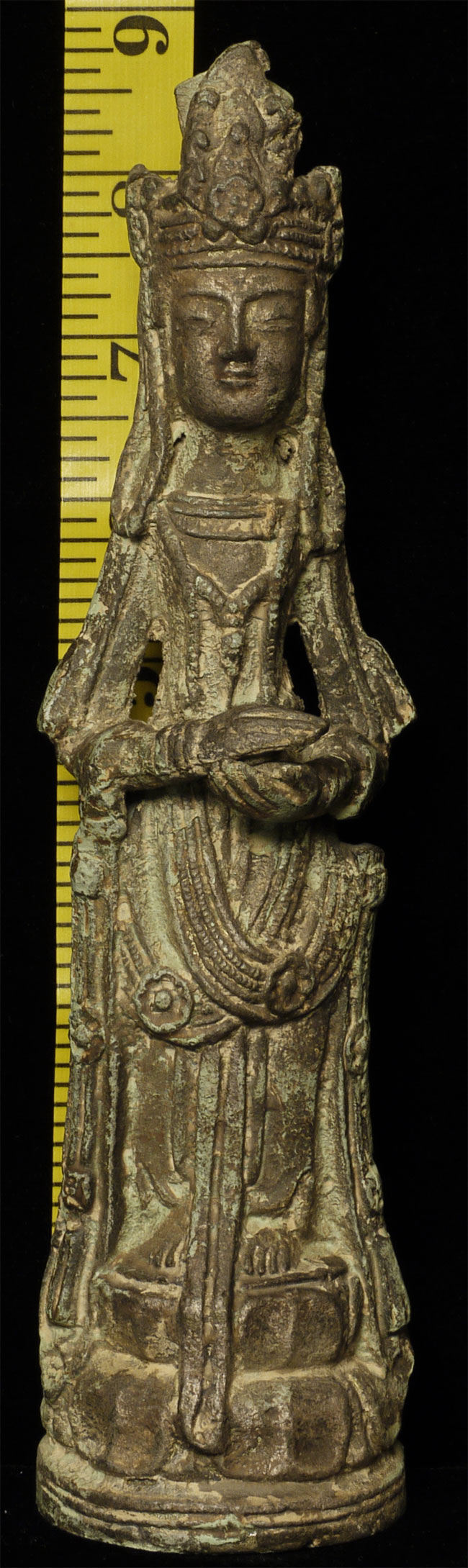 A Korean beauty- Bronze with traces of gilding. In a very early style (9-11thC?). Hard to date- at least 19thC or earlier. Collected in the 1950’s by previous owner. Has traces of lacquer. Stands 8 7/8 inches tall.