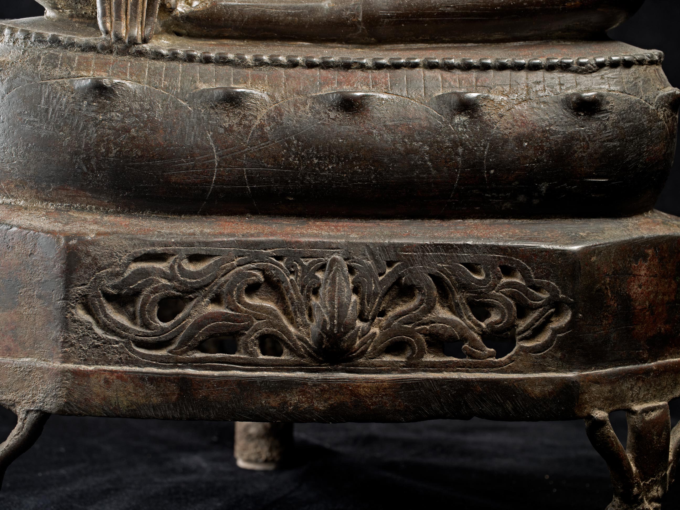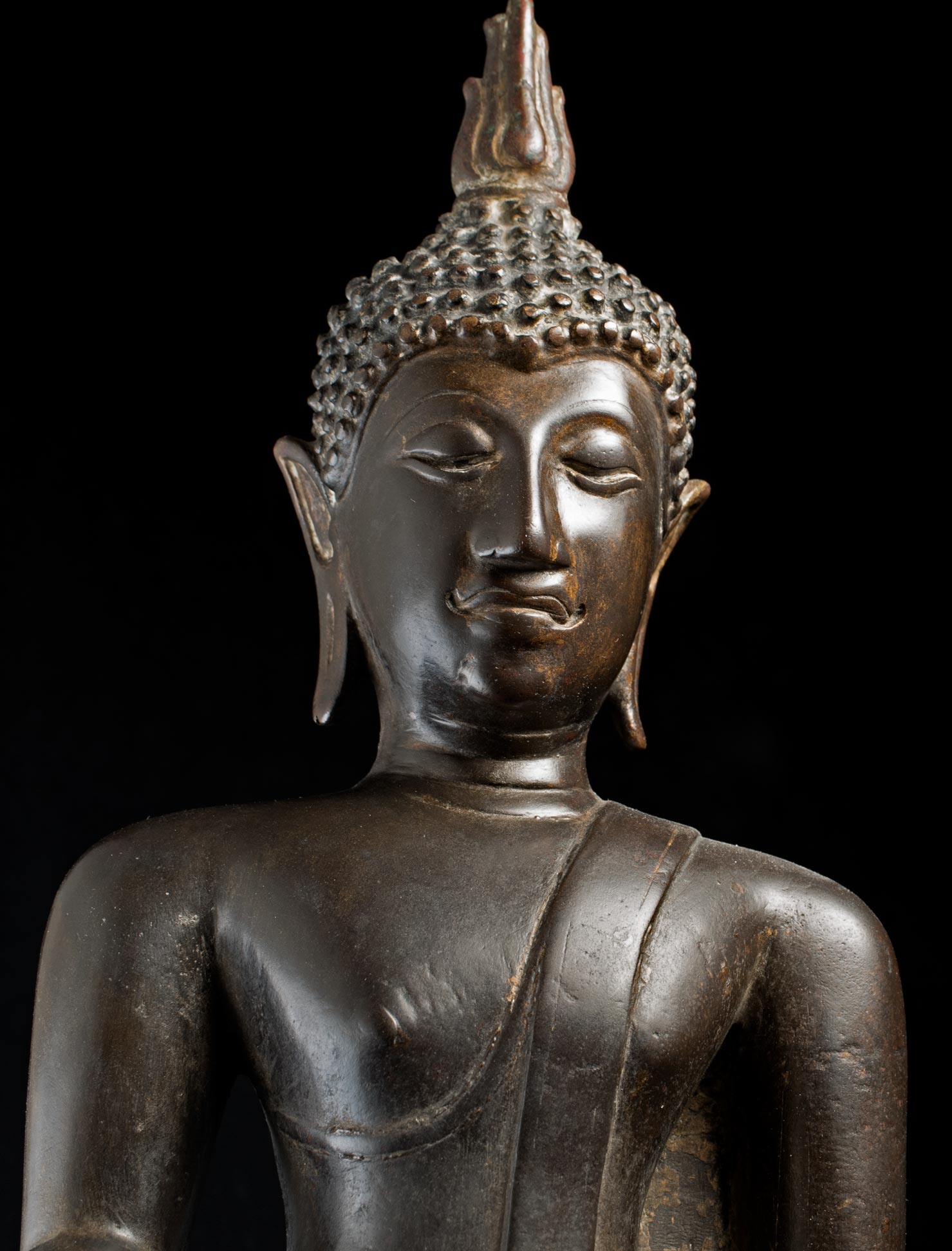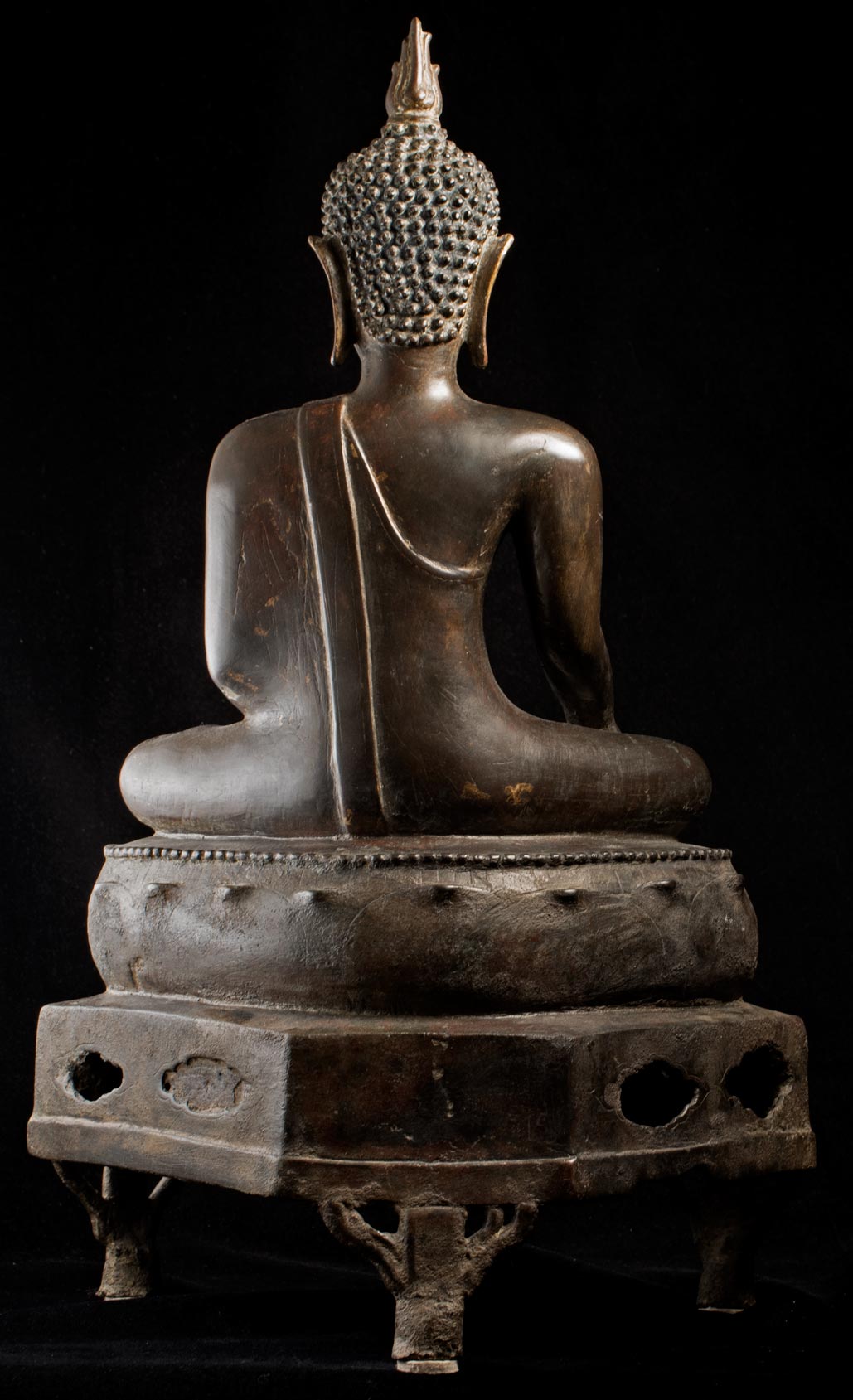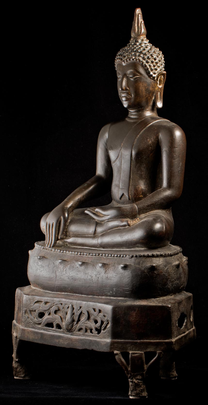 Superb large 16thC Northern Thai-Best of its type. Incredible face, splendid base. Chocolate brown patina. This Buddha almost glows in the dark. Best of Northern Thai Buddhist sculpture in a big size, from the best period. Measures 17 inches tall x 11 inches across x 6 inches deep.
