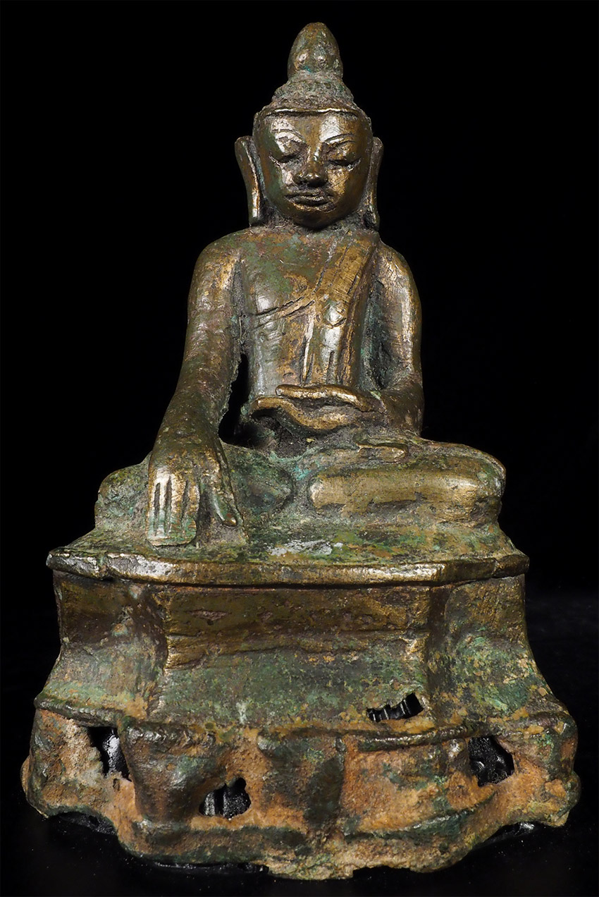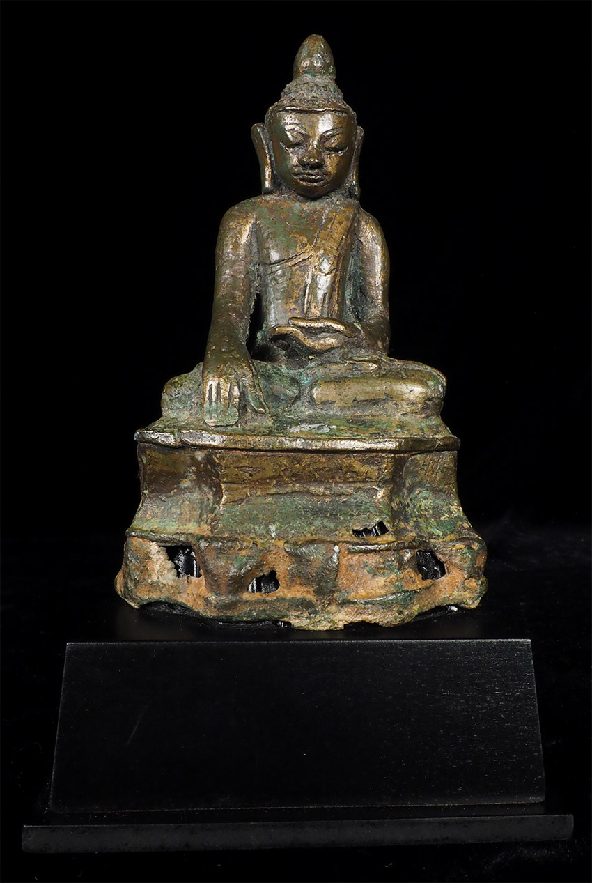 14/15thC Mon Burmese Buddha. Sits 6.25 inches tall, a bit over 8 inches on new custom base. Looks to have been long buried. Rare type.