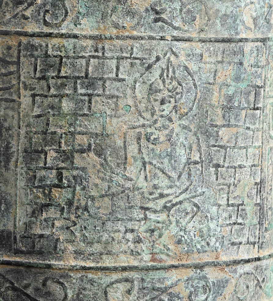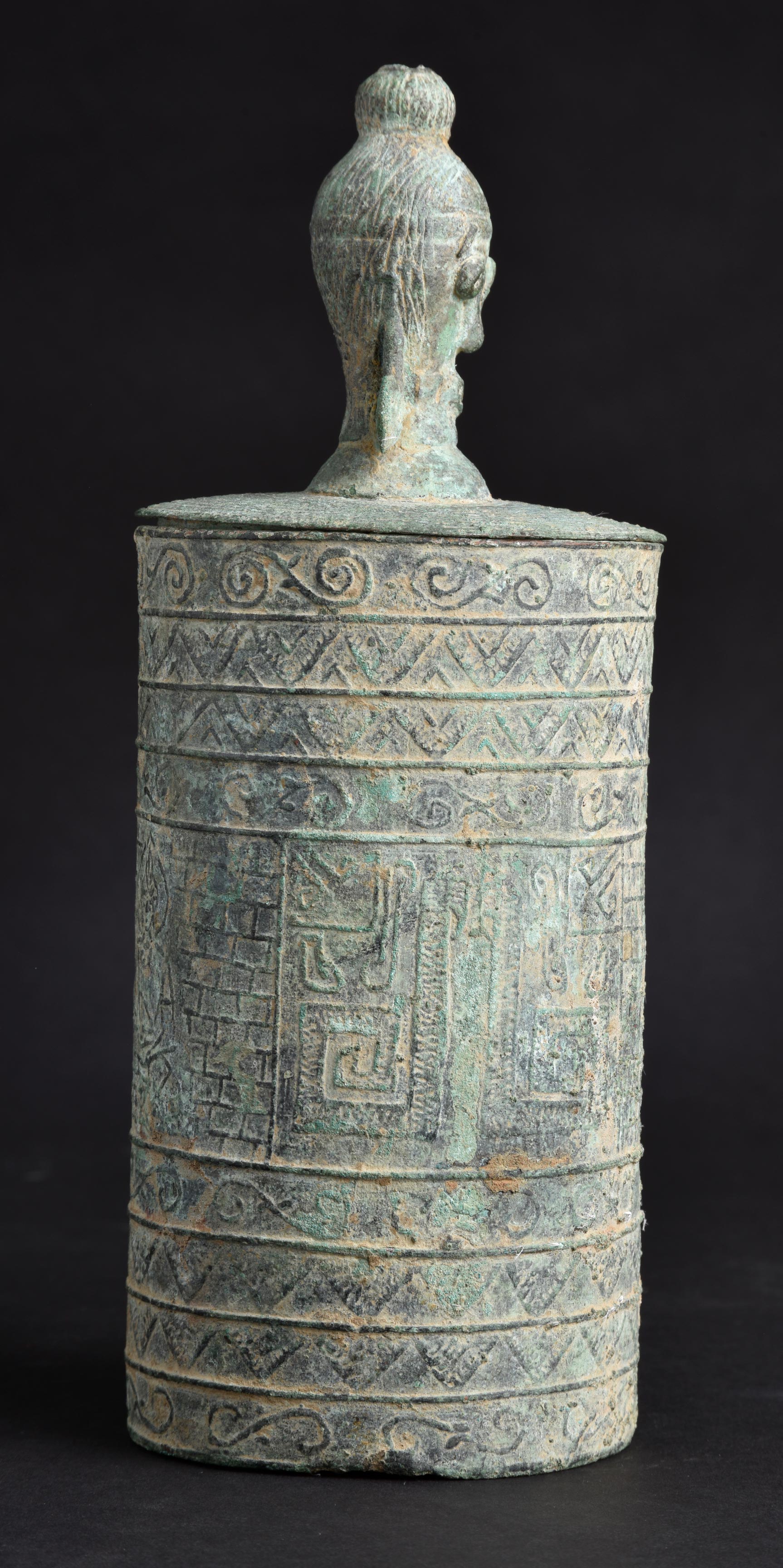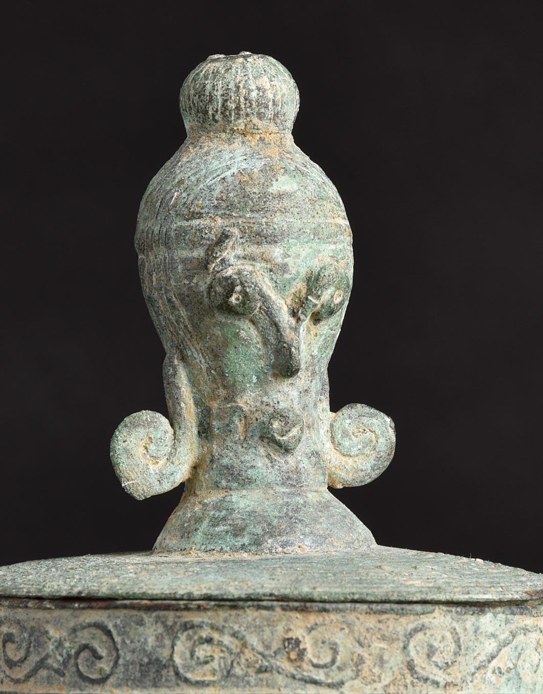 Dong Son Culture, which is one of, if not the earliest S.E. Asian bronze using culture. It is a Lime Container-Museum level in both condition and quality. Probably between 1500 and 2000 years old. OF the earliest bronze-using cultures of SE Asia, and likely the 1st Buddhist one. Measures 9 1/2 inches tall x 3 1/2 inches across x 3 1/2 inches deep. The best example I have ever seen of one of these (it is a typical form of this culture) Rare object..