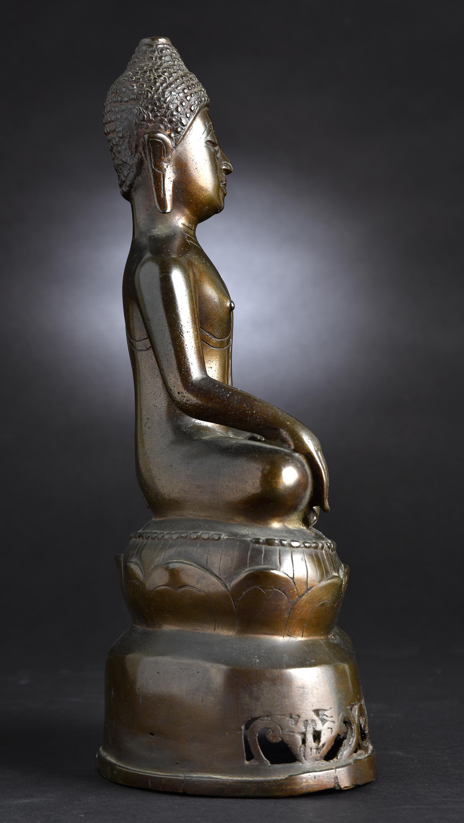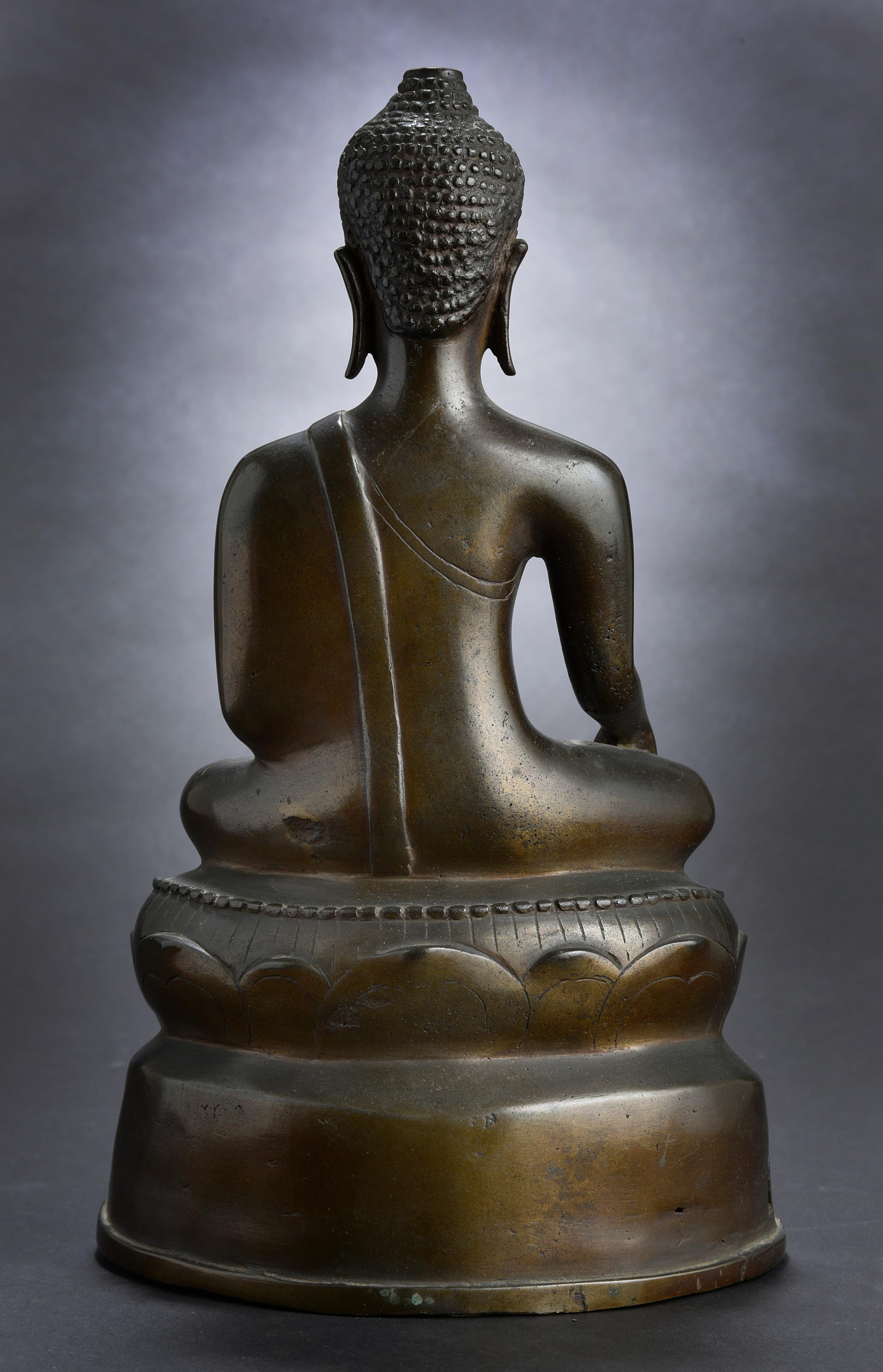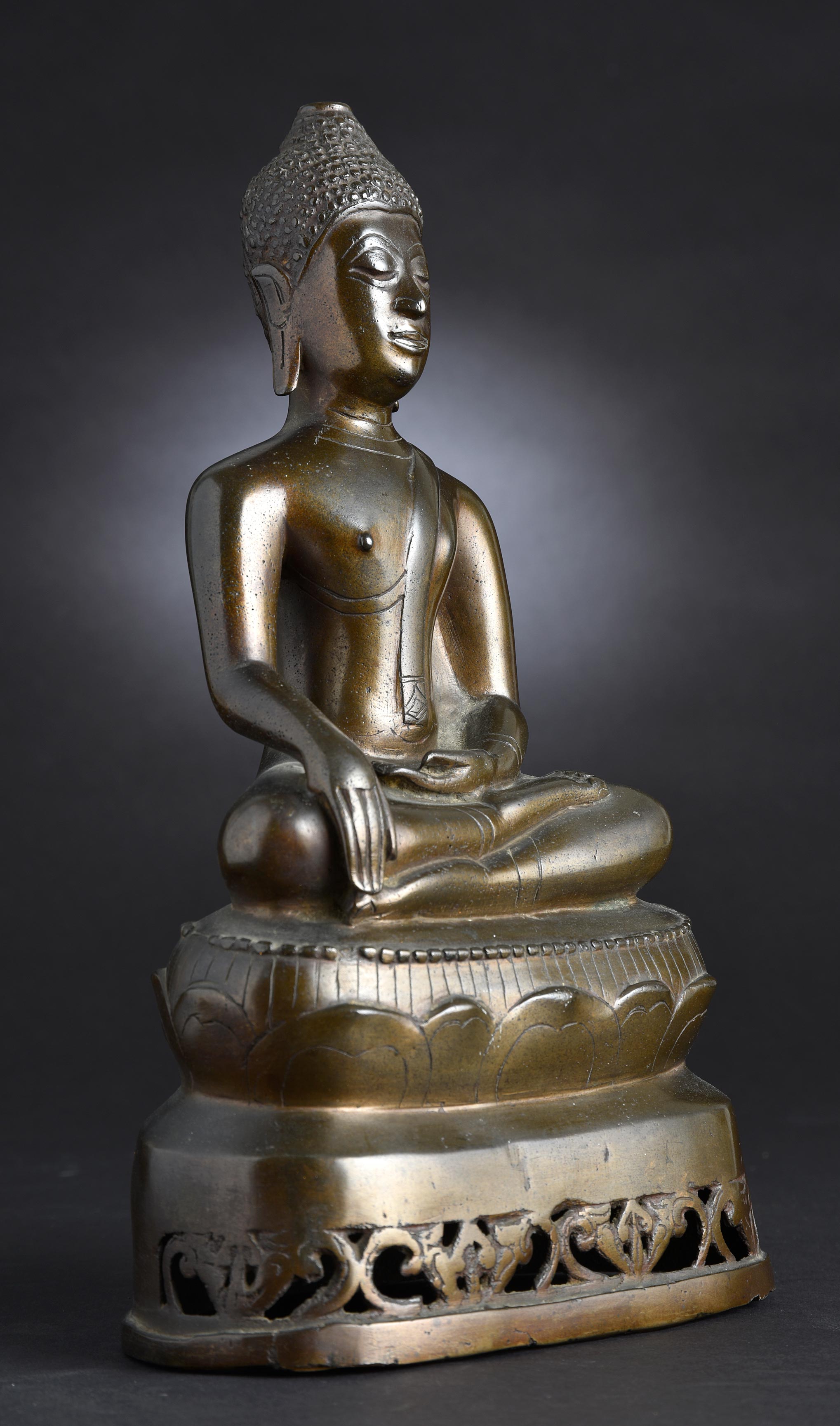 Exquisite and quite rare 15th16thC Northern Thai and Cambodian combination , Thai features include the casting/sculpting and the overall feel and style of the piece. . The Cambodian features include: The distinctive "Bat Wing" symbols on the base. the distinctive head shape and hairline seen on post Khmer bronze sculpture. . 11 1/2 inches tall x 6 1/2 across x 3 1/2 deep. Finely cast of a high quality alloy. Special.