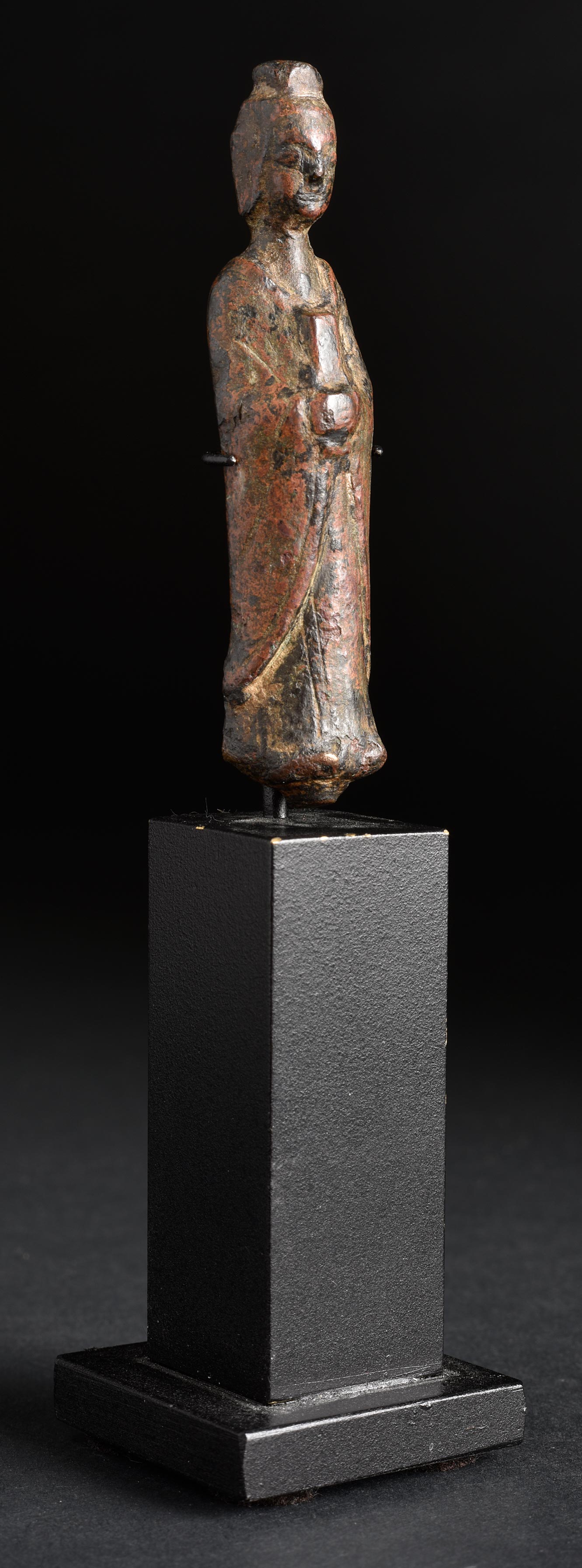 Very rare 5/6thC Pre-Tang Chinese Bronze Buddha. Stands 2.5 inches tall bronze only, over 5 inches on its custom base. Capable of standing perfectly straight on base with slight adjustment. Face could look even better id lacquer was smoothed out- I chose to leave as found.