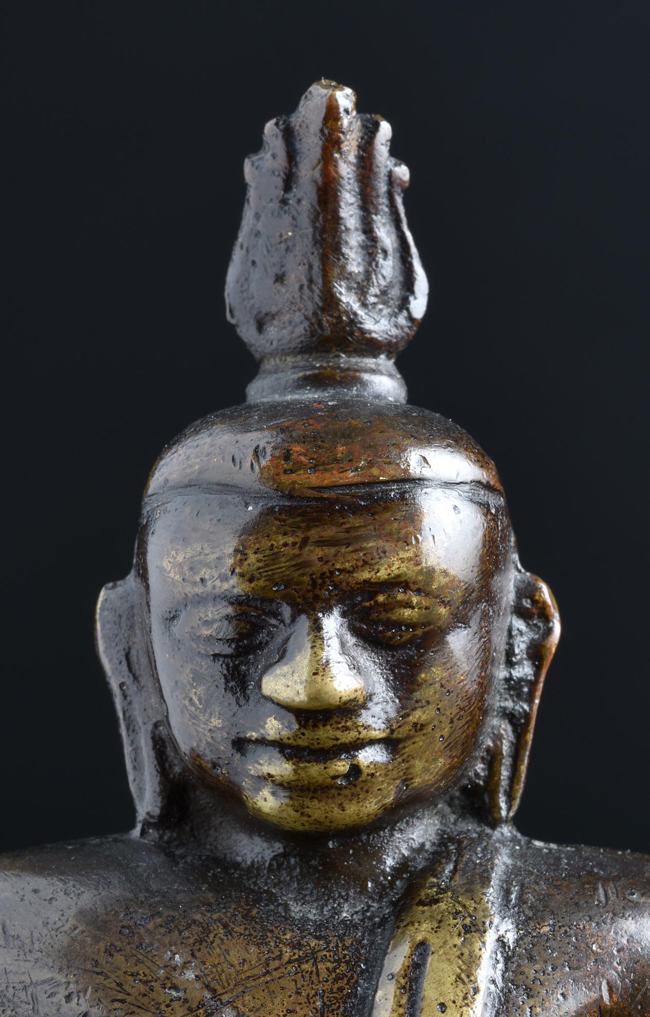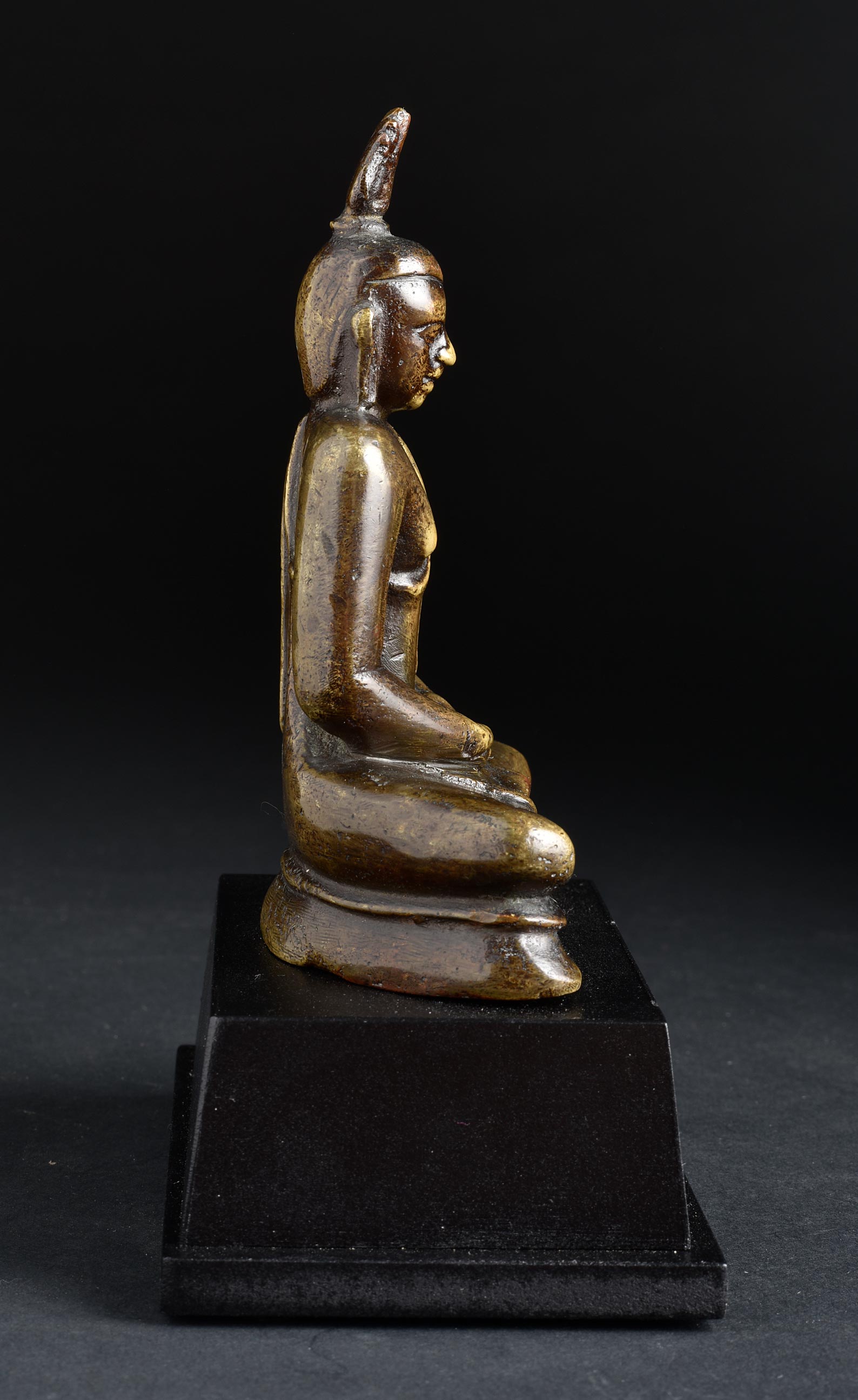 Rare Sri Lankan Buddha- Pre-Kandy- Warring States Period- 14-16th Century. This piece measures 4 inches tall and 5 3/8 inches tall on its custom base.