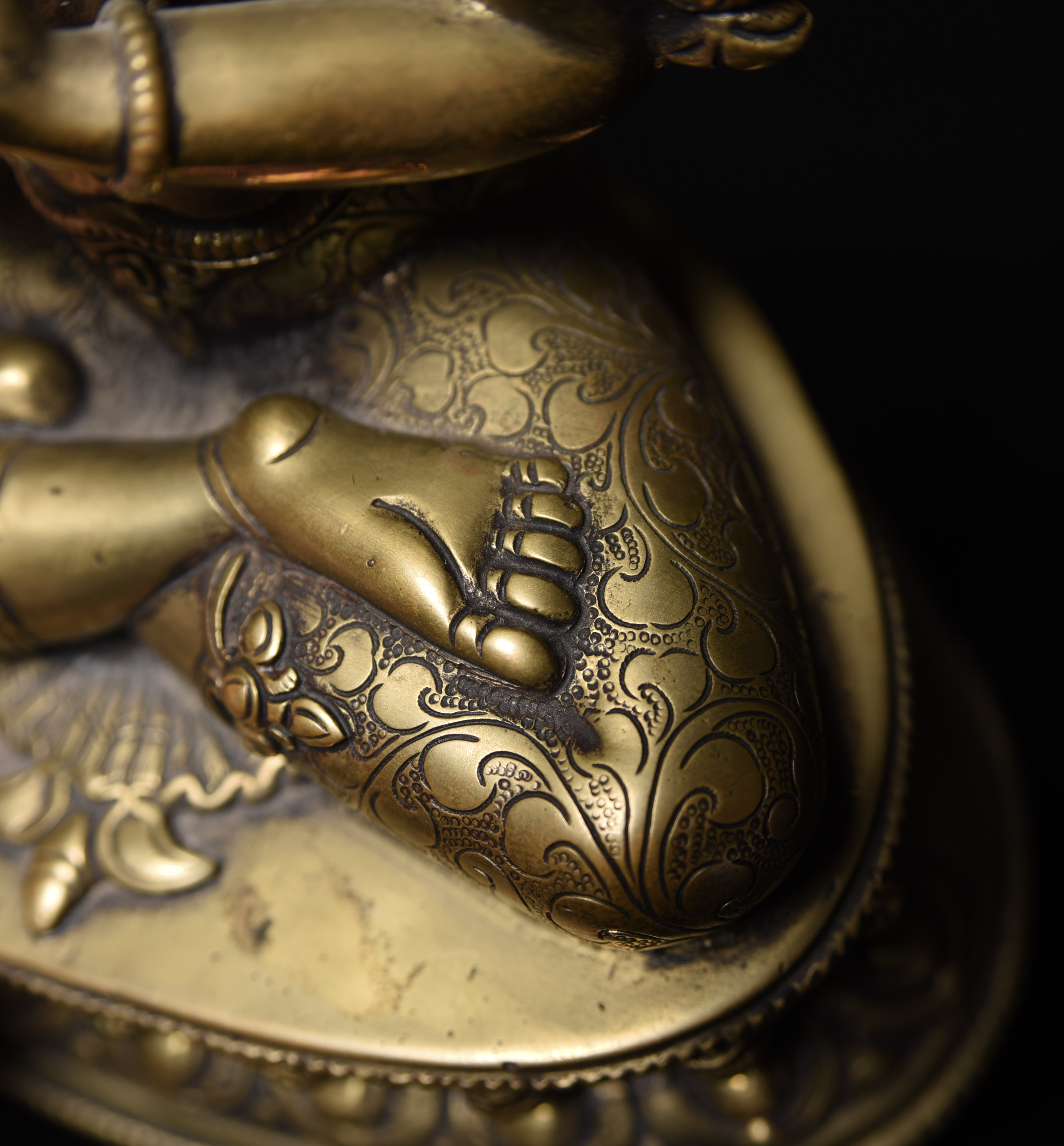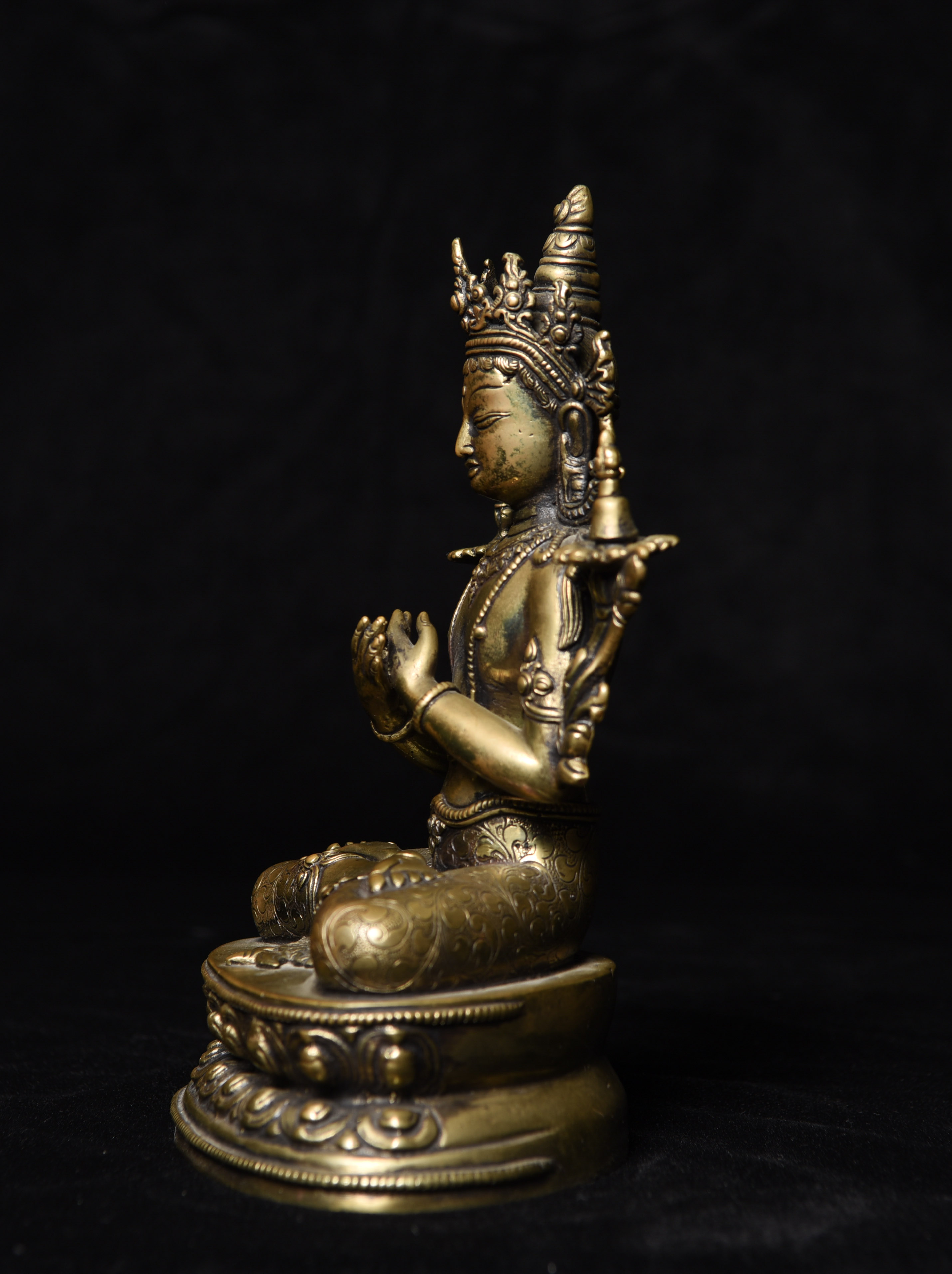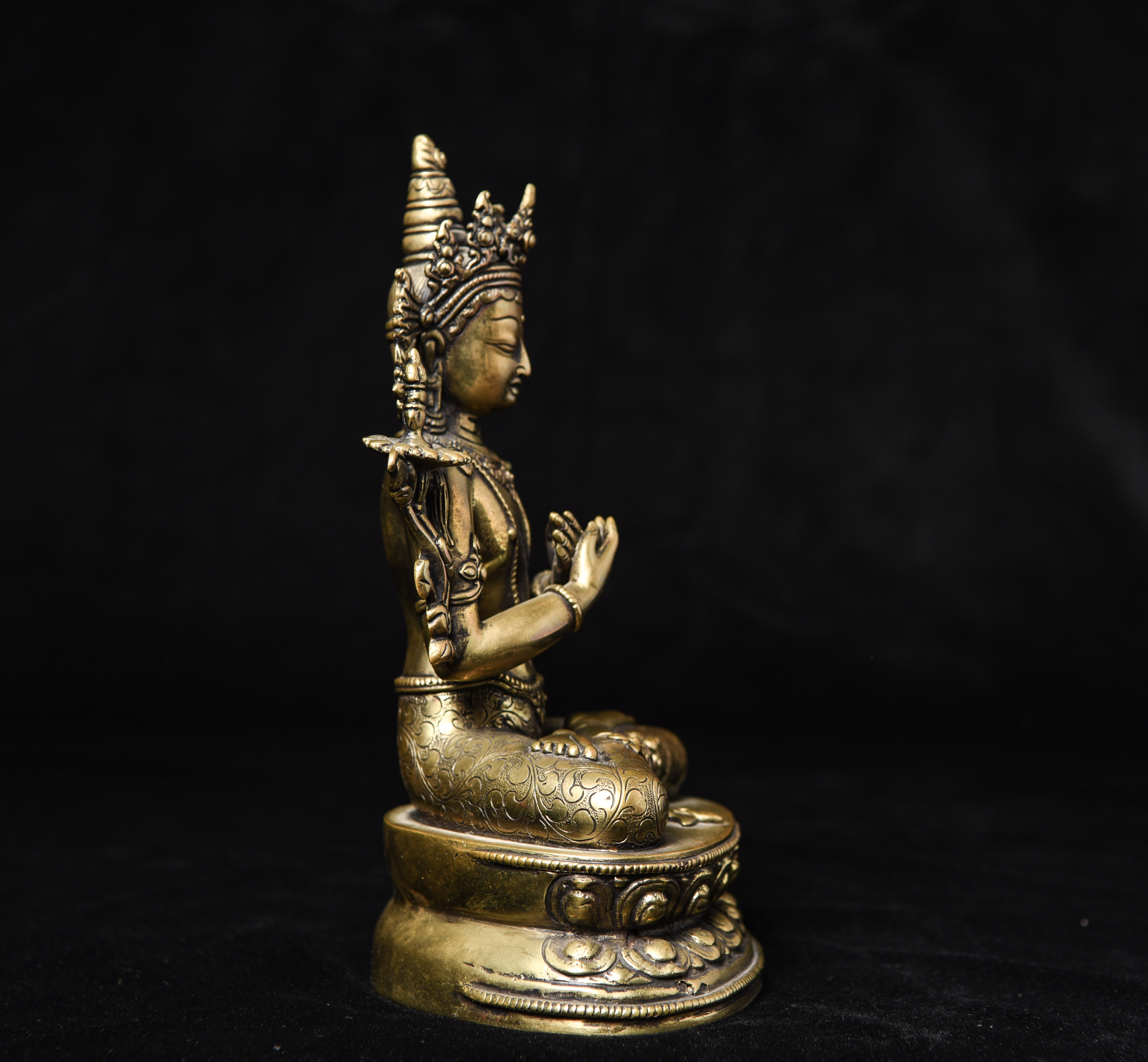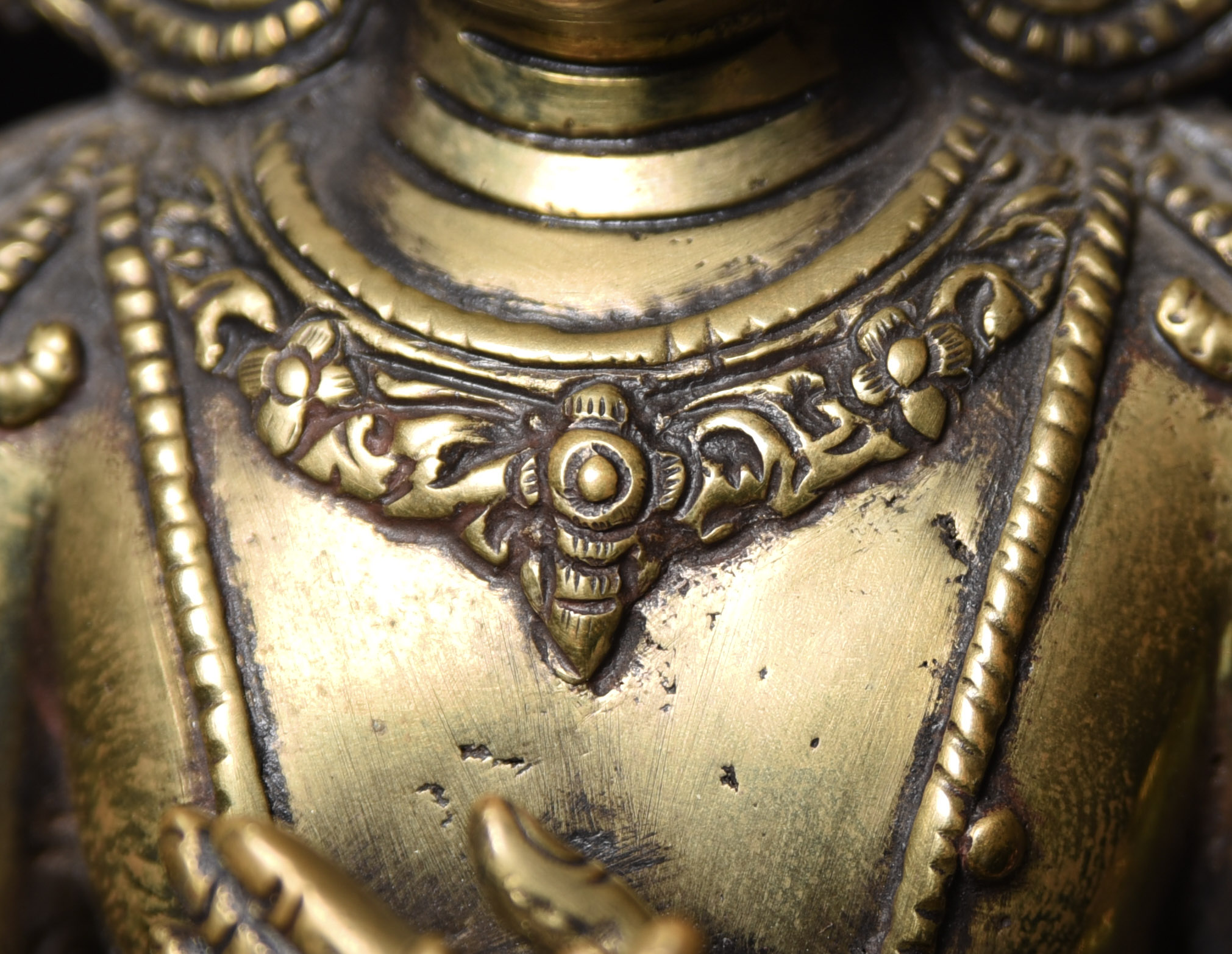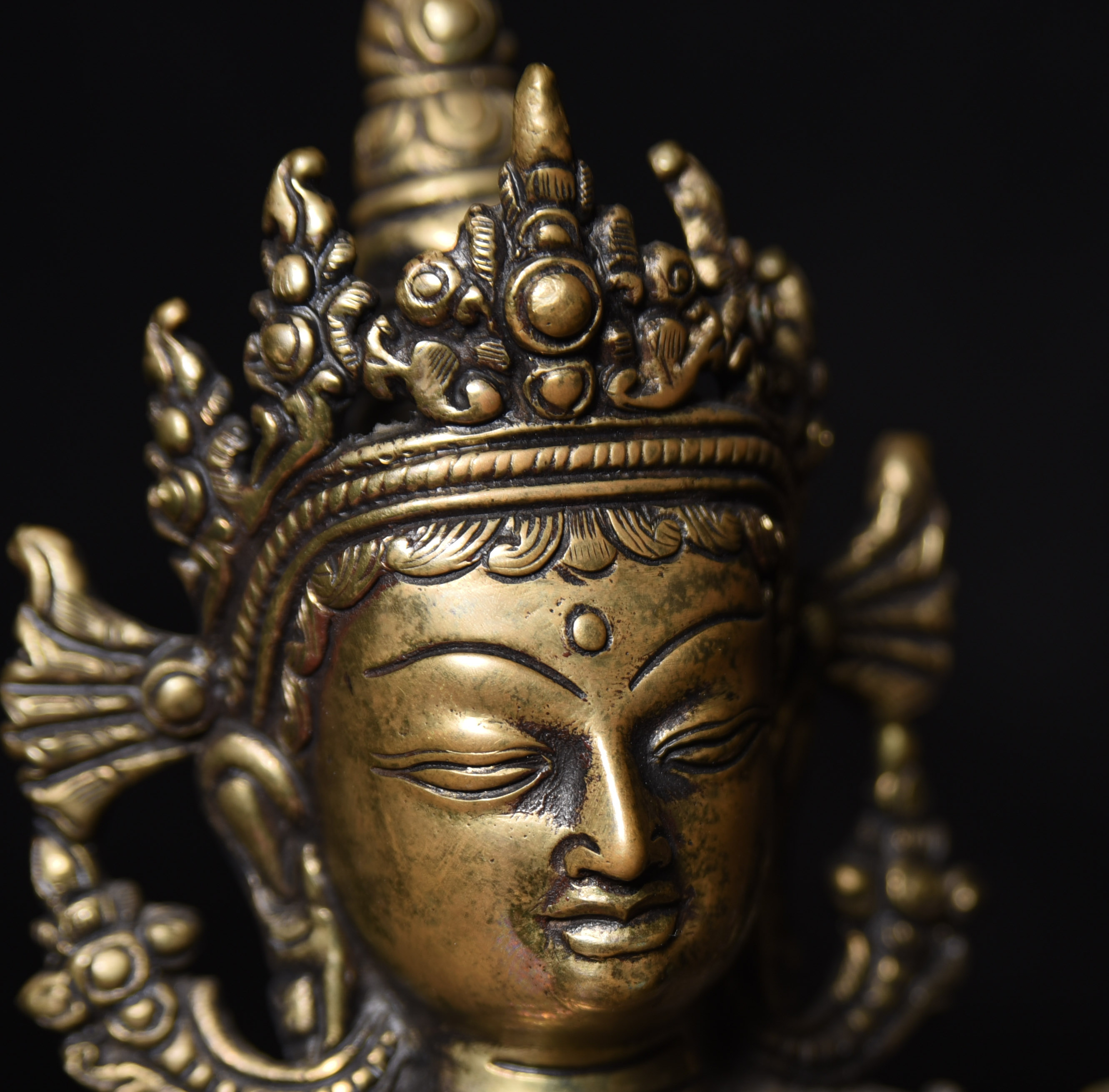 Fine 18-19 century Nepalese or Tibetan Bodhisattva passed Newari (Nepalese) craftsman, likely in Tibet. An excellent example of its type. 7.75"H x 5"W x 3.5"D