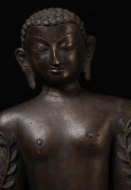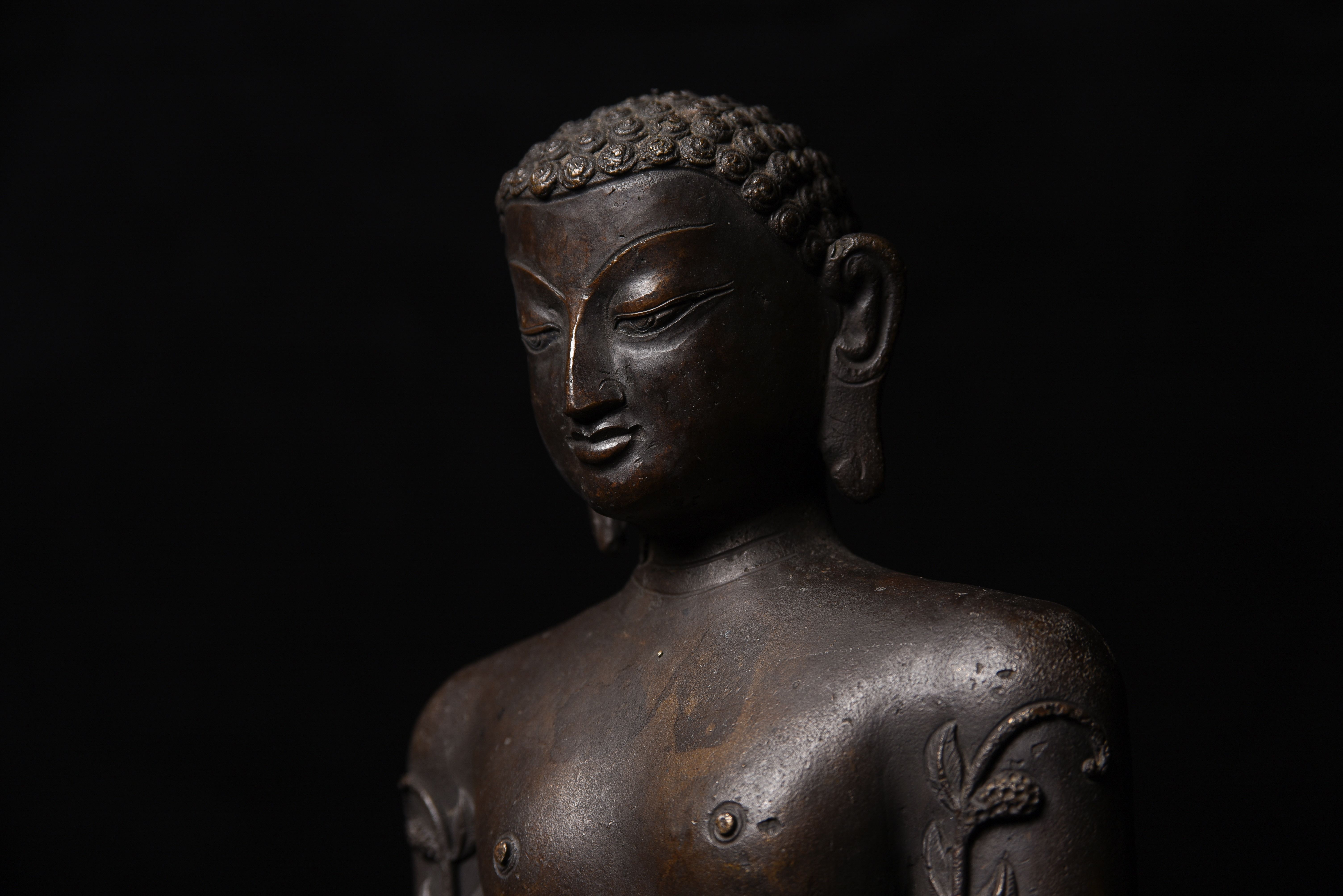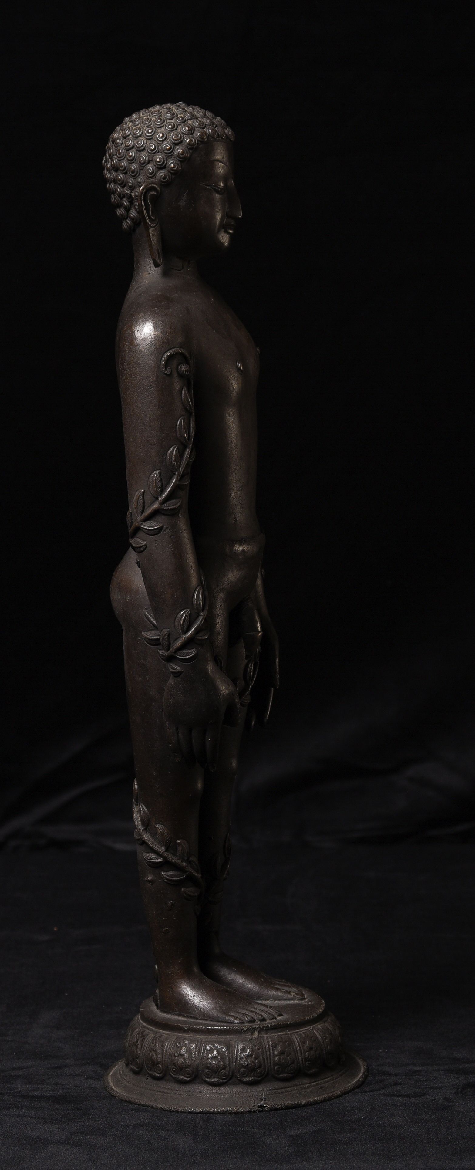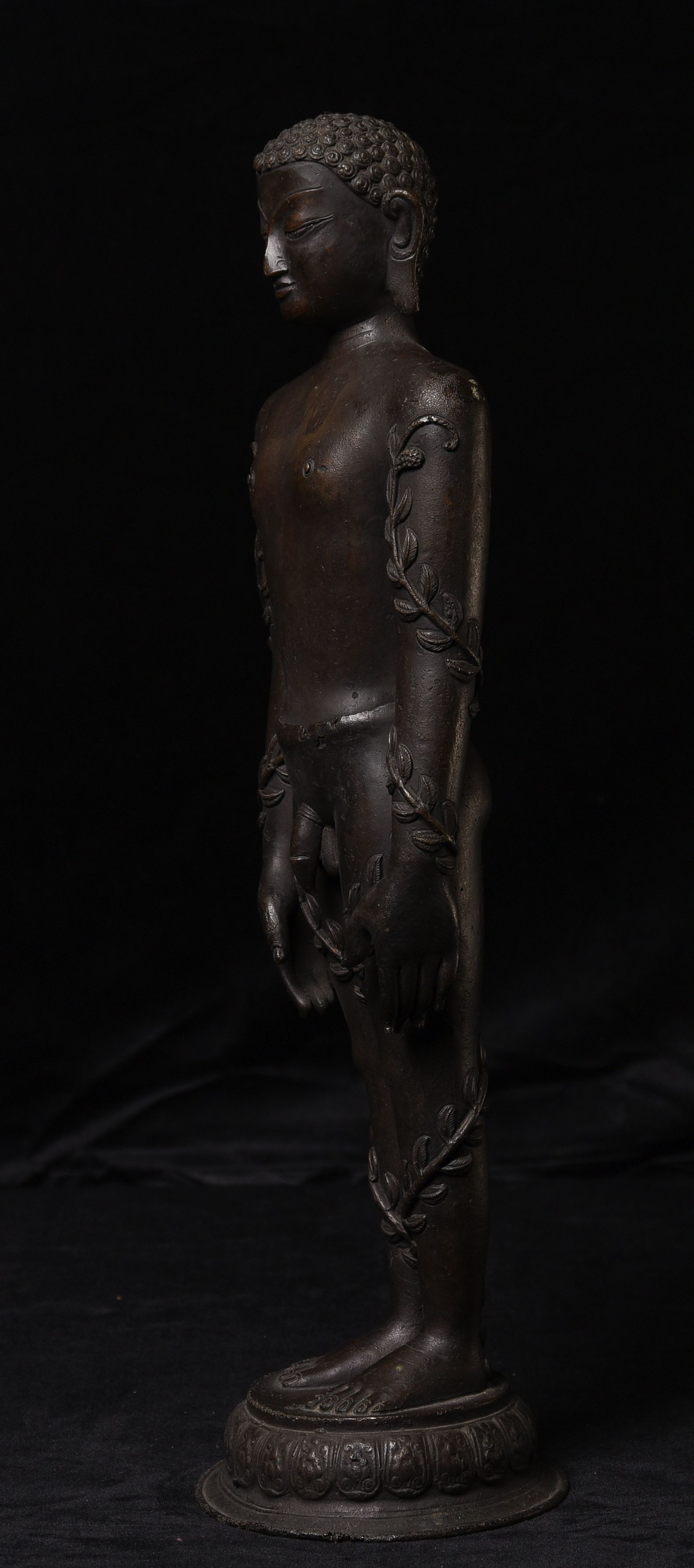 Large Nepalese bronze Jain figure. I had thought it was 18/19th- just saw a very close example in a good German Auction house dated Circa 1600 to 1700 ad. Rare to find in this very large size. The new custom museum-style base makes the figure stand straight.