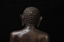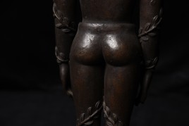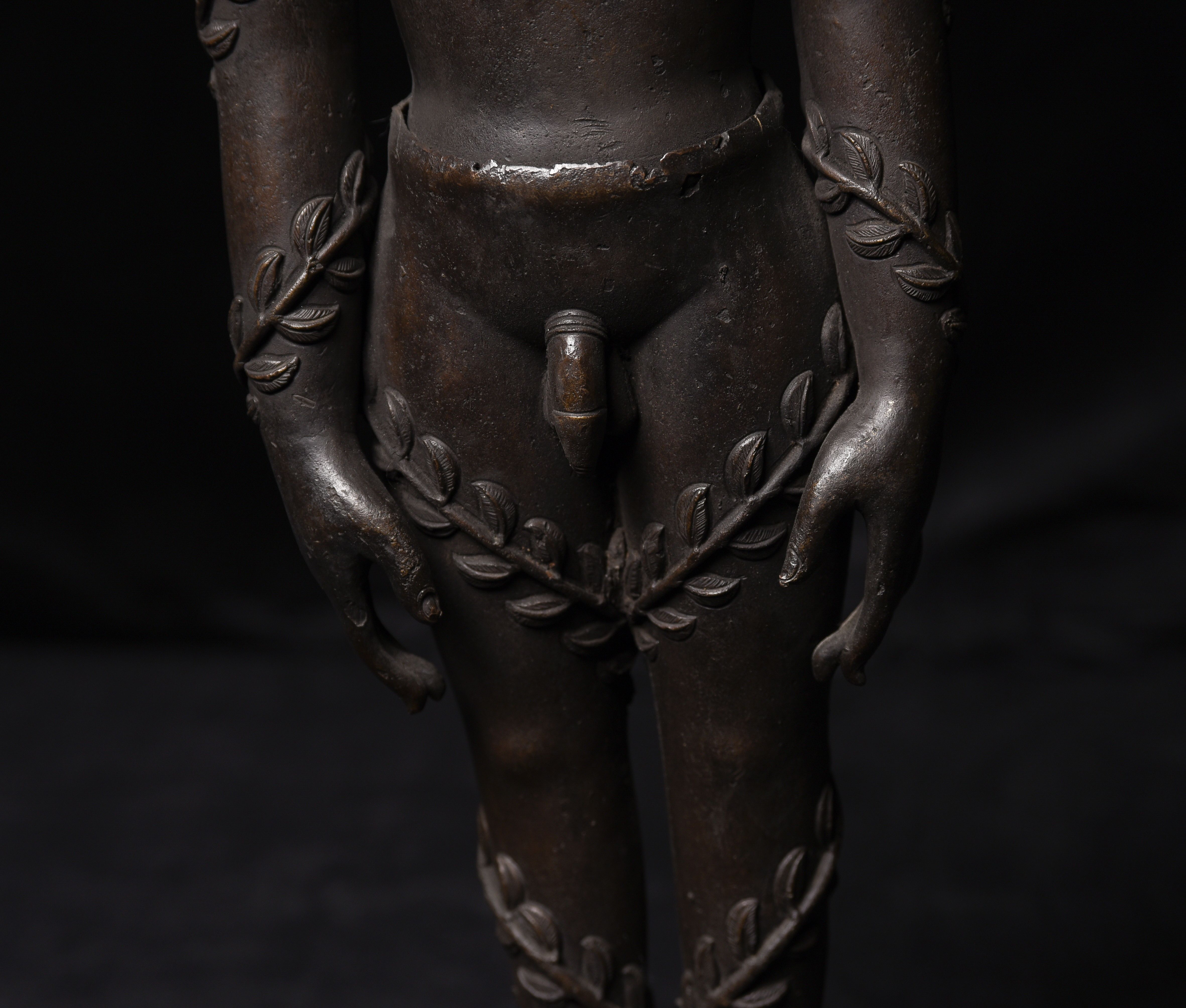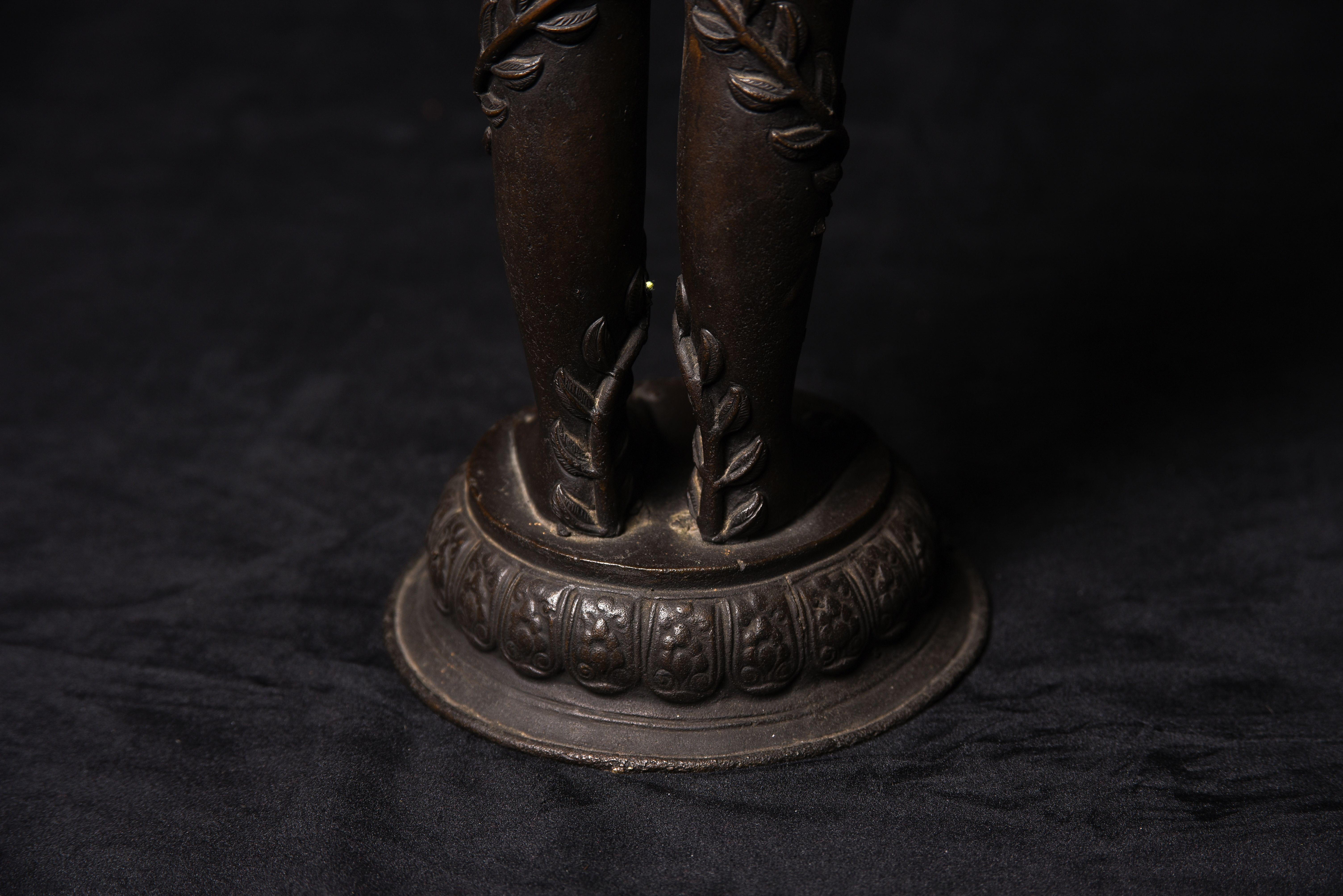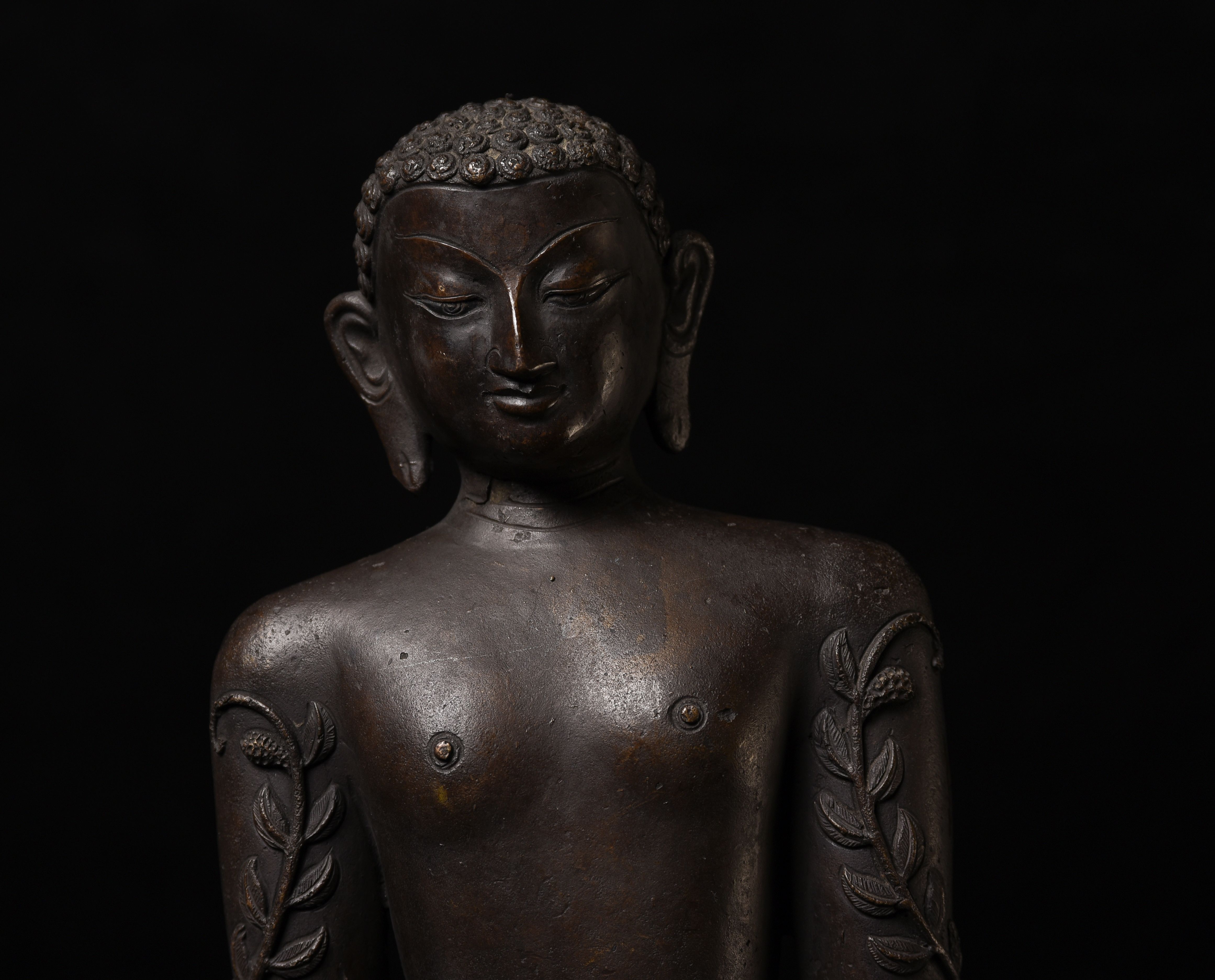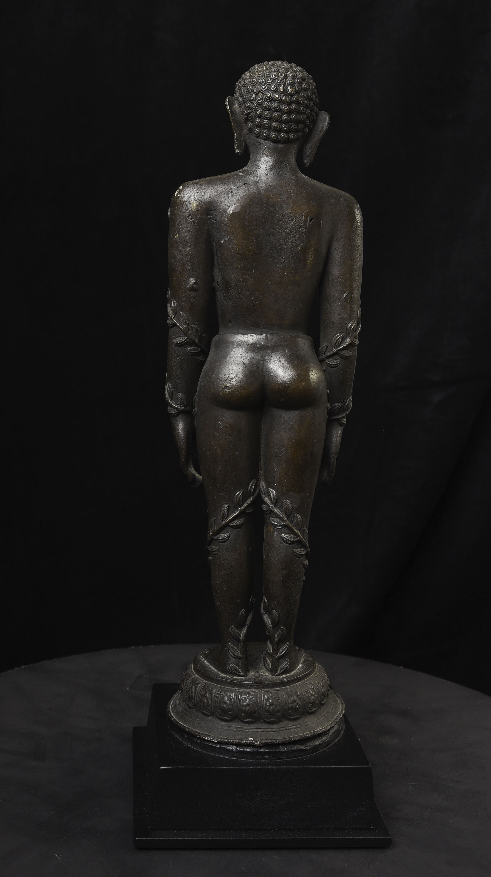 Large Nepalese bronze Jain figure. I had thought it was 18/19th- just saw a very close example in a good German Auction house dated Circa 1600 to 1700 ad. Rare to find in this very large size. The new custom museum-style base makes the figure stand straight.