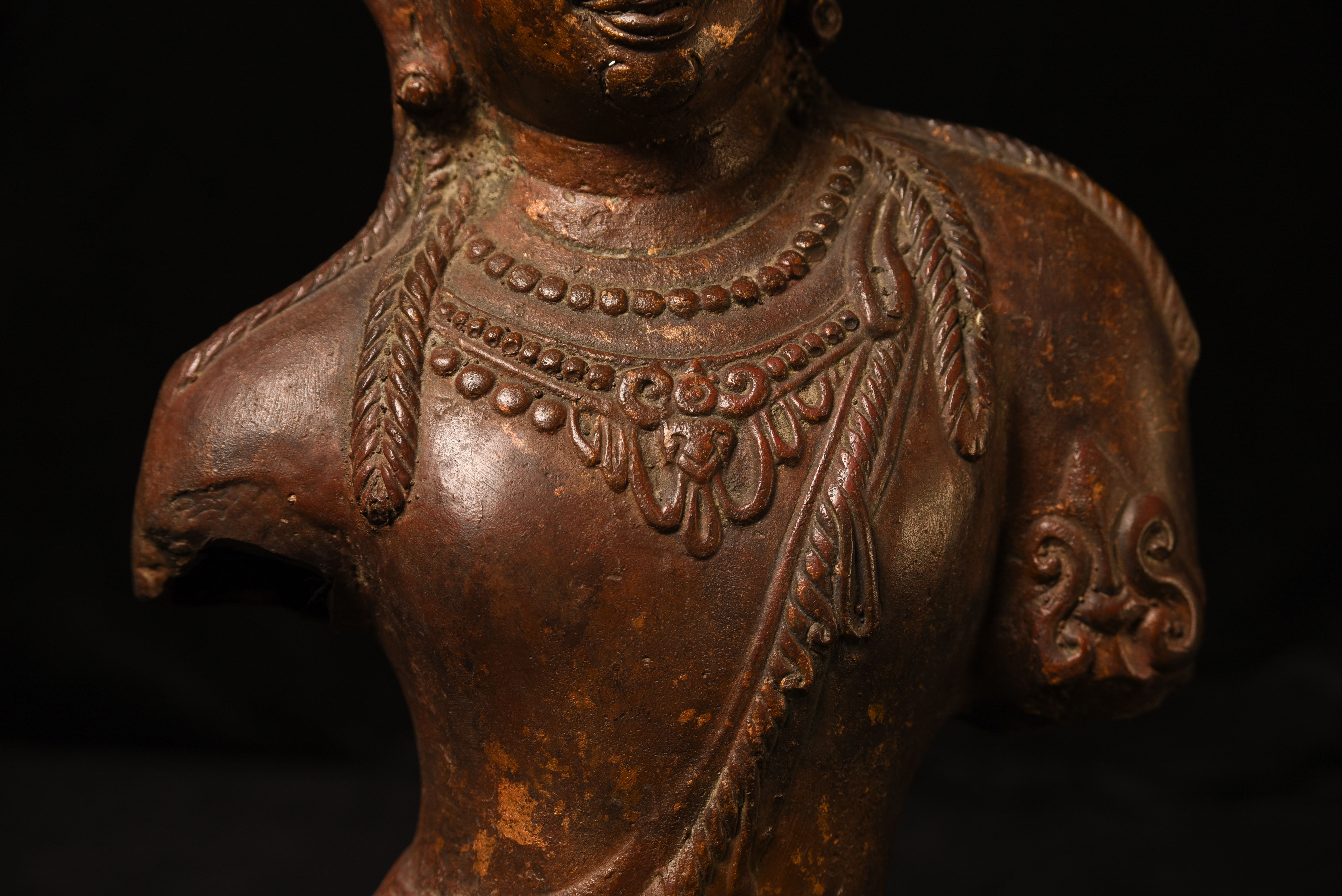 Large Nepalese bronze figure. Previous owner purchased from a respected German auction house as being over 700 years old (for a considerable amount of money).While it is lovely, I is actually a 20thC emulation.
