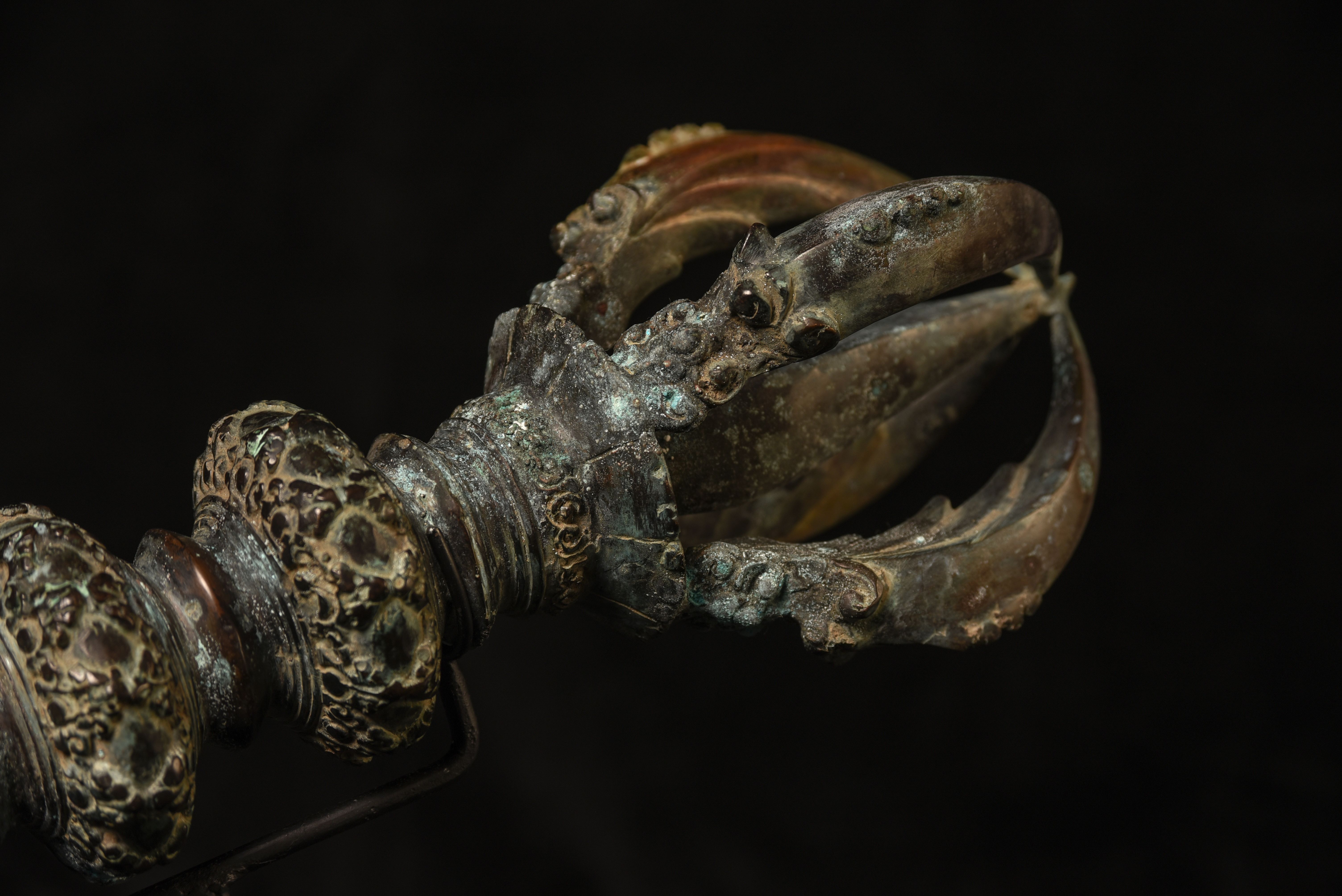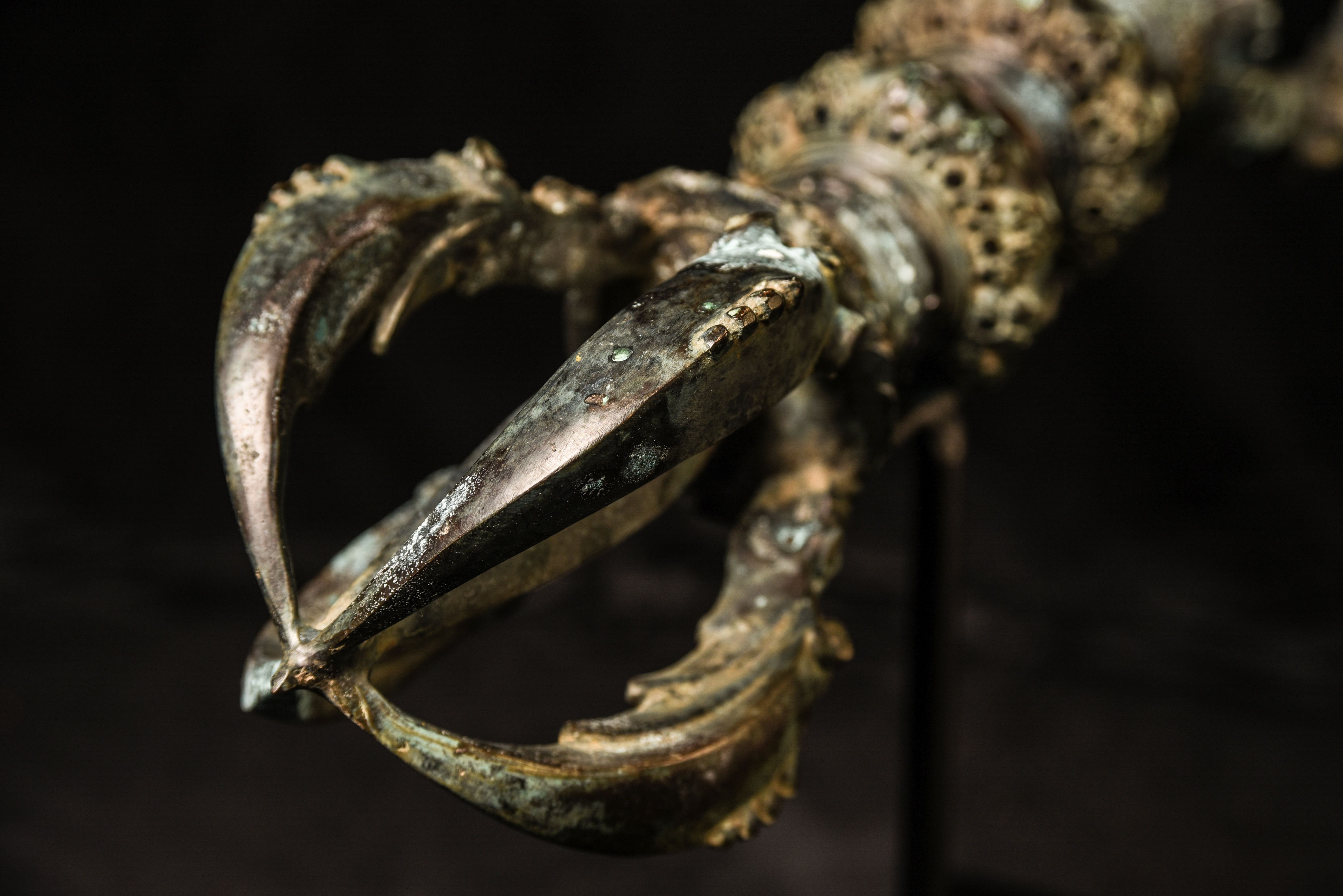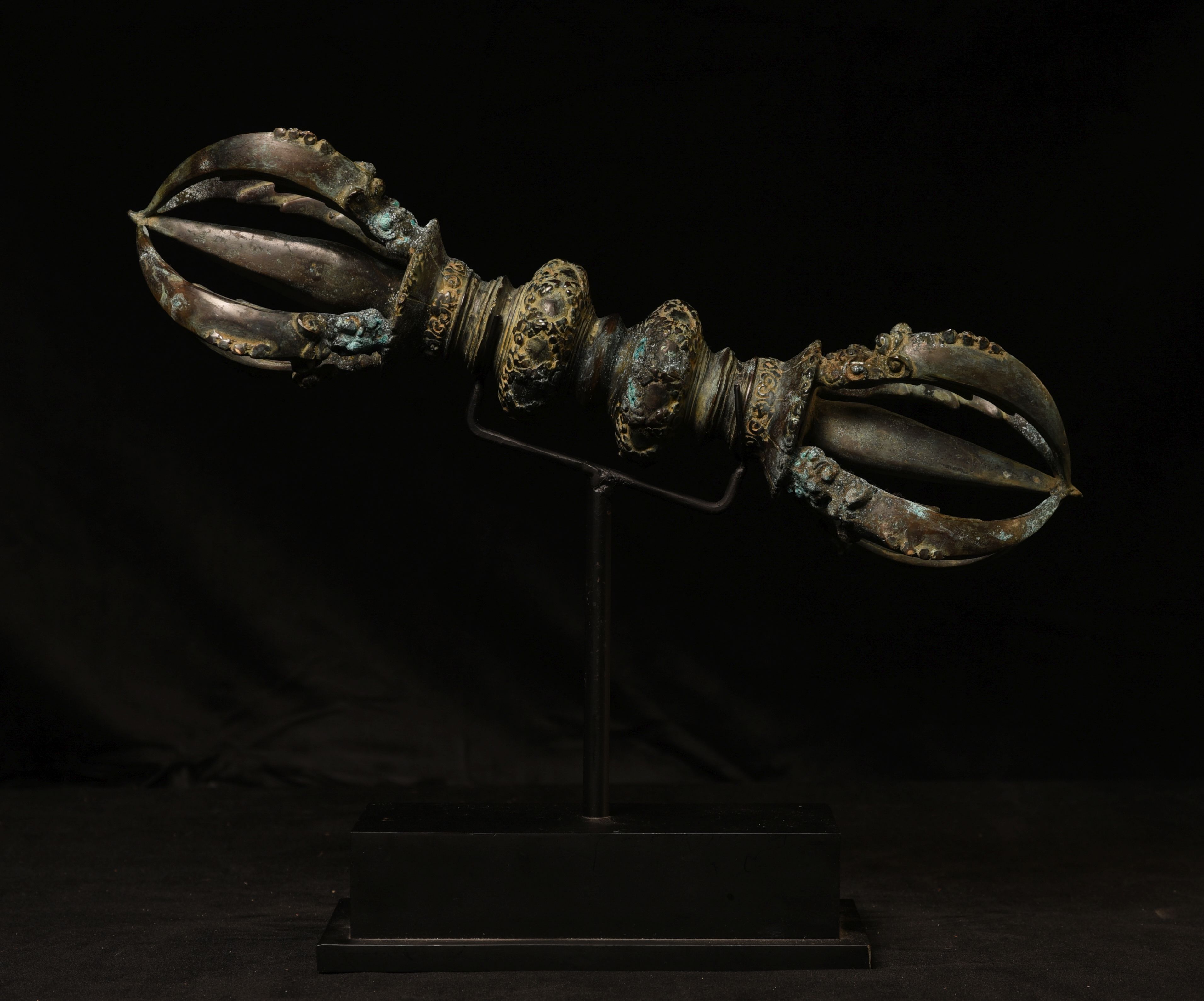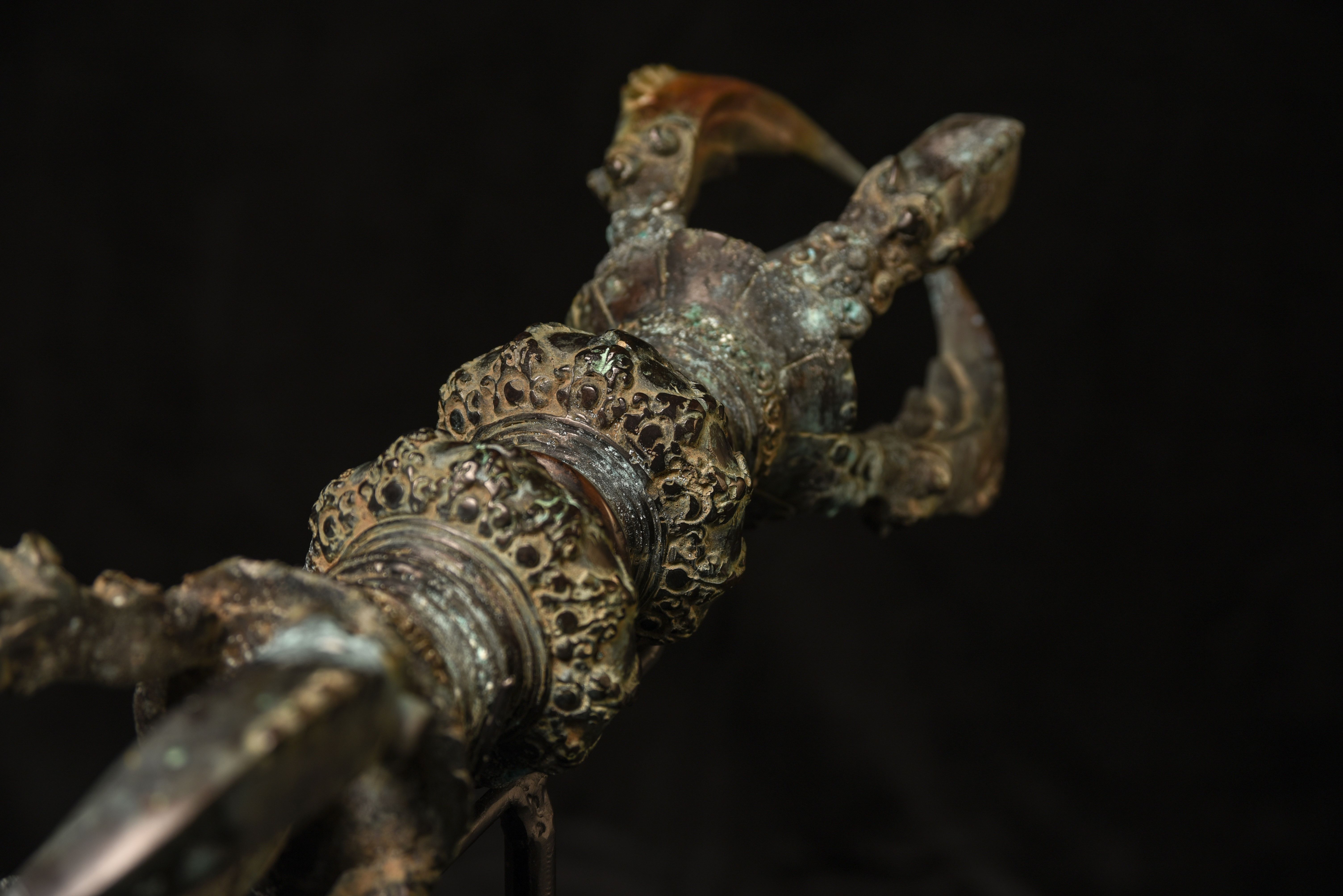 Massive 14thC Indonesian bronze dorge. Enormous at _-------------------------------------------------------------------------- Purchased from South African Collection . Rare in any size, let alone this monumental size. Incredible detail. . Note how the individual prangs and other part are each hollow (very hard to make this way), which allows this incredibly large piece to be quite light for its size.