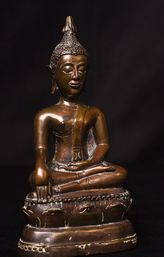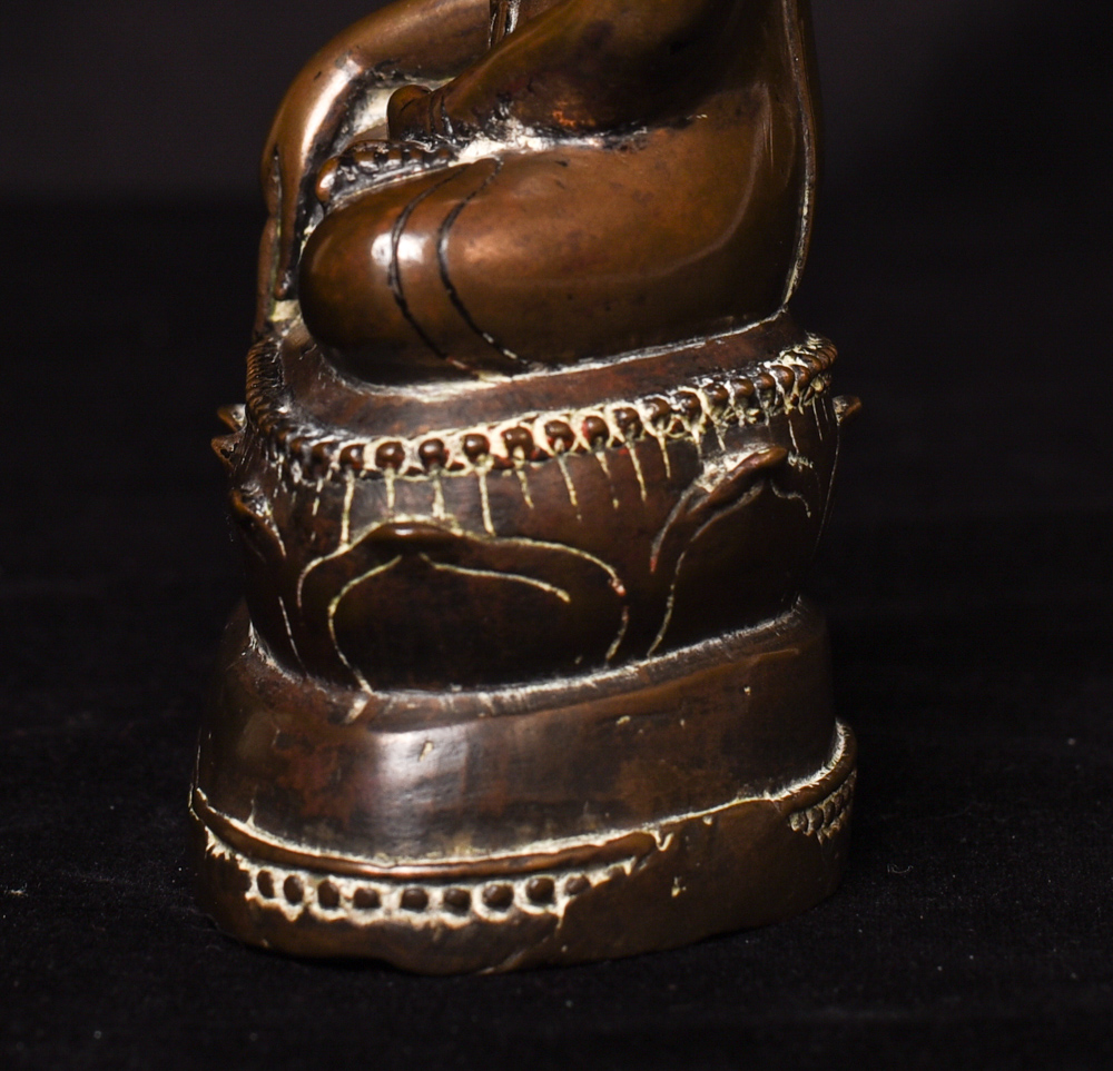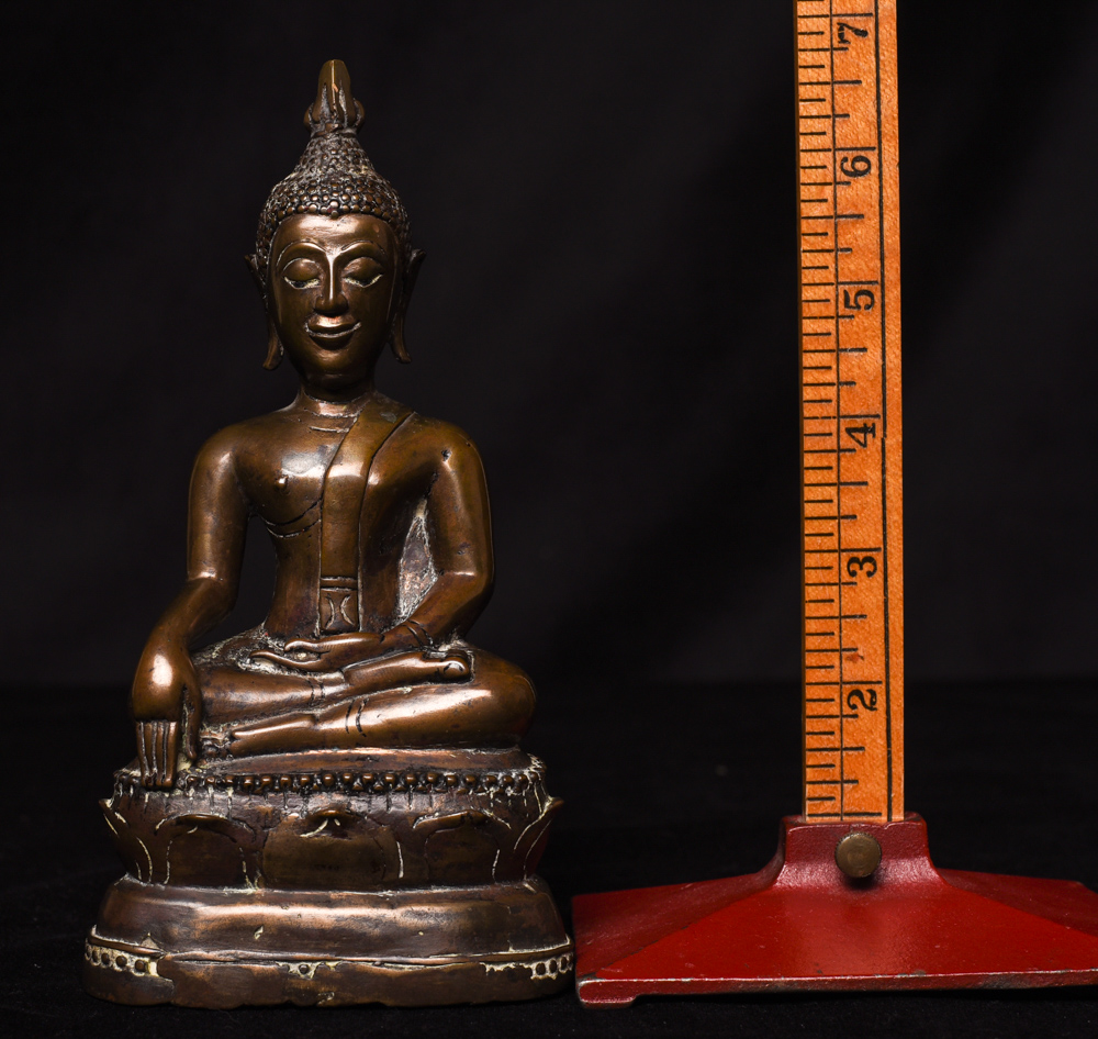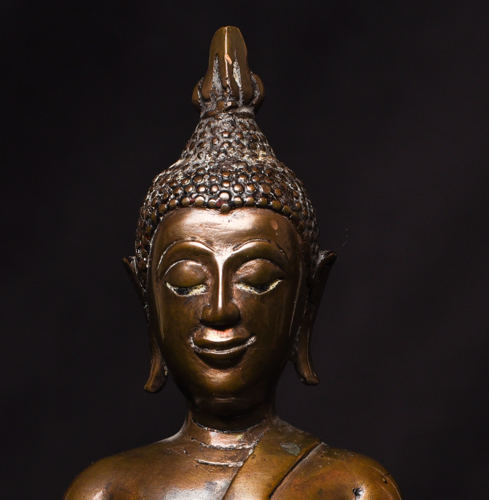 Fine 16thC Northern Thai Bronze Buddha. High quality alloy. 7" (18CM). Some loss to the base( used in ancient times during periods of scarcity of bronze to make other Buddhas-not uncommon-OK as long as it is only part of the base and not the actual figure. )