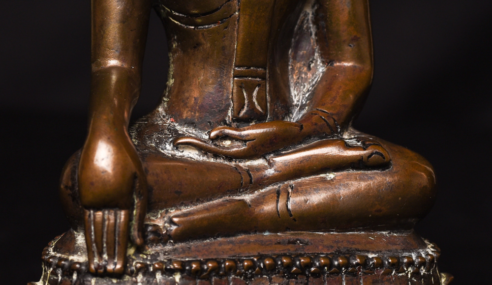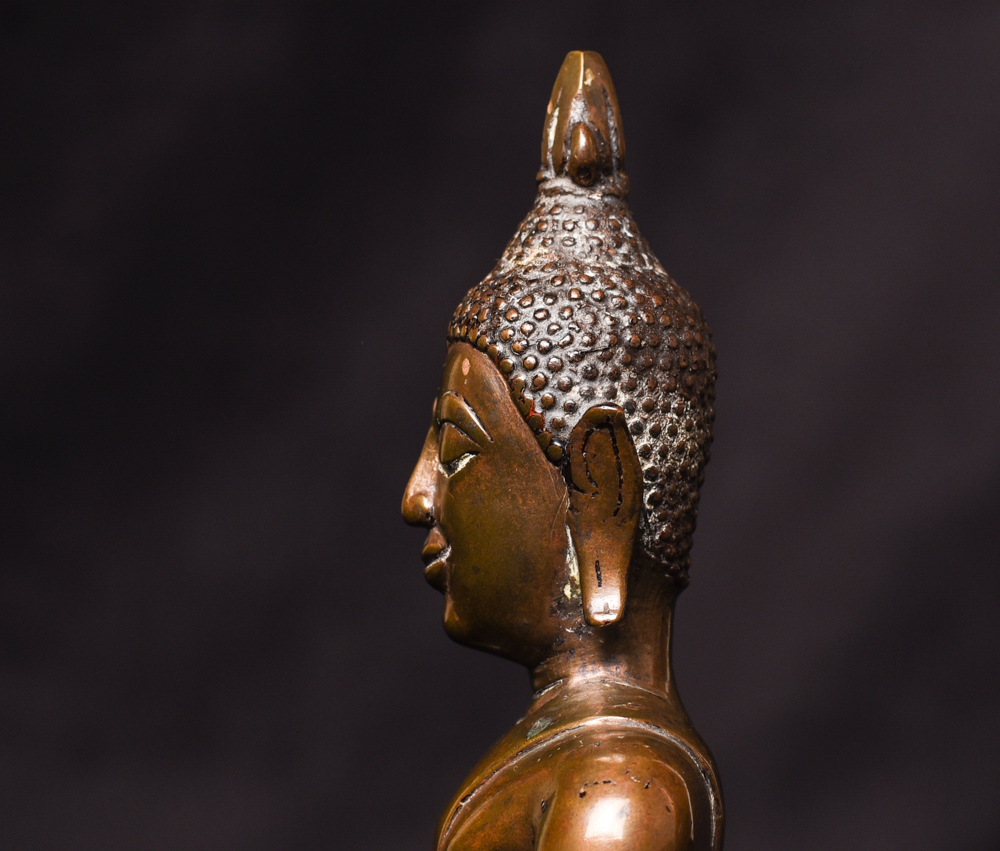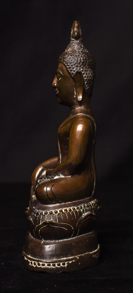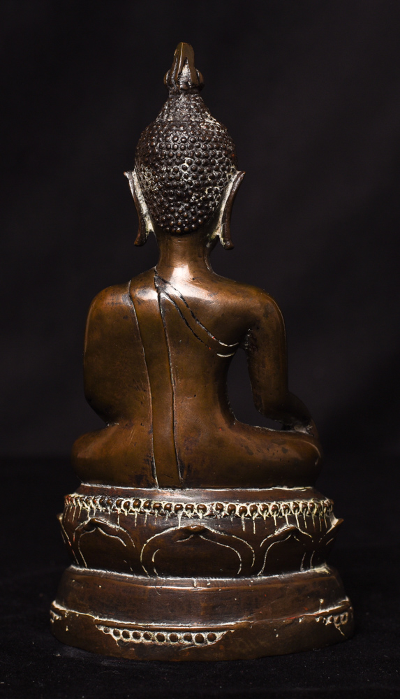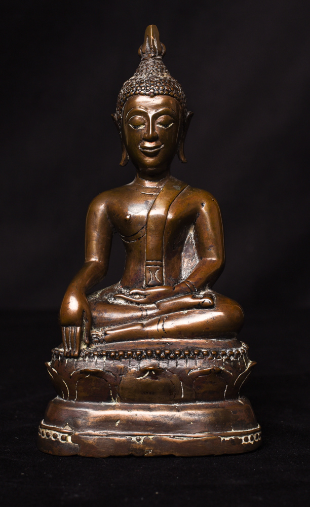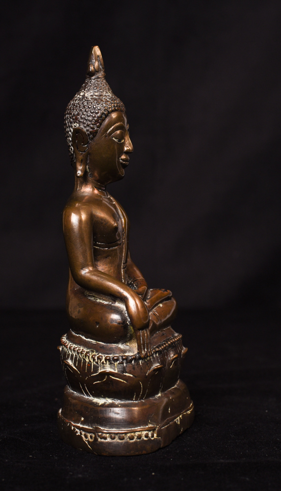 Fine 16thC Northern Thai Bronze Buddha. High quality alloy. 7" (18CM). Some loss to the base( used in ancient times during periods of scarcity of bronze to make other Buddhas-not uncommon-OK as long as it is only part of the base and not the actual figure. )
