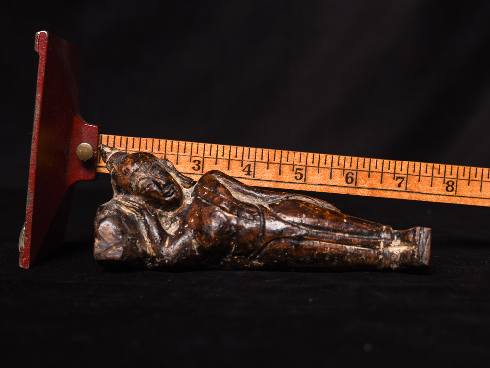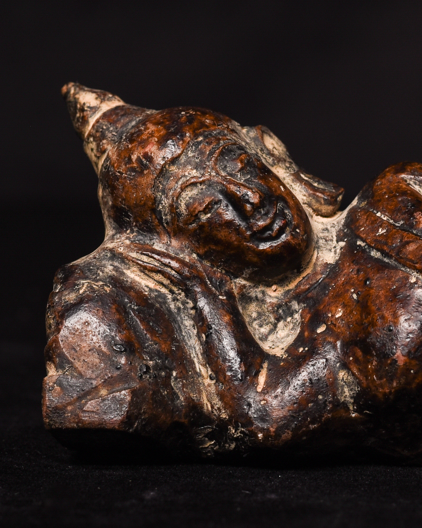 Rare 16/7th century Thai Reclining Stone Buddha With remains of black lacquer. I've come across extremely few of this type in 35 years of collecting and selling. each one is a "one of". It is in the Ayuthaya style. H2.5"L6"(6CM.H, 15CM.L)