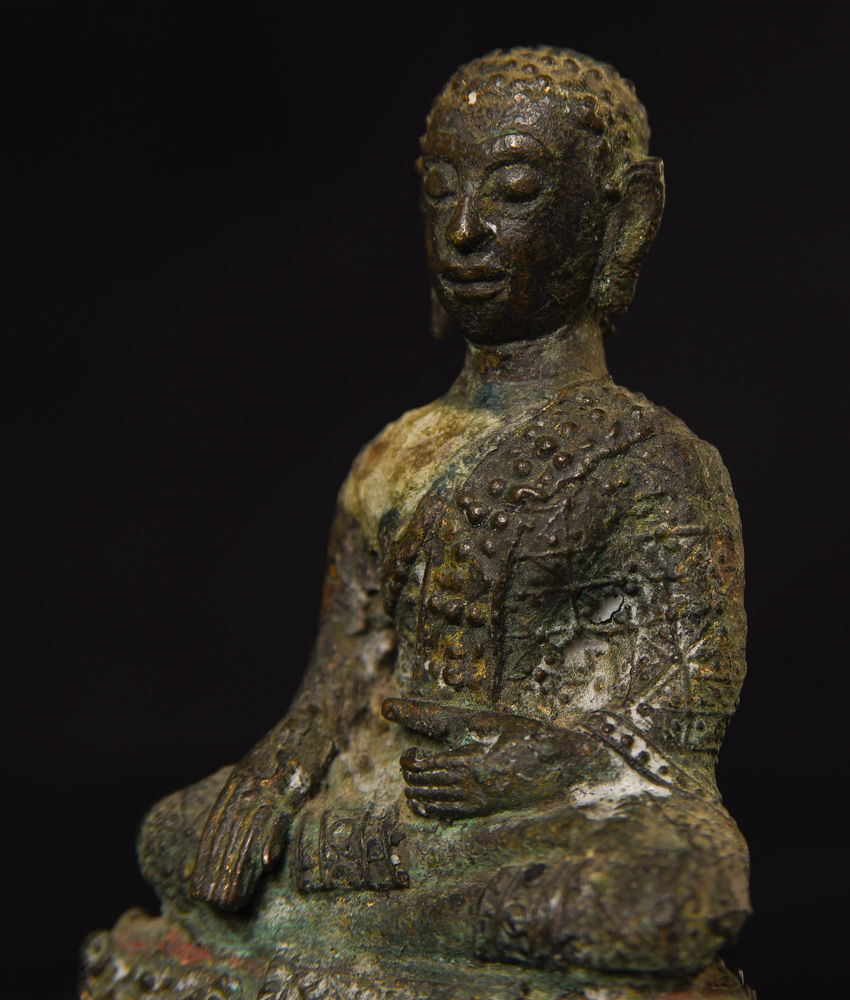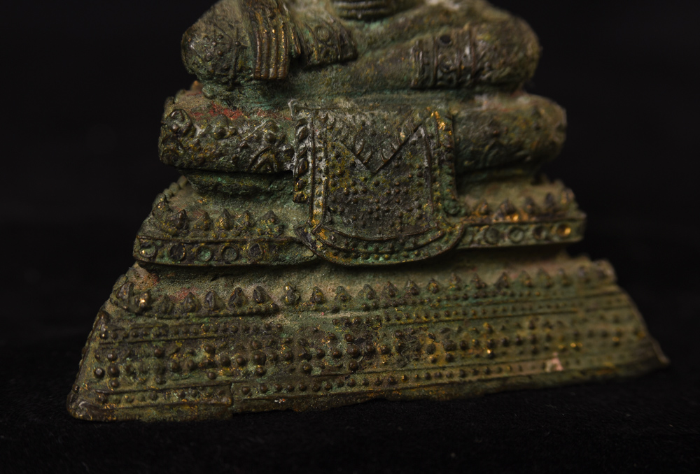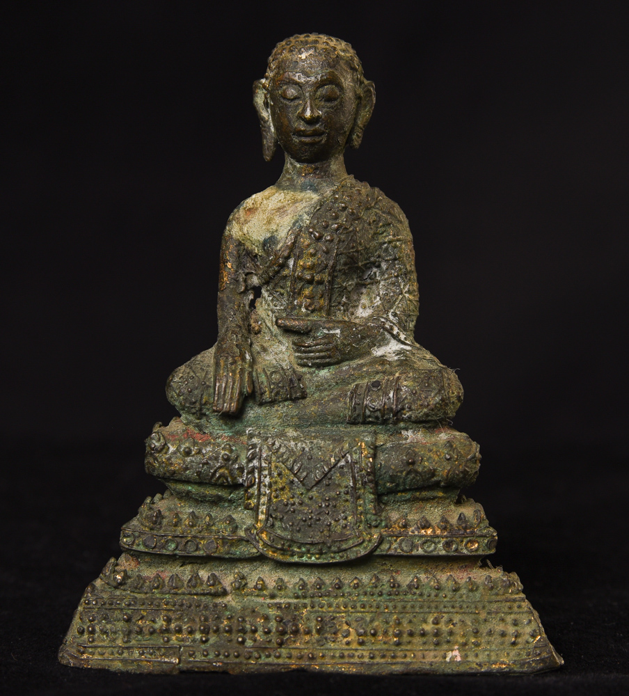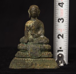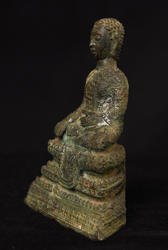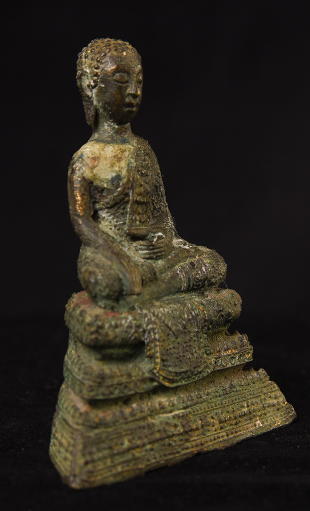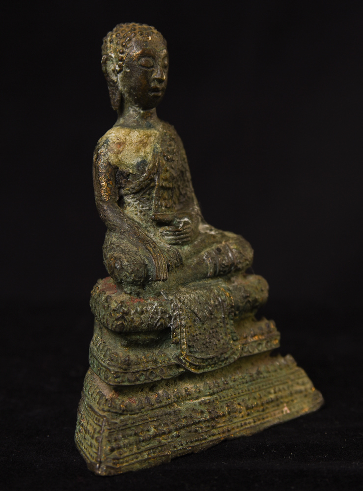 Circa 1900 Thai Bronze Buddha. One earlobe was shortened. H: 3.75" (9.525CM)