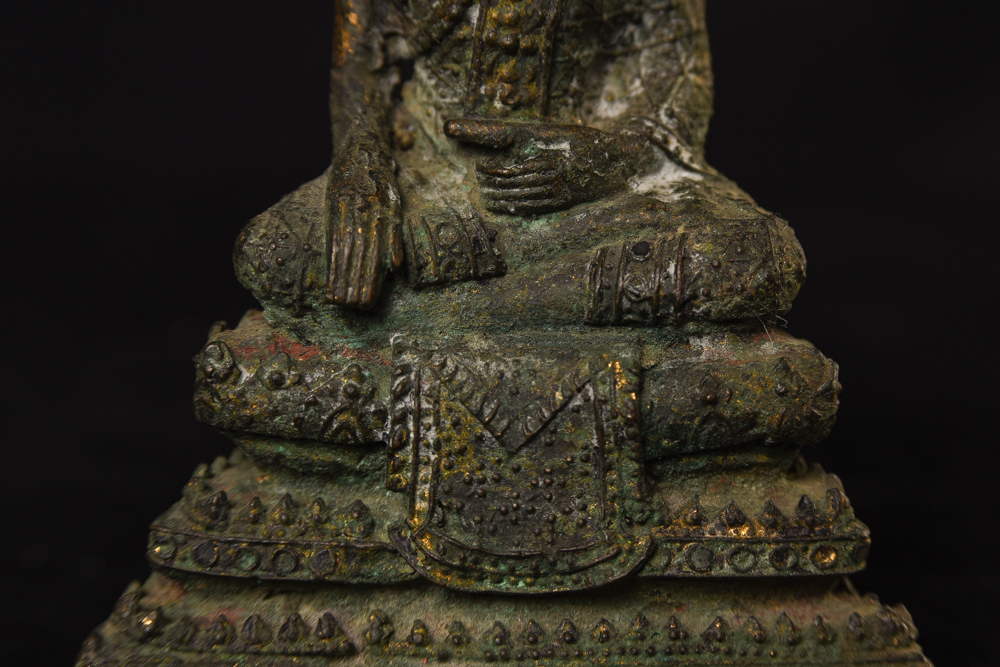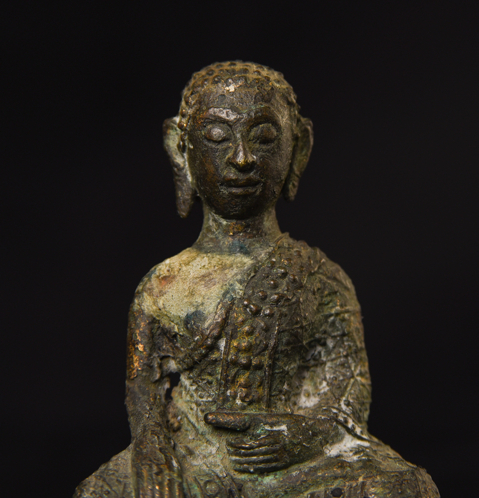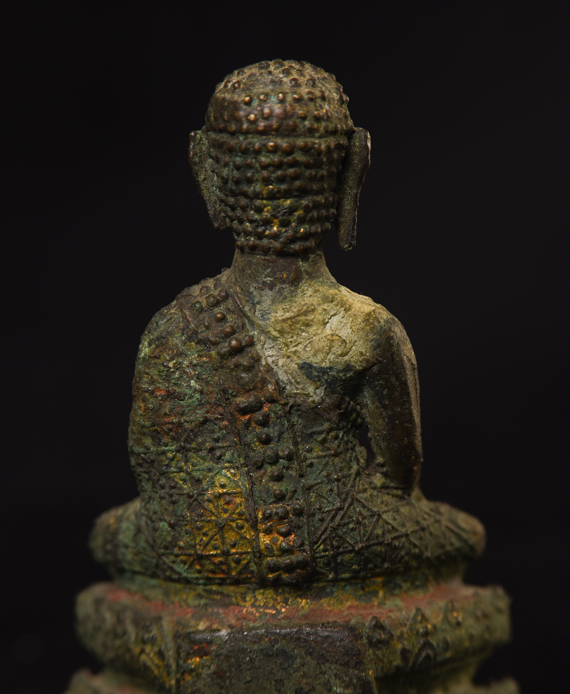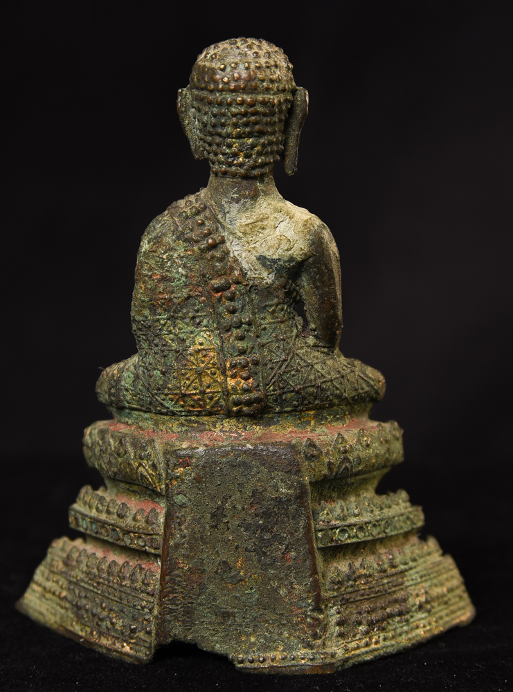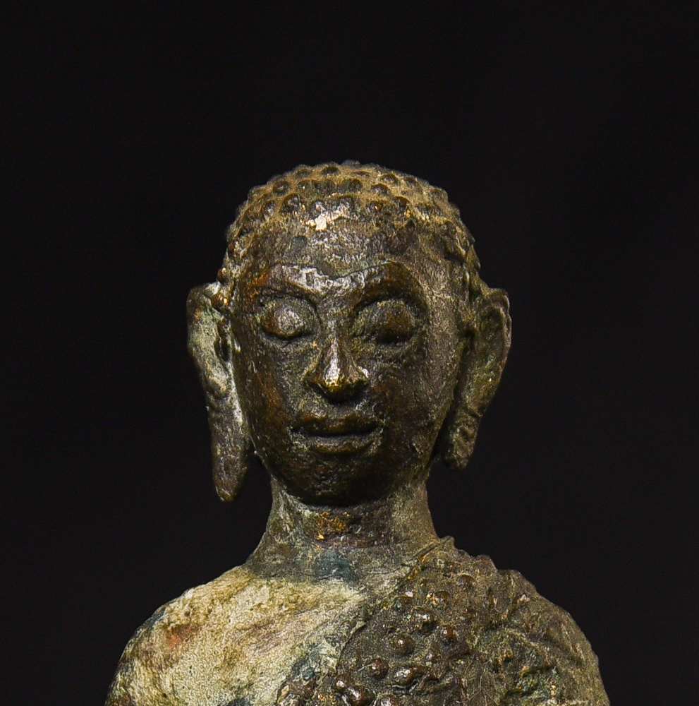 Circa 1900 Thai Bronze Buddha. One earlobe was shortened. H: 3.75" (9.525CM)