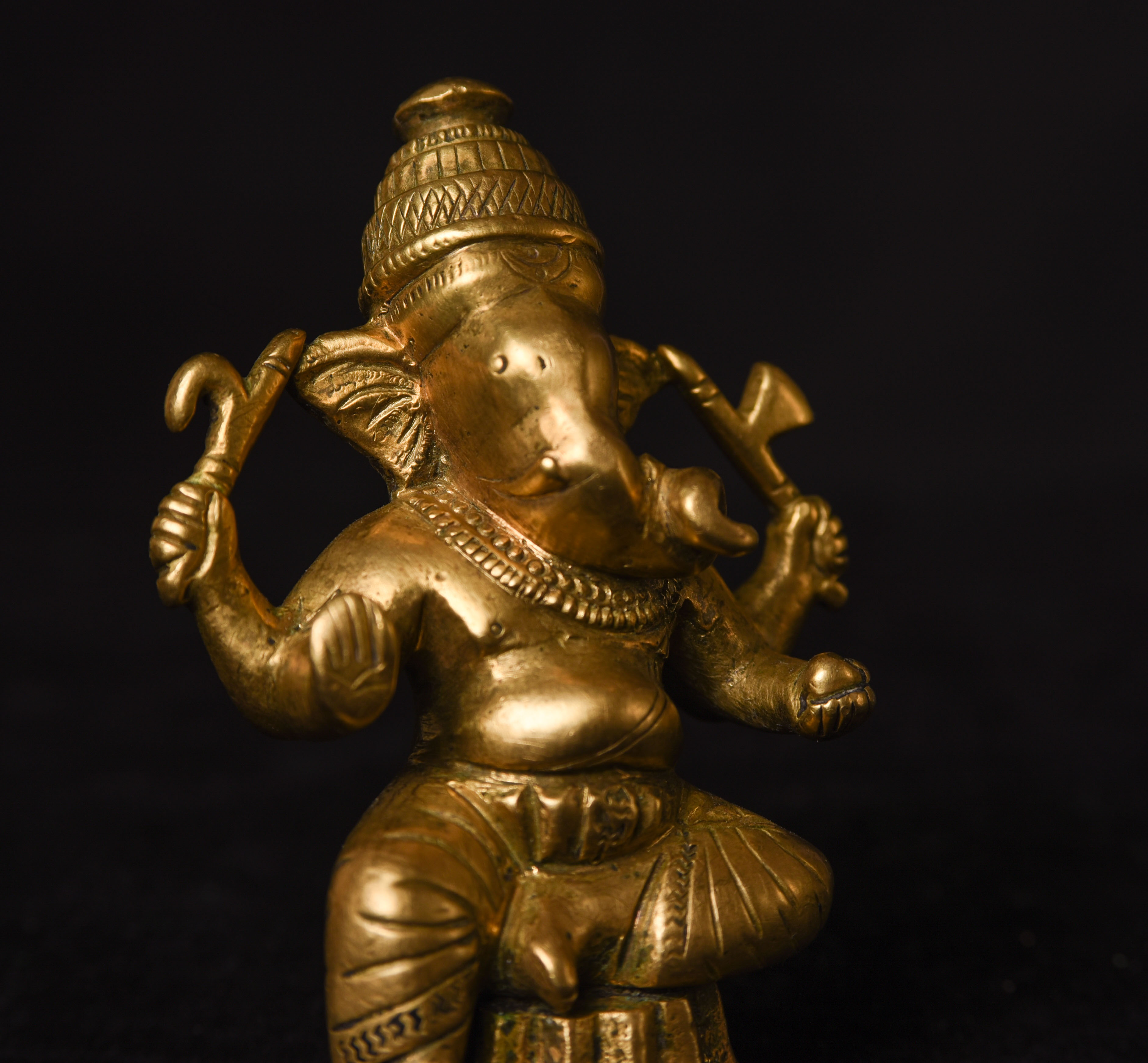 Old Indian Ganesh Statue. H: 3.25" (8.255cm), and very heavy for his size. - .240kg - .53lbs Domestic Shipping Included. International- $35