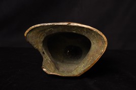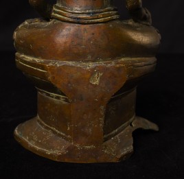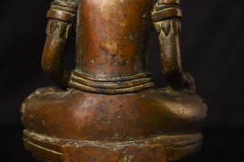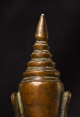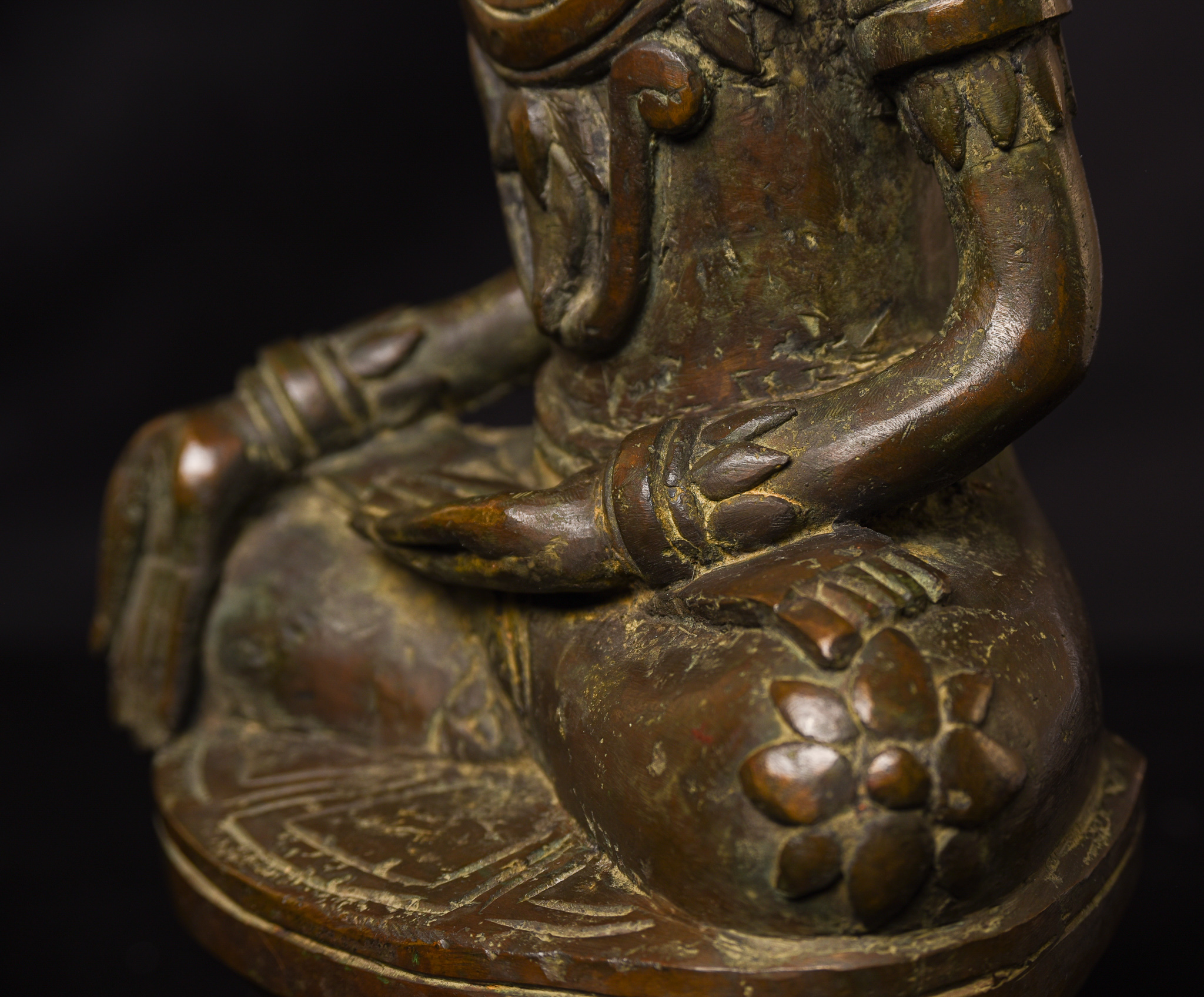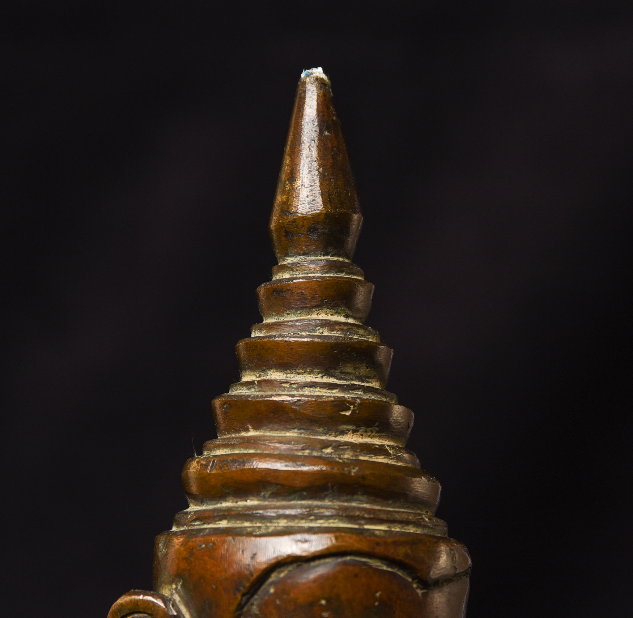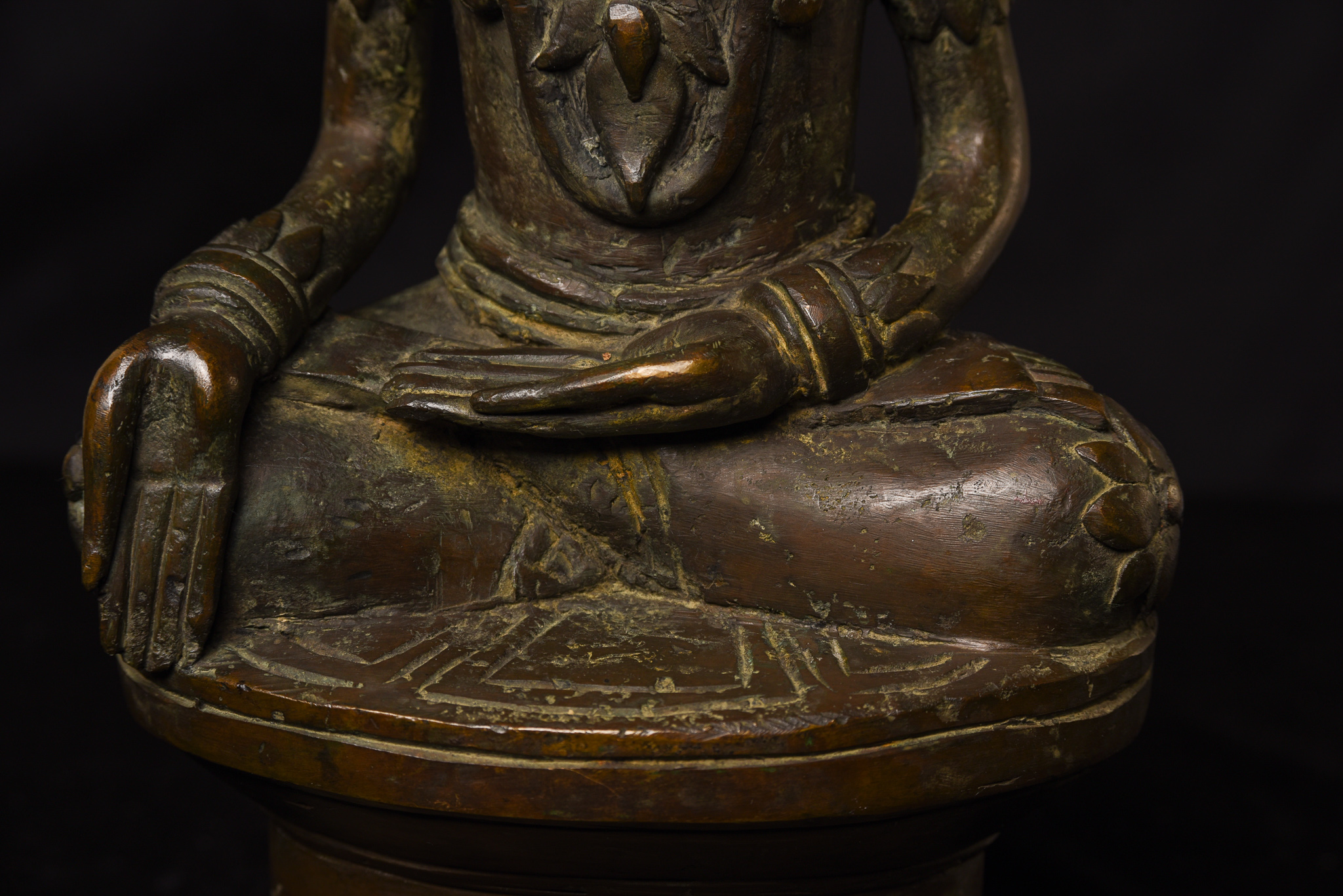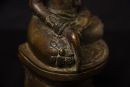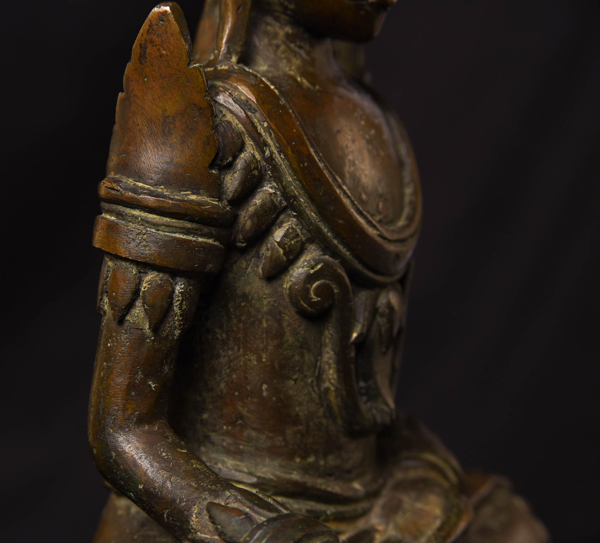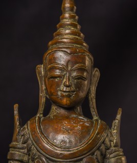 Unusual Burmese tribal Buddha. Not one of the major types from this period that are shown in the books on Burmese Buddhas (Shan, Mandalay, Mon, Arakan), but is from one of the smaller groups that is less well-known. It is a fascinating looking Buddha and a great piece for a collector who wants to have a very different and rare Buddha of substantial size for a very reasonable price. Lotus flowers on his knees!. H 16.5" (41.91cm)